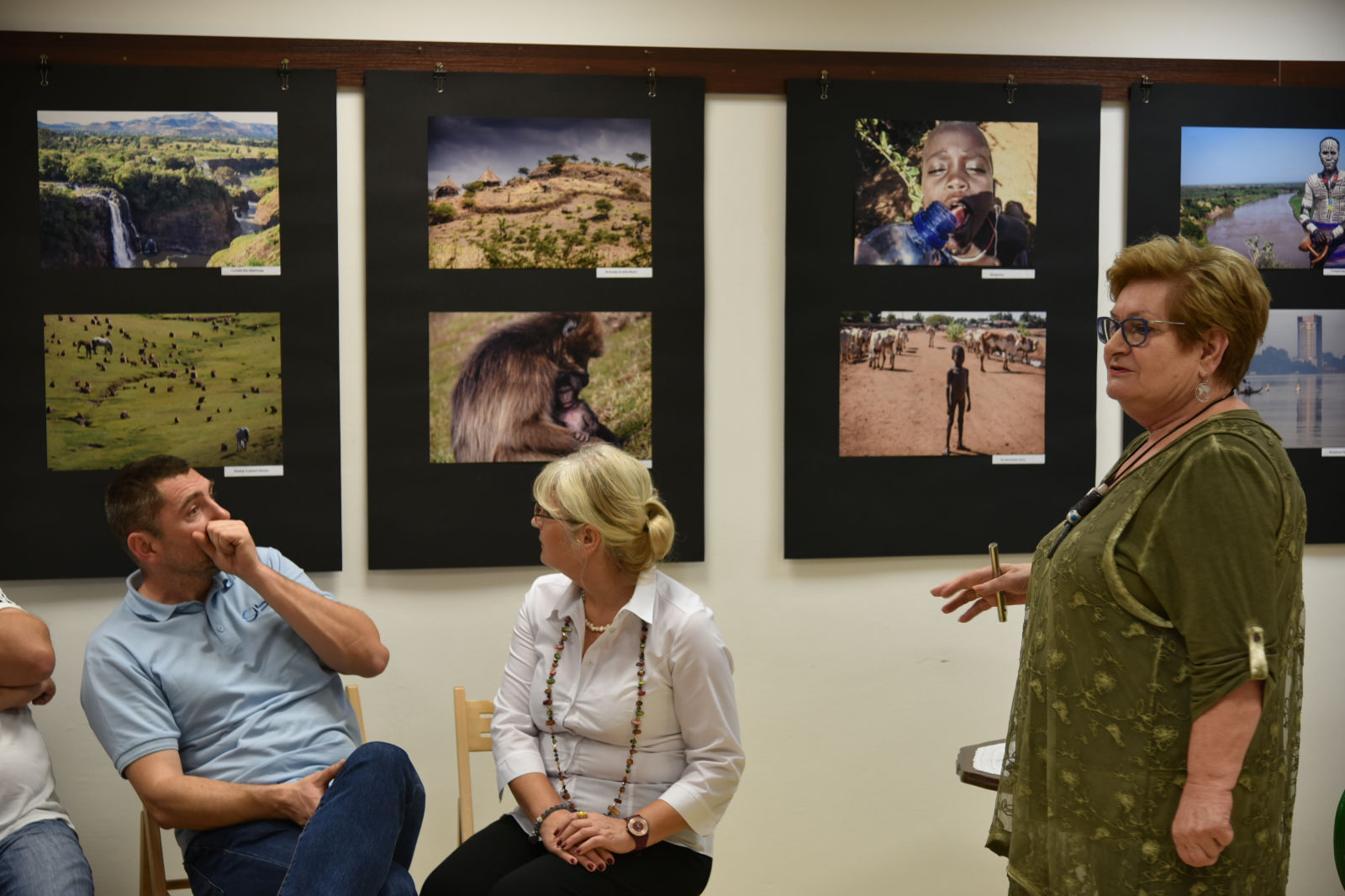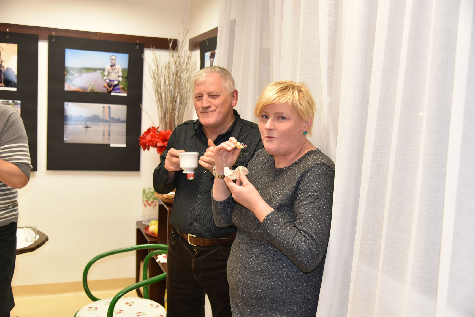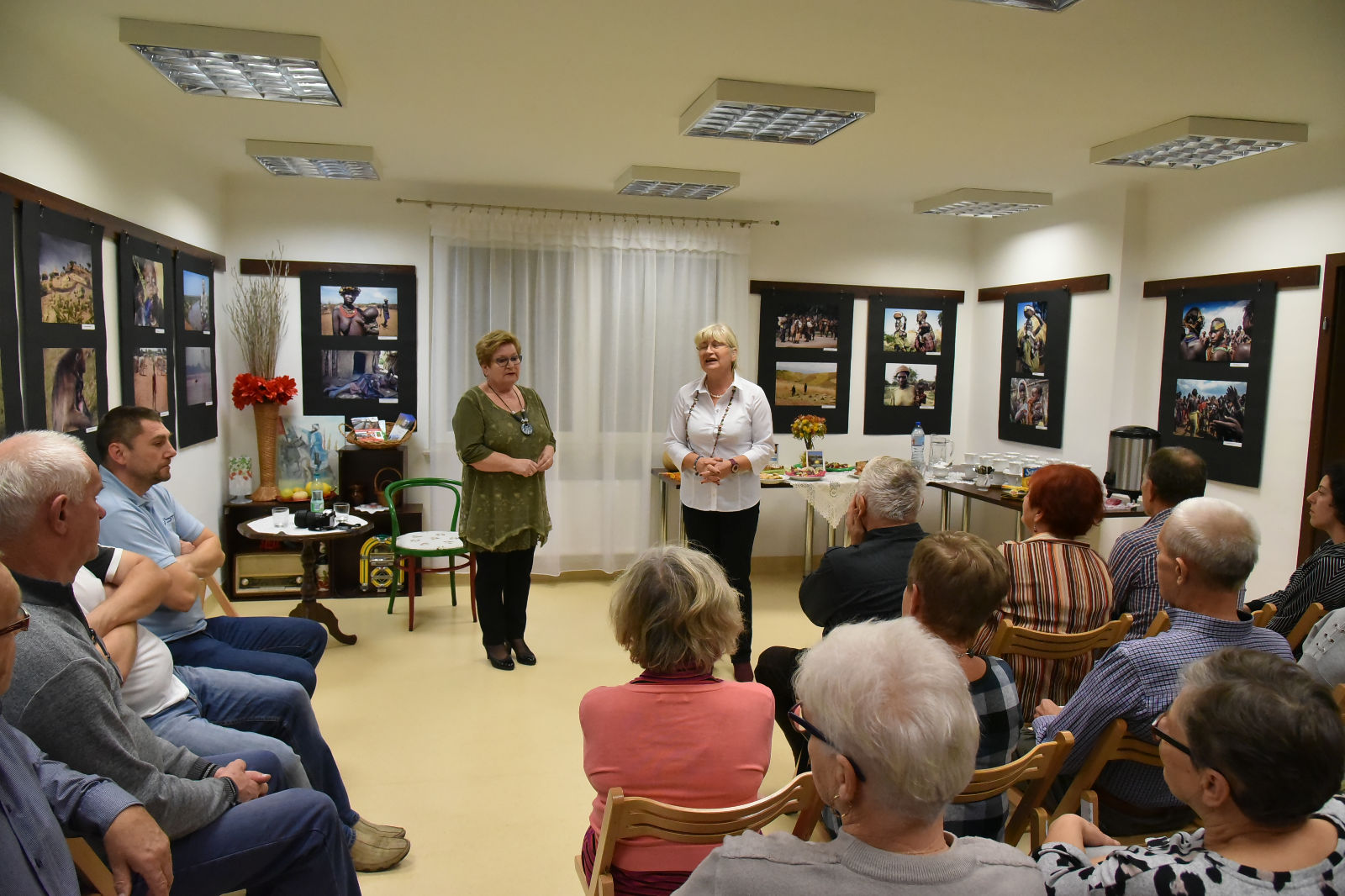 Życie pani Krystyny jest pasjonującą podróżą po świecie. Podąża w różne kierunki świata, aby przeżywać przygody, doświadczać wrażeń z przypadkowych spotkań z ludźmi, poznawać przyrodę i życie jej mieszkańców. Te wszystkie odkrycia pilnie fotografuje, aby podzielić się nimi w czasie swoich wernisaży. Artystyczne zdjęcia pani Krystyny rozbudzają naszą wyobraźnię, a te dokumentalne wciągają w świat innych ludzi i zdaje się, że sami jesteśmy uczestnikami życia uchwyconego przez obiektyw aparatu. Oprócz doznań wzrokowych dostaliśmy od bohaterki wieczoru cudowną opowieść o Etiopii. Pani Krystyna odkryła przed nami wiele ciekawostek o życiu i pracy ludzi w tym gorącym kraju. Prawdą więc jest, że „podróże kształcą”, bo chociaż my odbywaliśmy na niby podróż do Etiopii, ale ile zobaczyliśmy, i ile się nauczyliśmy! Uroczy wernisaż stał się przyczynkiem do rozmów między nami o świecie, podróżach, krajobrazach i wyzwaniach. A to wszystko odbywało się w miłej atmosferze przy herbatce i ciasteczkach.