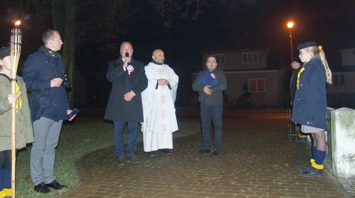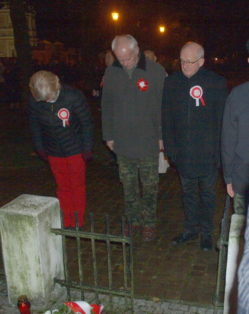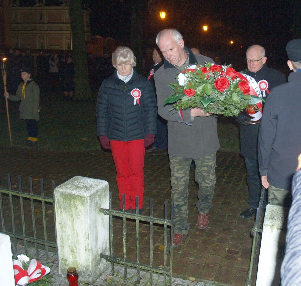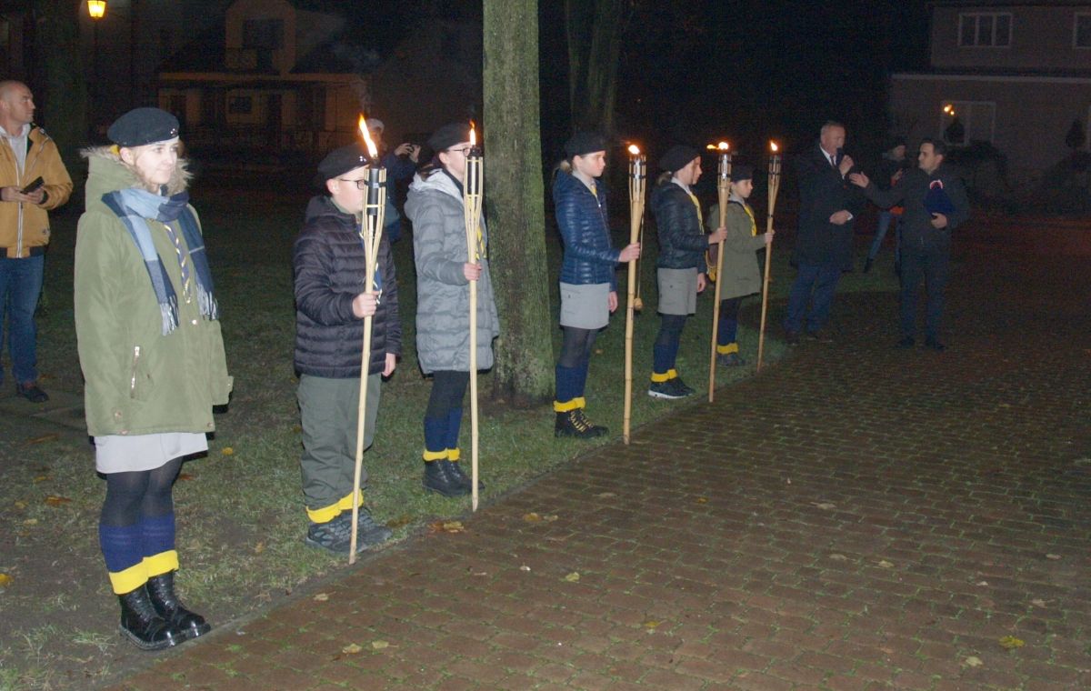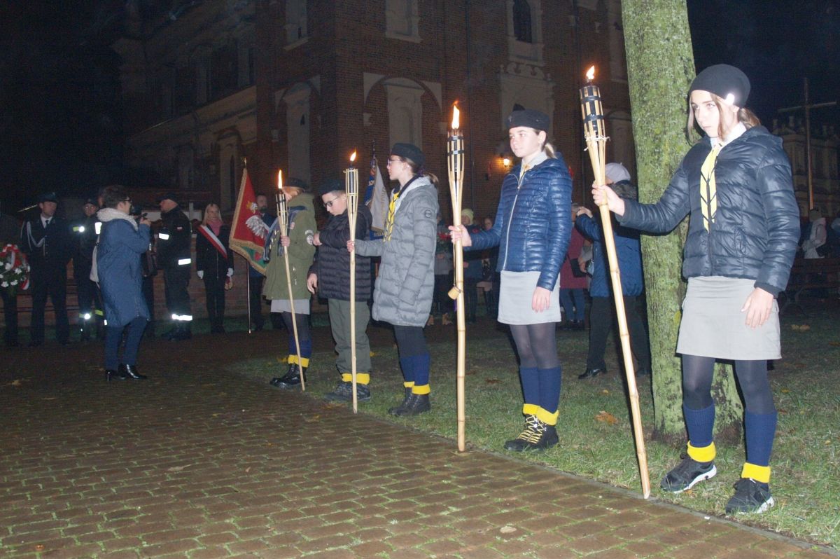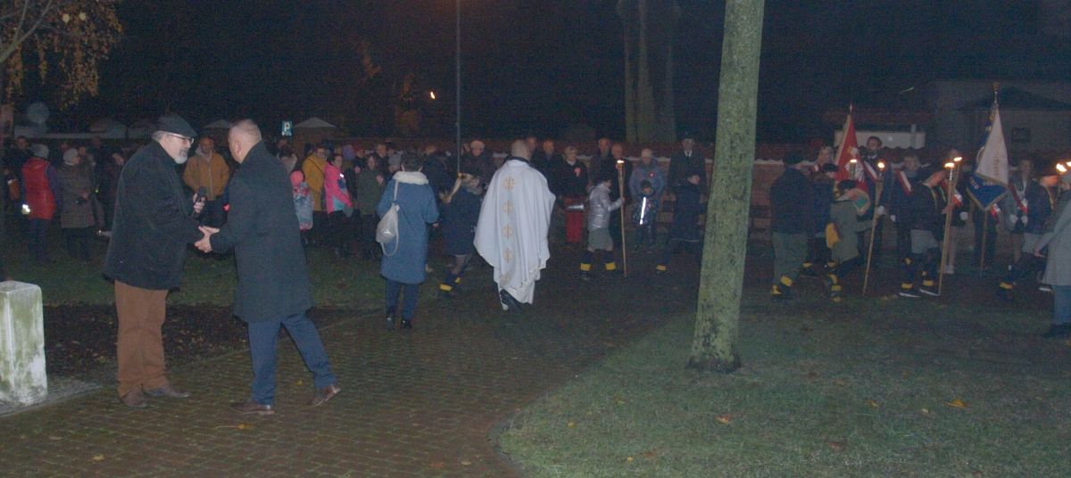 Uroku całej uroczystości dodał zapadający zmierzch, harcerze z pochodniami, poczty sztandarowe, delegacje z kwiatami, wieńcami i zniczami. Licznie zgromadzeni mieszkańcy Gołębia i okolic odśpiewali Hymn Polski i Hymn Gminy Puławy. Następnie delegacje złożyły kwiaty, wieńce i znicze pod pomnikiem. W uroczystości uczestniczyli przedstawiciele powiatu, gminy, straży z Gołębia i Borowej, przedszkola i szkoły w Gołębiu, domu kultury i stowarzyszeń. Następnie wszyscy zgromadzeni przeszli do kościoła na mszę św. za Ojczyznę, którą celebrowali księża z Gołębia. Po mszy wysłuchaliśmy wzruszającego koncertu uczniów ze Szkoły Podstawowej w Gołębiu według scenariusza naszej koleżanki Agnieszki Maj, w reżyserii Doroty Jabłońskiej, akompaniament Dariusz Kosmowski. Bardzo wspaniały koncert. Dziękujemy.