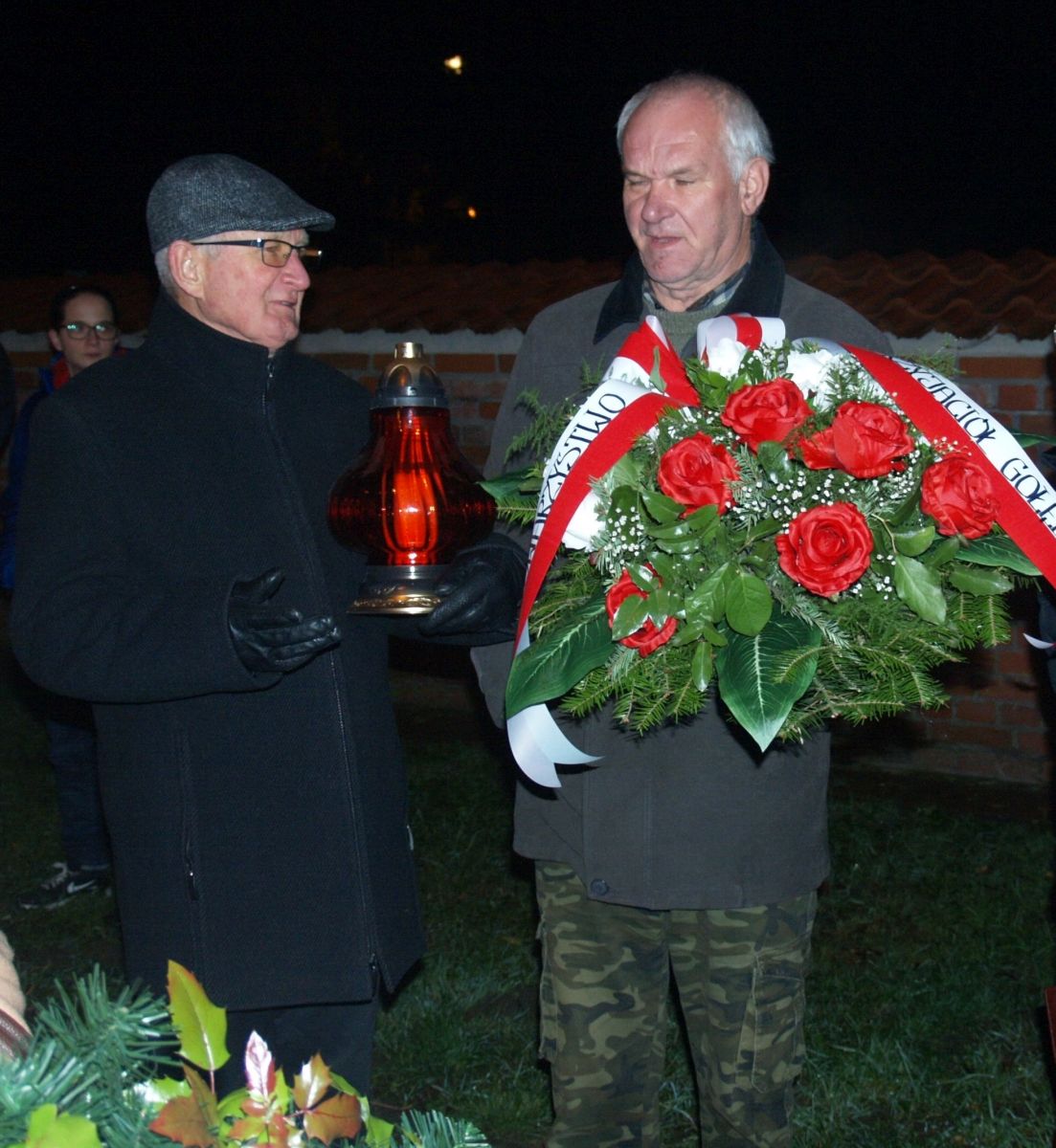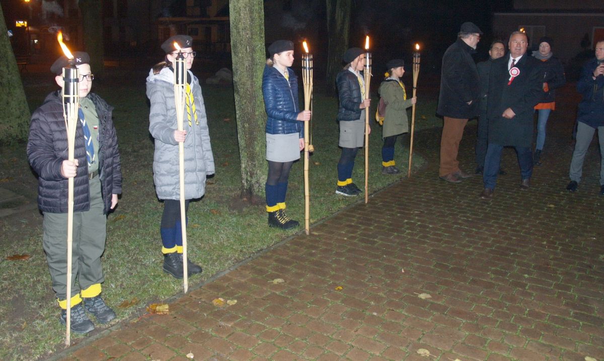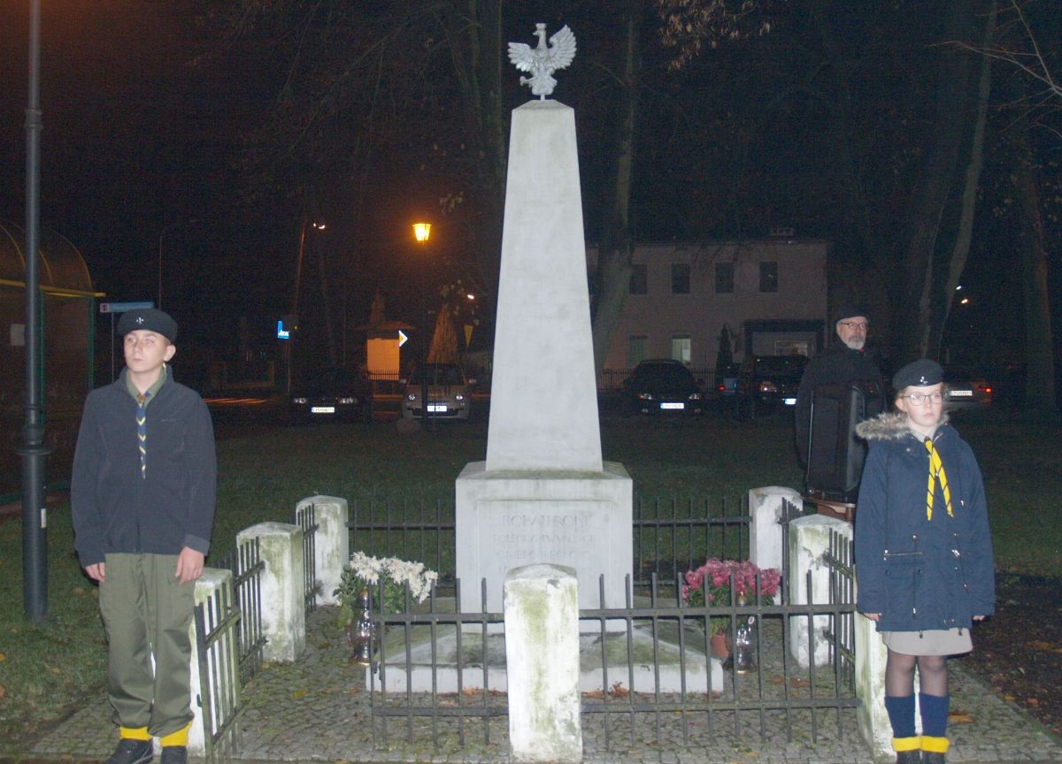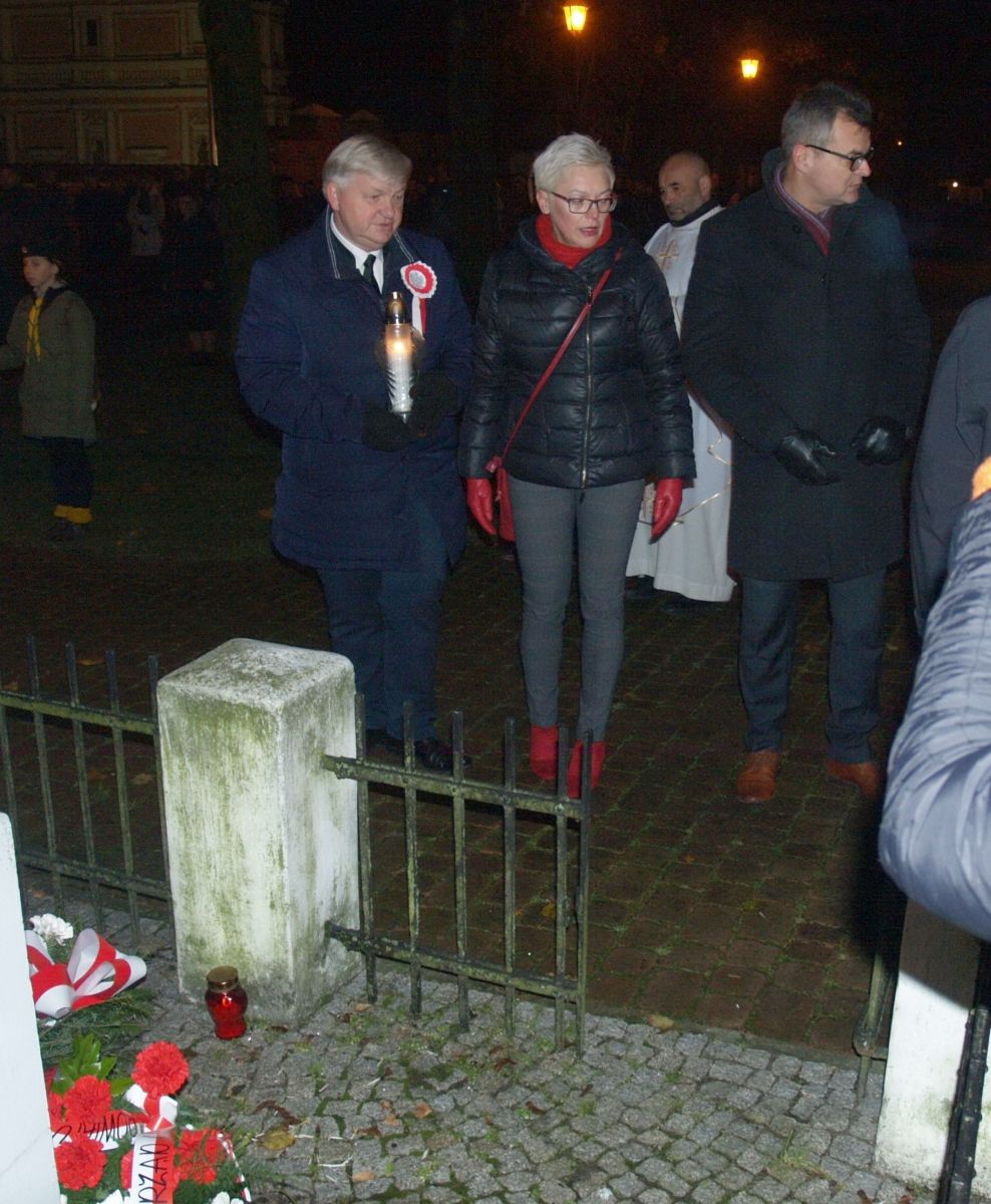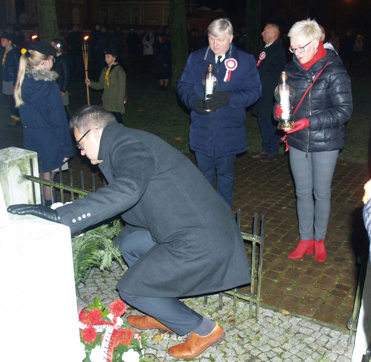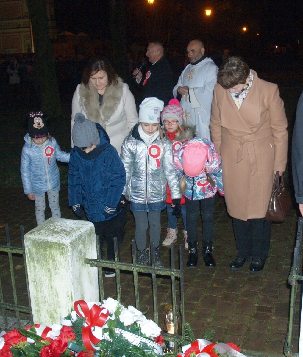 Uroku całej uroczystości dodał zapadający zmierzch, harcerze z pochodniami, poczty sztandarowe, delegacje z kwiatami, wieńcami i zniczami. Licznie zgromadzeni mieszkańcy Gołębia i okolic odśpiewali Hymn Polski i Hymn Gminy Puławy. Następnie delegacje złożyły kwiaty, wieńce i znicze pod pomnikiem. W uroczystości uczestniczyli przedstawiciele powiatu, gminy, straży z Gołębia i Borowej, przedszkola i szkoły w Gołębiu, domu kultury i stowarzyszeń. Następnie wszyscy zgromadzeni przeszli do kościoła na mszę św. za Ojczyznę, którą celebrowali księża z Gołębia. Po mszy wysłuchaliśmy wzruszającego koncertu uczniów ze Szkoły Podstawowej w Gołębiu według scenariusza naszej koleżanki Agnieszki Maj, w reżyserii Doroty Jabłońskiej, akompaniament Dariusz Kosmowski. Bardzo wspaniały koncert. Dziękujemy.