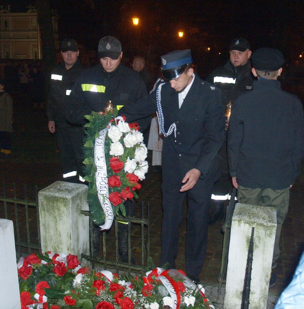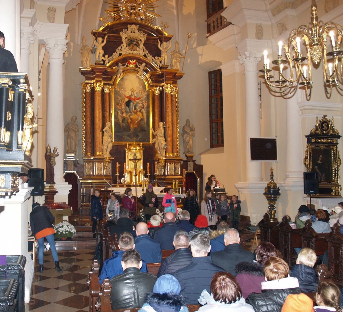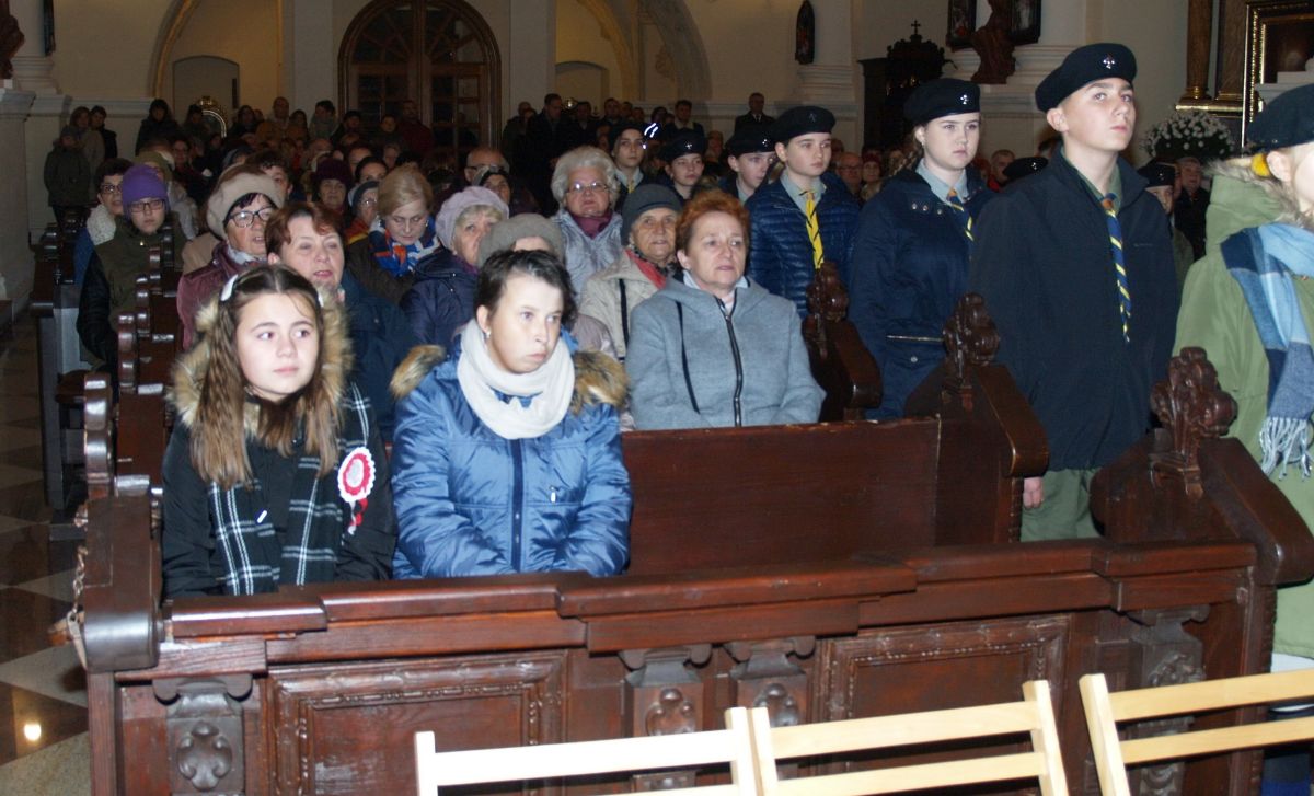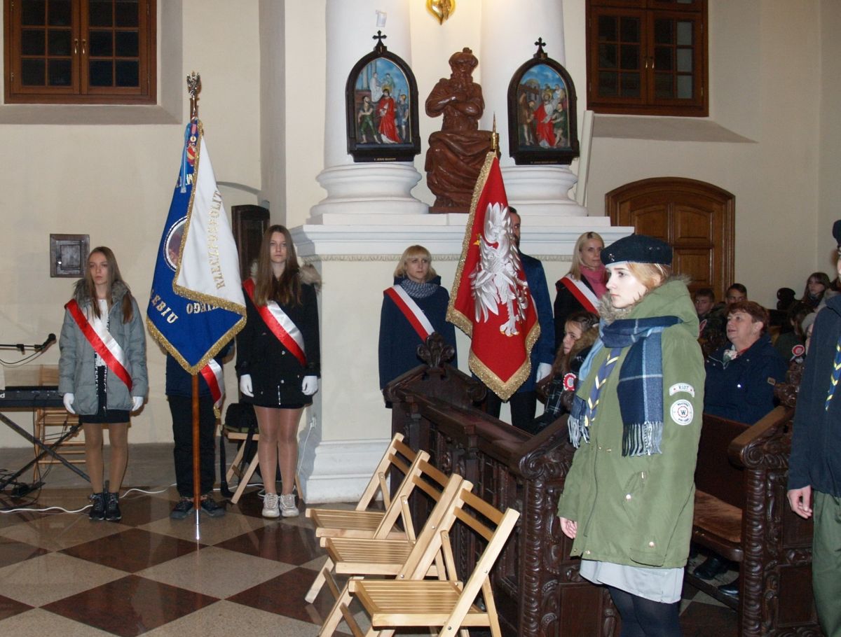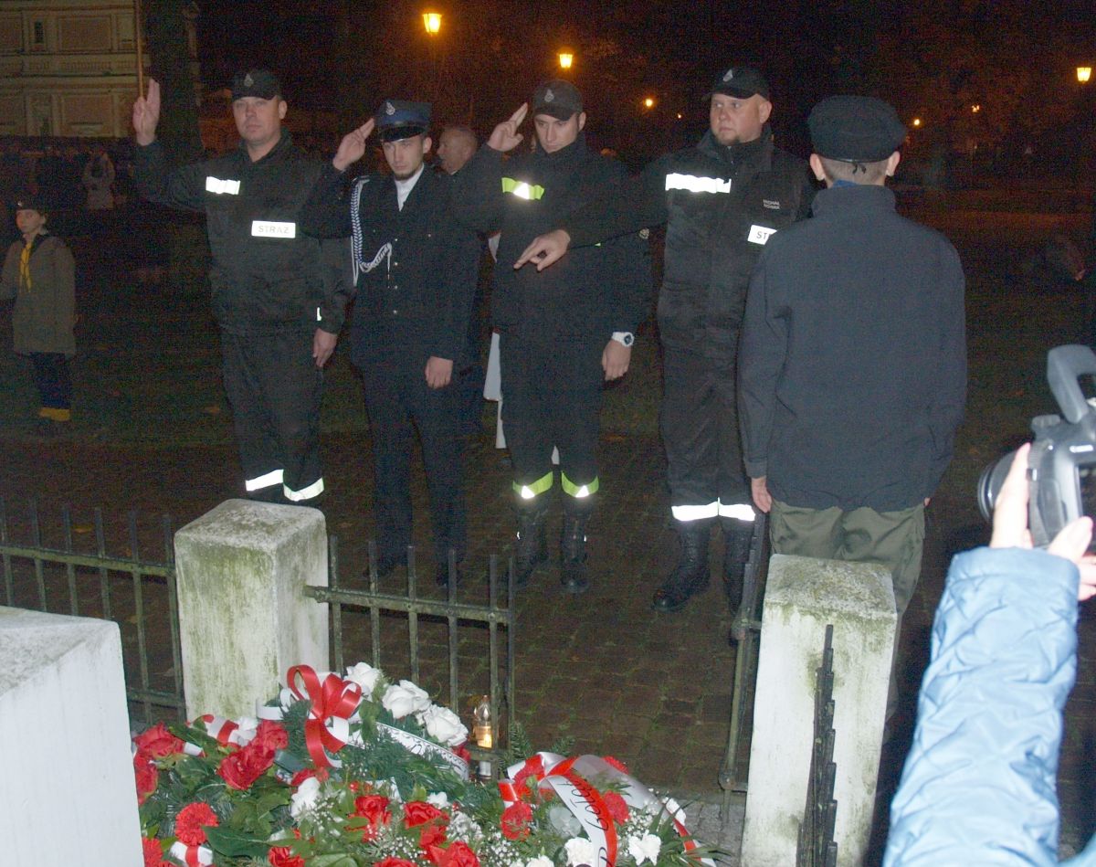 Uroku całej uroczystości dodał zapadający zmierzch, harcerze z pochodniami, poczty sztandarowe, delegacje z kwiatami, wieńcami i zniczami. Licznie zgromadzeni mieszkańcy Gołębia i okolic odśpiewali Hymn Polski i Hymn Gminy Puławy. Następnie delegacje złożyły kwiaty, wieńce i znicze pod pomnikiem. W uroczystości uczestniczyli przedstawiciele powiatu, gminy, straży z Gołębia i Borowej, przedszkola i szkoły w Gołębiu, domu kultury i stowarzyszeń. Następnie wszyscy zgromadzeni przeszli do kościoła na mszę św. za Ojczyznę, którą celebrowali księża z Gołębia. Po mszy wysłuchaliśmy wzruszającego koncertu uczniów ze Szkoły Podstawowej w Gołębiu według scenariusza naszej koleżanki Agnieszki Maj, w reżyserii Doroty Jabłońskiej, akompaniament Dariusz Kosmowski. Bardzo wspaniały koncert. Dziękujemy.