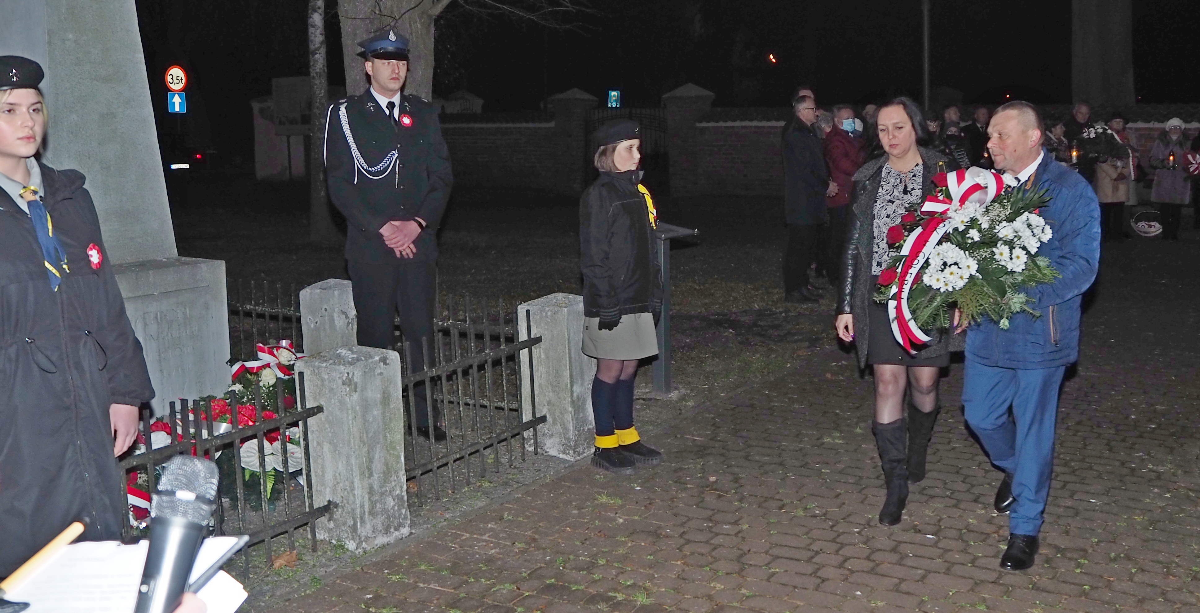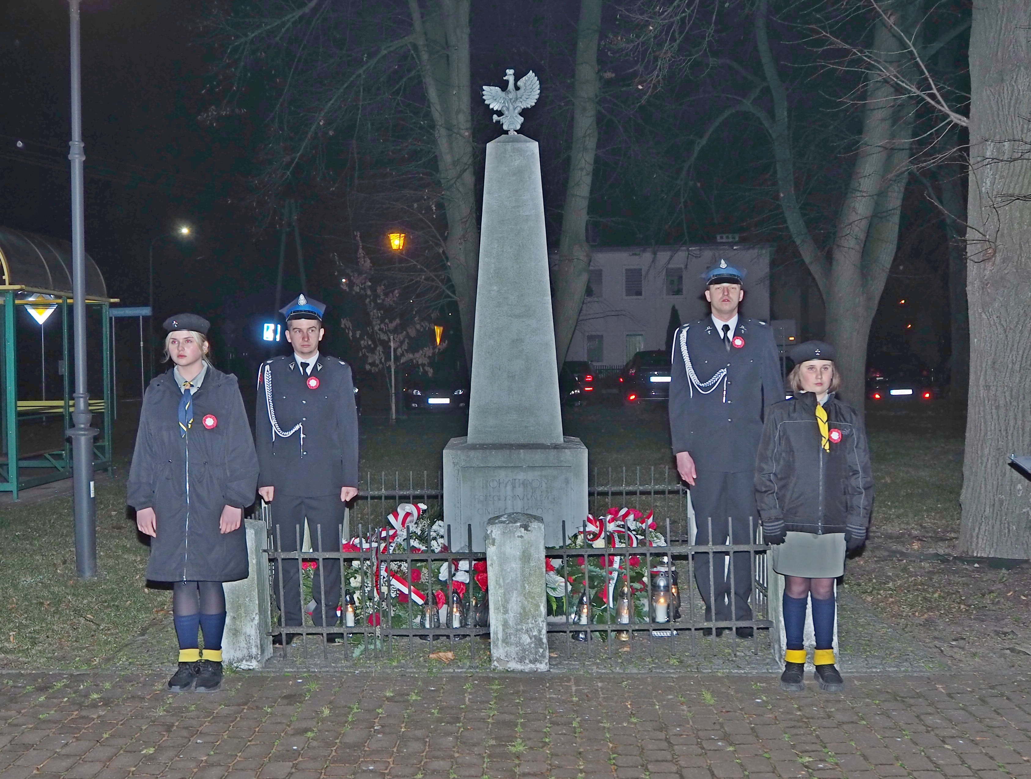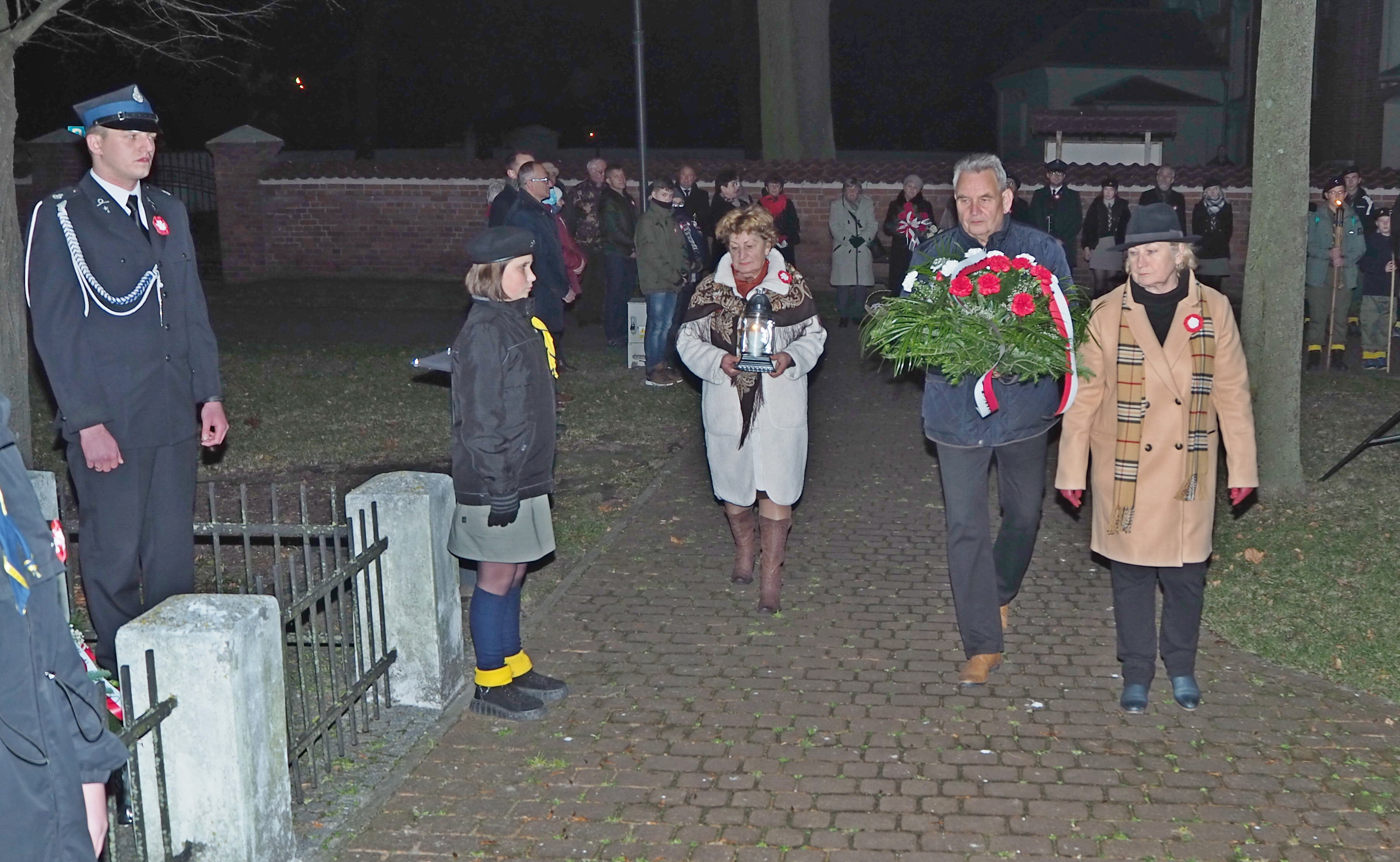 11 listopada późnym popołudniem spotkaliśmy się przy pomniku ufundowanym przez mieszkańców Gołębia, a wzniesionym w 1930 roku ku czci Bohaterów walczących o wolność Ojczyzny, aby uczcić Narodowe Święto Niepodległości. Jesienny zmierzch rozjaśniały światła pochodni trzymane w rękach harcerzy. Wśród obecnych znaleźli się przedstawiciele władz powiatowych i gminnych, radni Gminy Puławy, przedstawiciele Szkoły Podstawowej, Gminnego Ośrodka Kultury, Ochotniczej Straży Pożarnej, Towarzystwa Przyjaciół Gołębia, członkowie Koła Nr 9 Emerytów i Rencistów w Gołębiu oraz mieszkańcy Gołębia i okolic. Uczestnicy tej uroczystości otrzymali od wójta Gminy Puławy - Pana Kamila Lewandowskiego - biało czerwone kokardy wraz z ważnym przesłaniem: „Nośmy Polskę w sercu i na sercu”. Radość nastroju i jednocześnie powagę ceremonii podkreślił odśpiewany Mazurek Dąbrowskiego. Głos zabrali między innymi: Starosta Powiatu Puławskiego – Pani Danuta Smaga, Wójt Gminy Puławy - Pan Kamil Lewandowski oraz Proboszcz Parafii Gołąb – Ks. Jerzy Węzka. Następnie wszyscy zgromadzeni udali się do kościoła na Mszę Św. w intencji Ojczyzny. Uroczystą homilię celebrował ks. Jerzy Węzka. Dla wszystkich uczestników był to też czas refleksji nad wartością wolności, o którą zawsze trzeba szczególnie dbać.