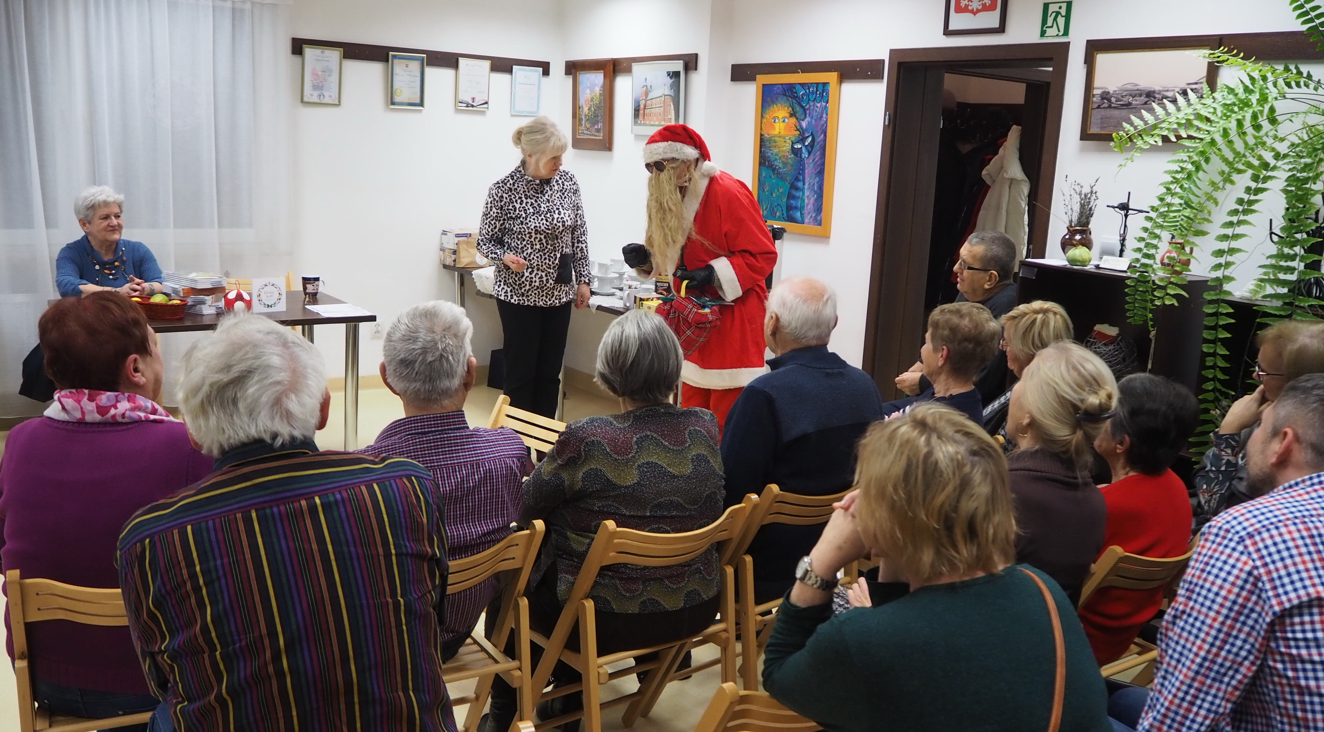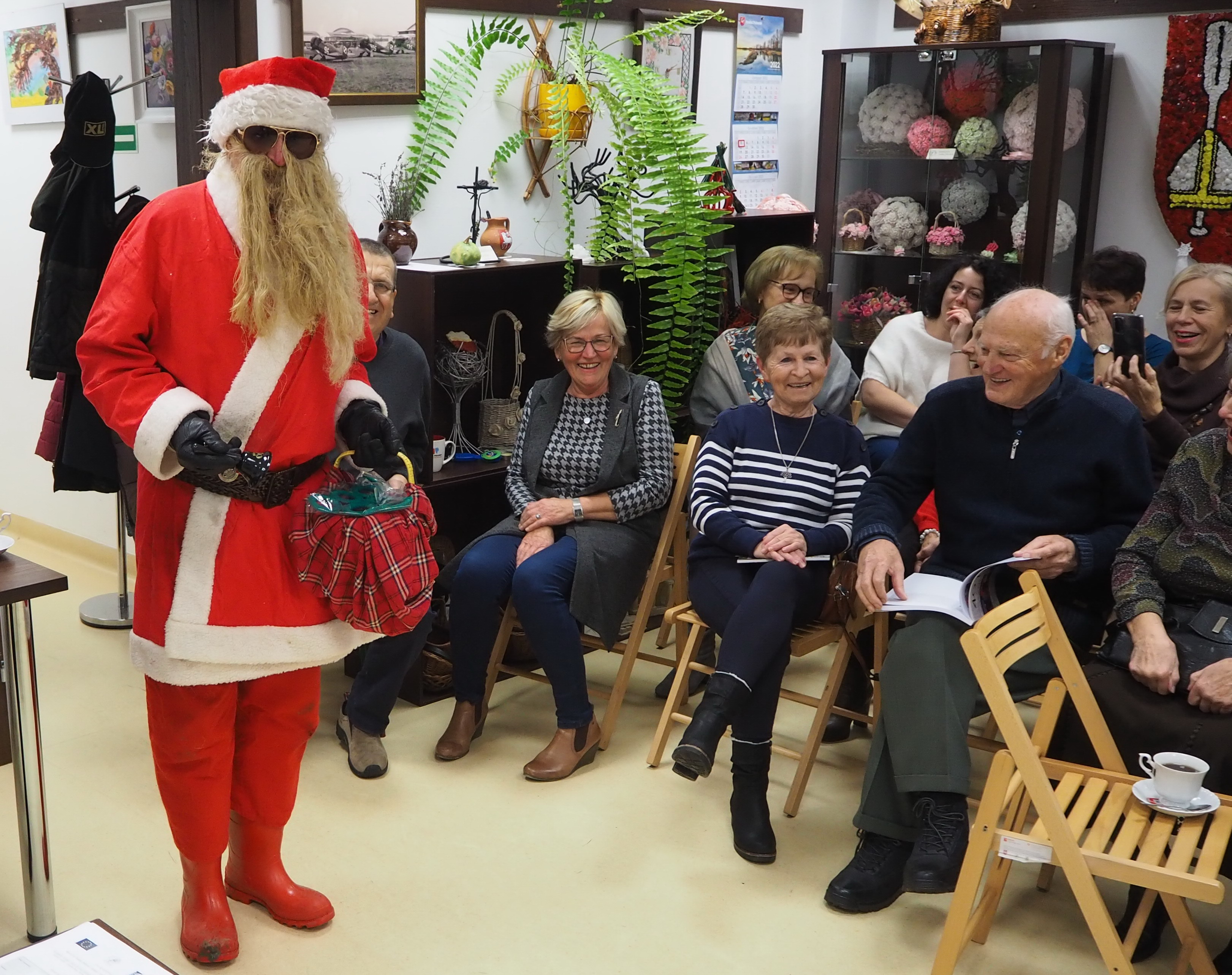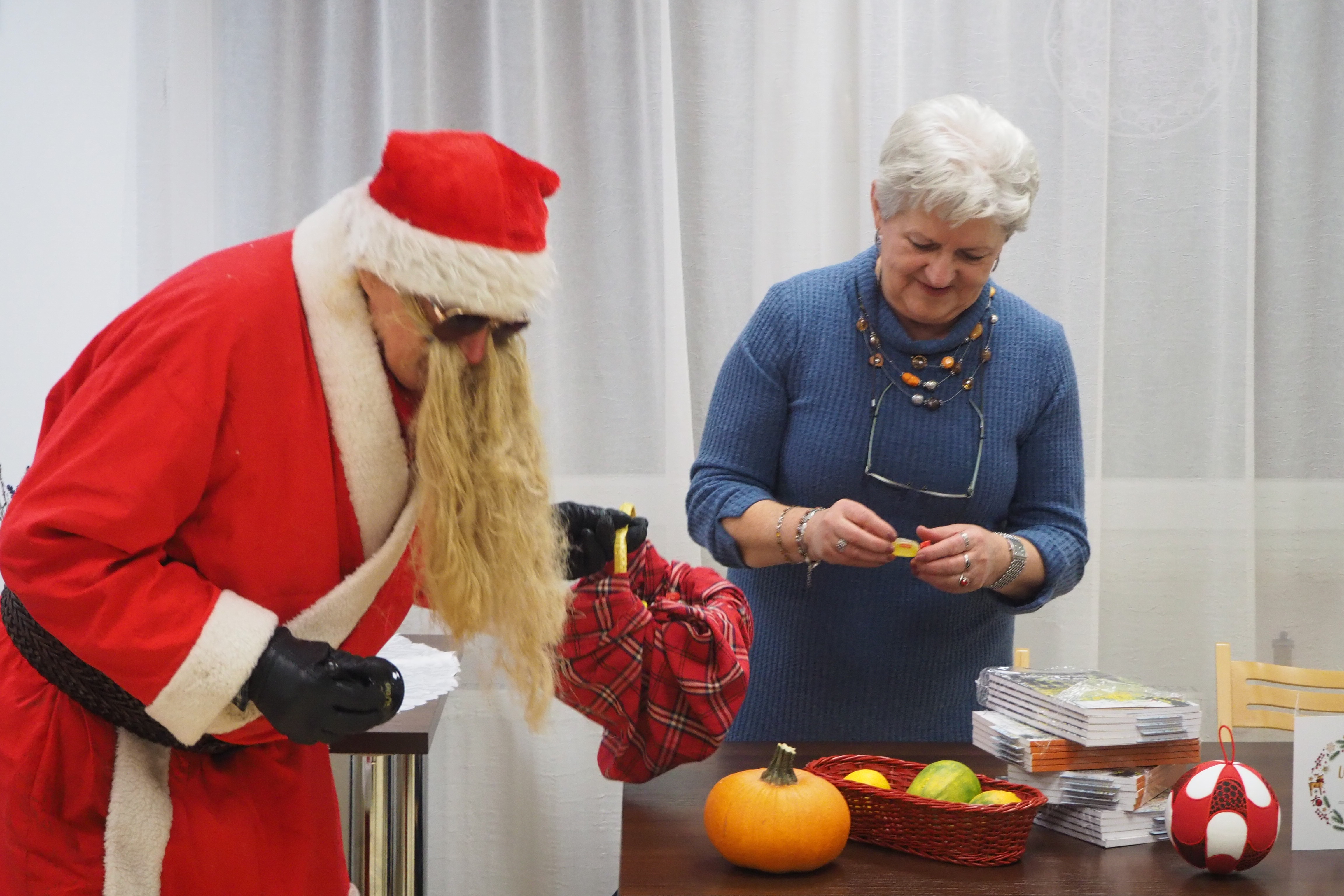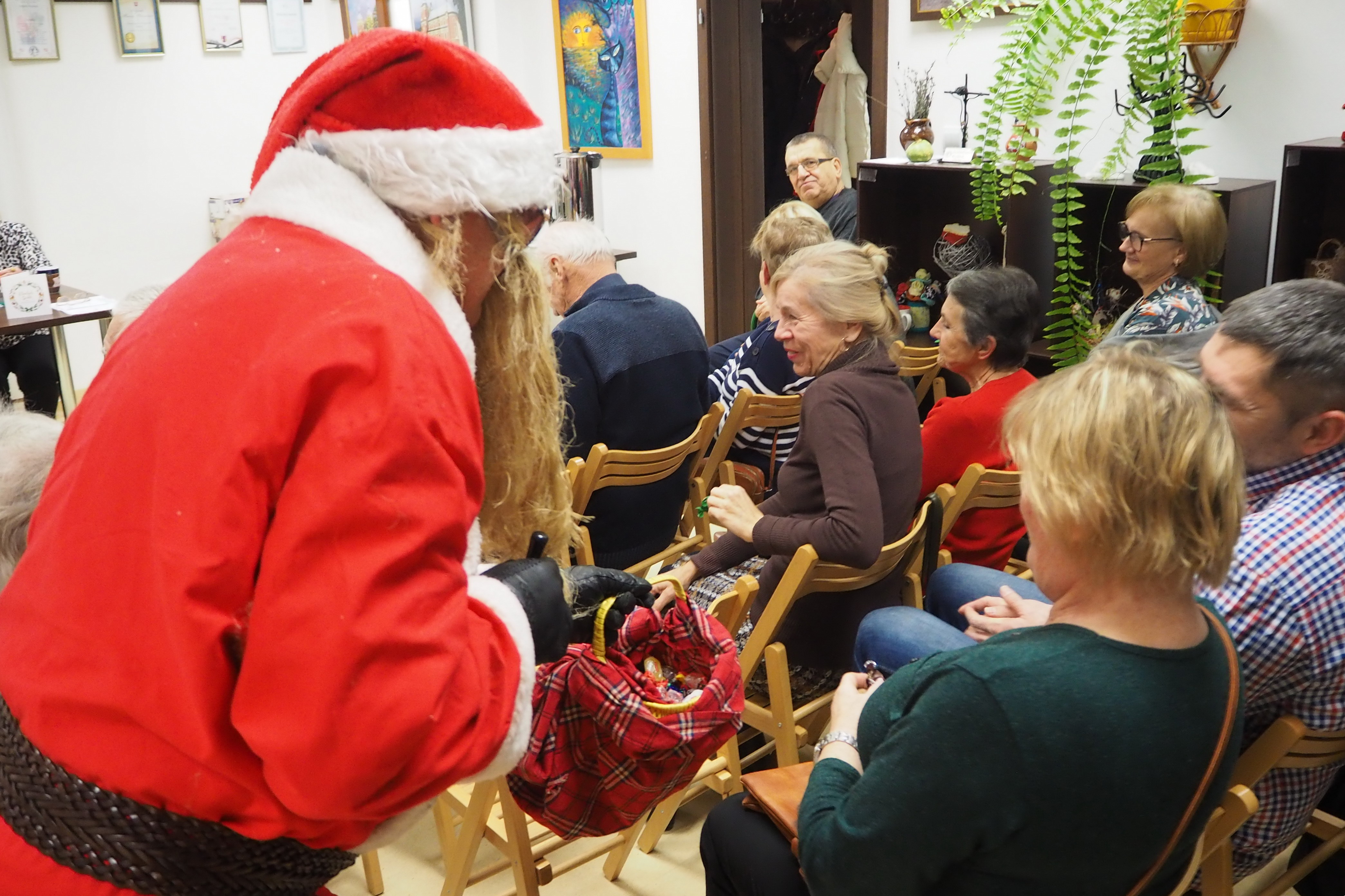 Ażeby tradycji mikołajkowych stało się zadość, trzeba jeszcze nadmienić, iż w trakcie opowieści Pani Walentyny nieoczekiwanie zjawił się Mikołaj, lecz cóż… bez reniferów. Jak zwykle hojnym darczyńcą miłych niespodzianek okazał się nasz przebrany kolega – Andrzej Bernat. Mikołaj wszystkich obdarował cukierkami i raptem… zniknął jak kamfora.