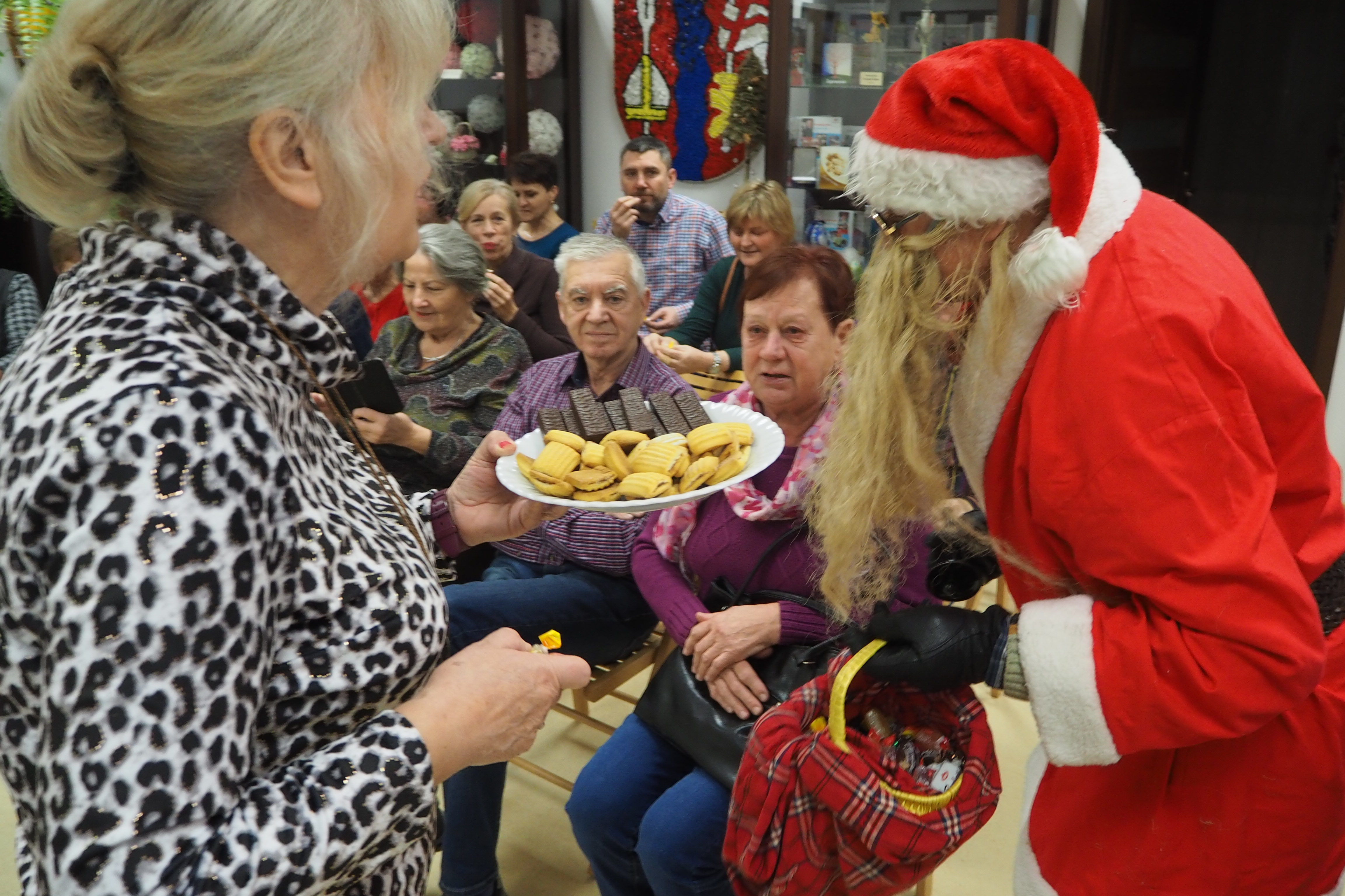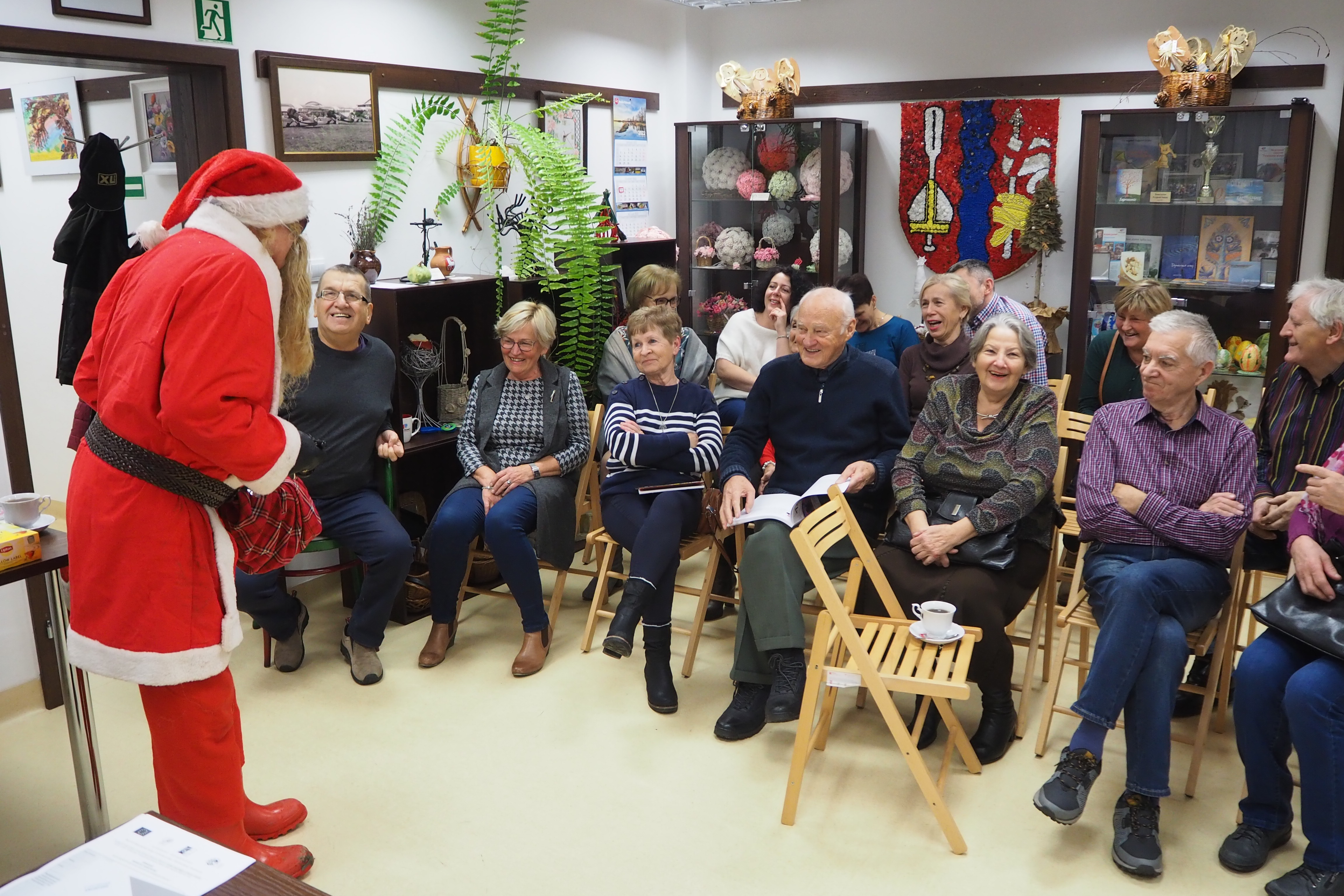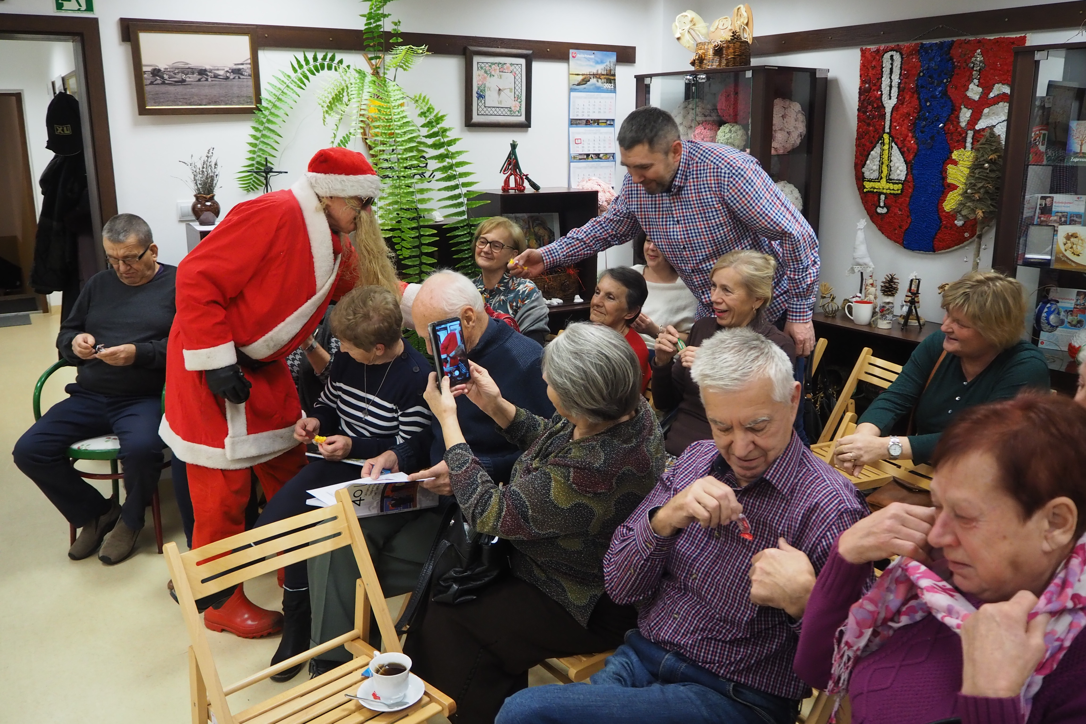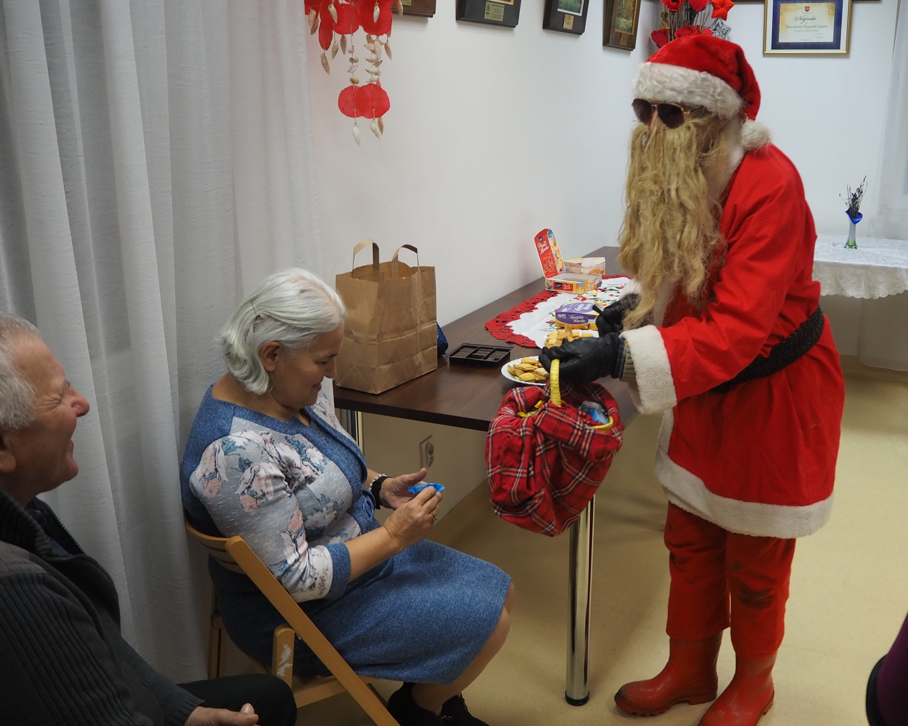 Ażeby tradycji mikołajkowych stało się zadość, trzeba jeszcze nadmienić, iż w trakcie opowieści Pani Walentyny nieoczekiwanie zjawił się Mikołaj, lecz cóż… bez reniferów. Jak zwykle hojnym darczyńcą miłych niespodzianek okazał się nasz przebrany kolega – Andrzej Bernat. Mikołaj wszystkich obdarował cukierkami i raptem… zniknął jak kamfora.