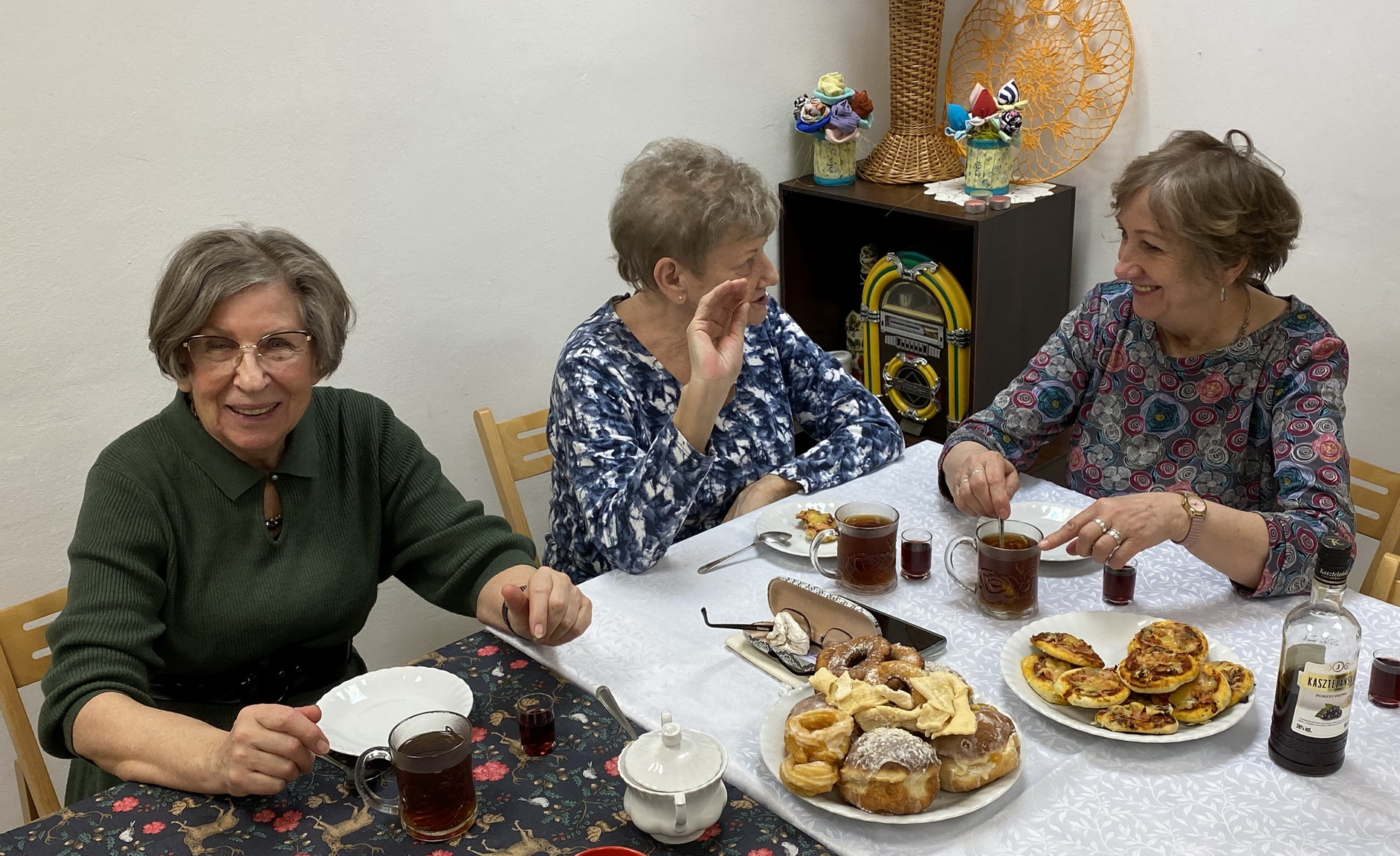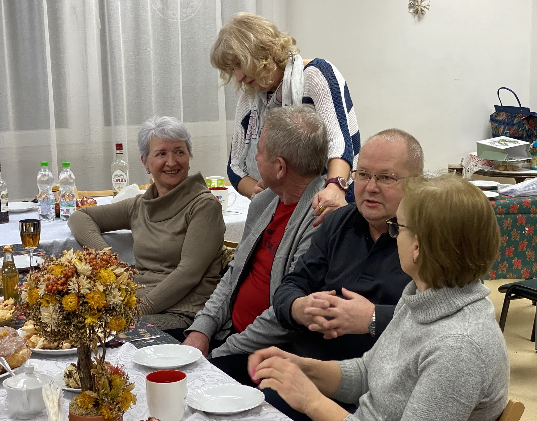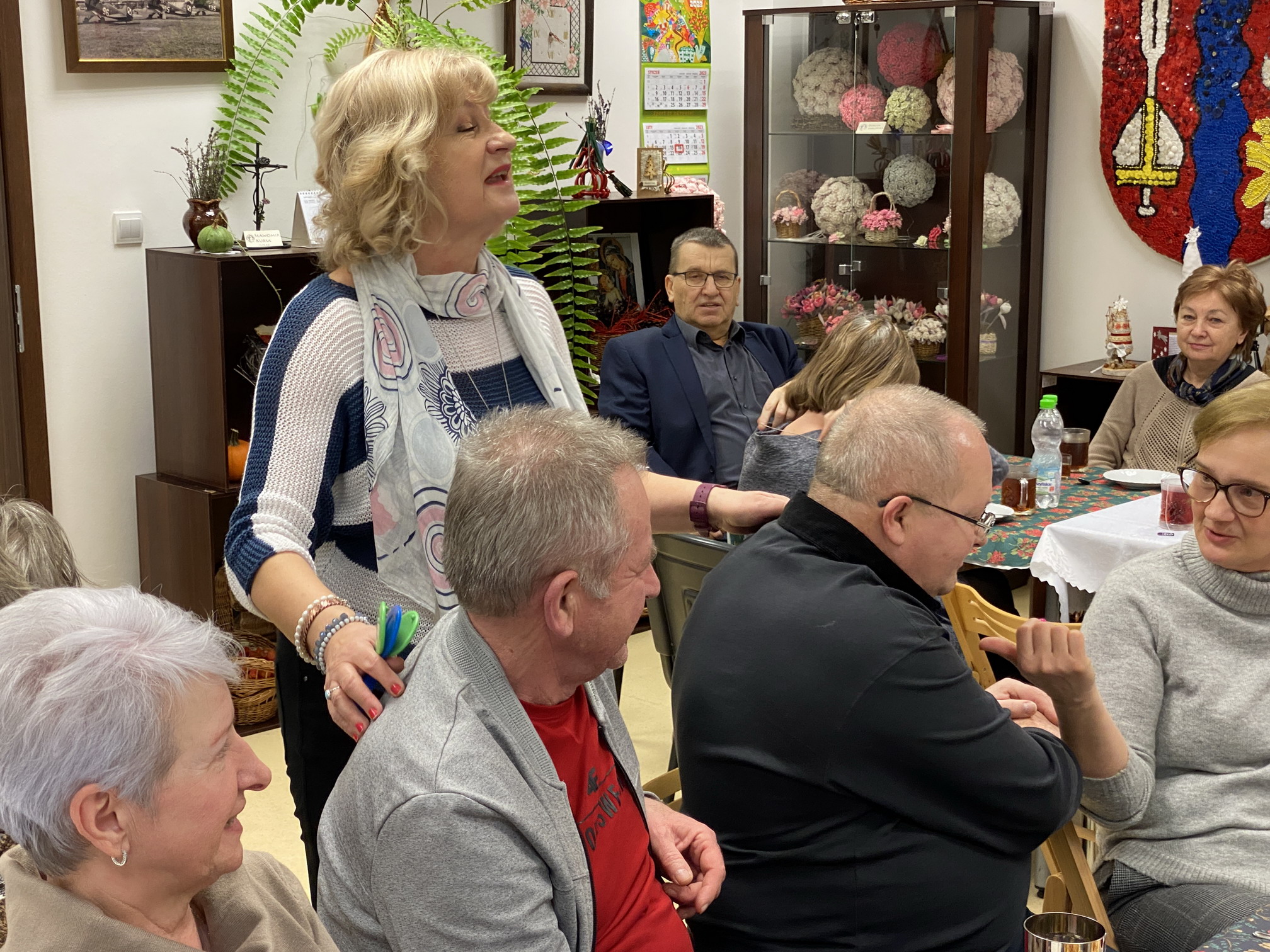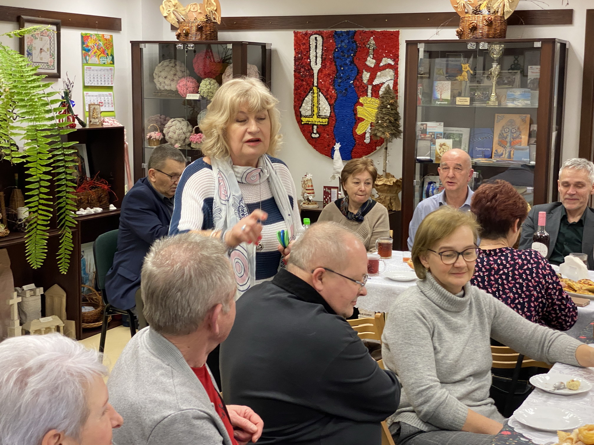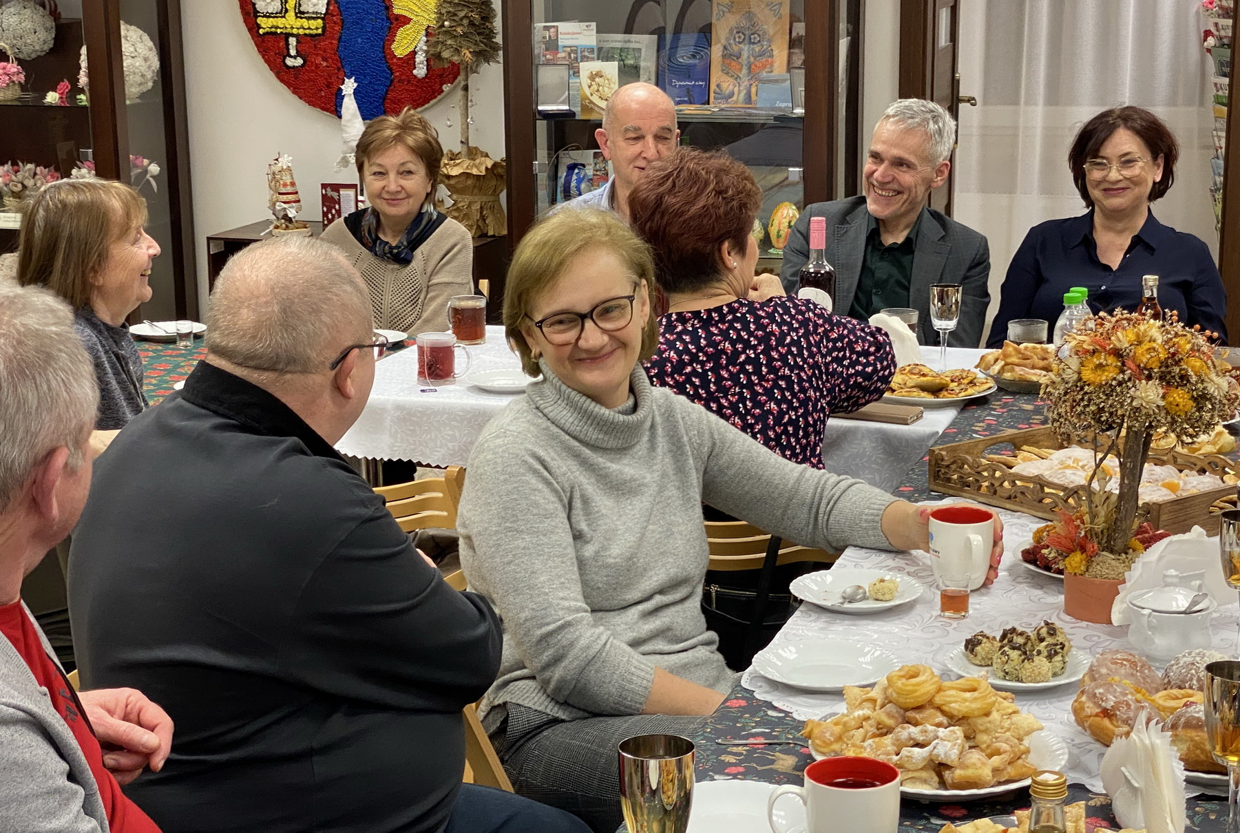 Tłusty czwartek to ostatni czwartek przed wielkim postem (czyli 52 dni przed Wielkanocą) w kalendarzu chrześcijańskim. Znany także jako zapusty, mięsopust, karnawał. Tłusty czwartek rozpoczyna ostatni tydzień karnawału. Historia zwyczaju tłustego czwartku sięga starożytności. Wtedy był to dzień, kiedy świętowano odejście zimy, a witano nadejście wiosny. Ucztowanie skupiało się głównie na jedzeniu tłustych potraw. Pączki były zakąską na uczcie, a wykonane były z ciasta chlebowego i nadziewane słoniną. Około XVI wieku w Polsce pojawił się zwyczaj jedzenia pączków w wersji słodkiej. Przyjęło się wierzenie, że jeśli ktoś w tłusty czwartek w ogóle nie zje pączka, to nie będzie się mu wiodło. Dawniej, przyrządzając pączki, nadziewało się niektóre migdałem lub orzechem włoskim. Wierzono, że kto na taki trafi, spotka go szczęście. W Polsce, zarówno, w miastach i na wsiach najhuczniej i najweselej obchodzono ostatni tydzień karnawału, rozpoczynający się tłustym czwartkiem. Dzień ten upływał głownie na jedzeniu i piciu. Stoły królewskie, magnackie, szlacheckie, jak i chłopskie uginały się od tradycyjnych, zapustnych potraw. W tłusty czwartek nigdzie nie mogło zabraknąć smażonych na tłuszczu racuchów, blinów, pampuchów, chrustów zwanych też faworkami oraz słodkich, okrągłych, pulchnych i nadziewanych pączków. Tańce i obfitość pożywienia, które były obowiązkowe w mięsopusty, oprócz przyjemności, dawały także podstawę do wróżb i zaklinania urodzaju. Wierzono bowiem w ich magiczny sens. Obfitość jedzenia miała przynosić urodzaj i dobrobyt na cały rok. Według badań w tłusty czwartek statystyczny Polak zjada 2-3 pączki. Oznacza to, że w sumie zjedliśmy w ten tłusty czwartek 2023 roku nawet ponad 100 milionów sztuk tego popularnego, cukierniczego wyrobu. W tej statystyce znaleźliśmy się też my, członkowie TP Gołębia. W naszej Izbie też zapanowało obżarstwo, również królowały pączki i faworki. Stoły uginały się tudzież od innego jadła. „Przekąską” zwyczaju pączkowego były nasze śpiewy ze sławnych śpiewników Jurka – naszego nauczyciela i akompaniatora. Mamy nadzieję, że ta praca naszego chóru choć trochę spaliła zdobywane kalorie. Poza tym nasz ciągły i nieprzerwany śmiech może i sprzyjał pozbywaniu się wartości energetycznej pokarmów… A ponoć jeden tradycyjny pączek ma około 350 kilokalorii, niespełna 6 gramów białka, ponad 50 gramów węglowodanów i około 13 gramów tłuszczu… Ale trudno - najważniejszy przecież odwieczny pączkowy zwyczaj!!!
