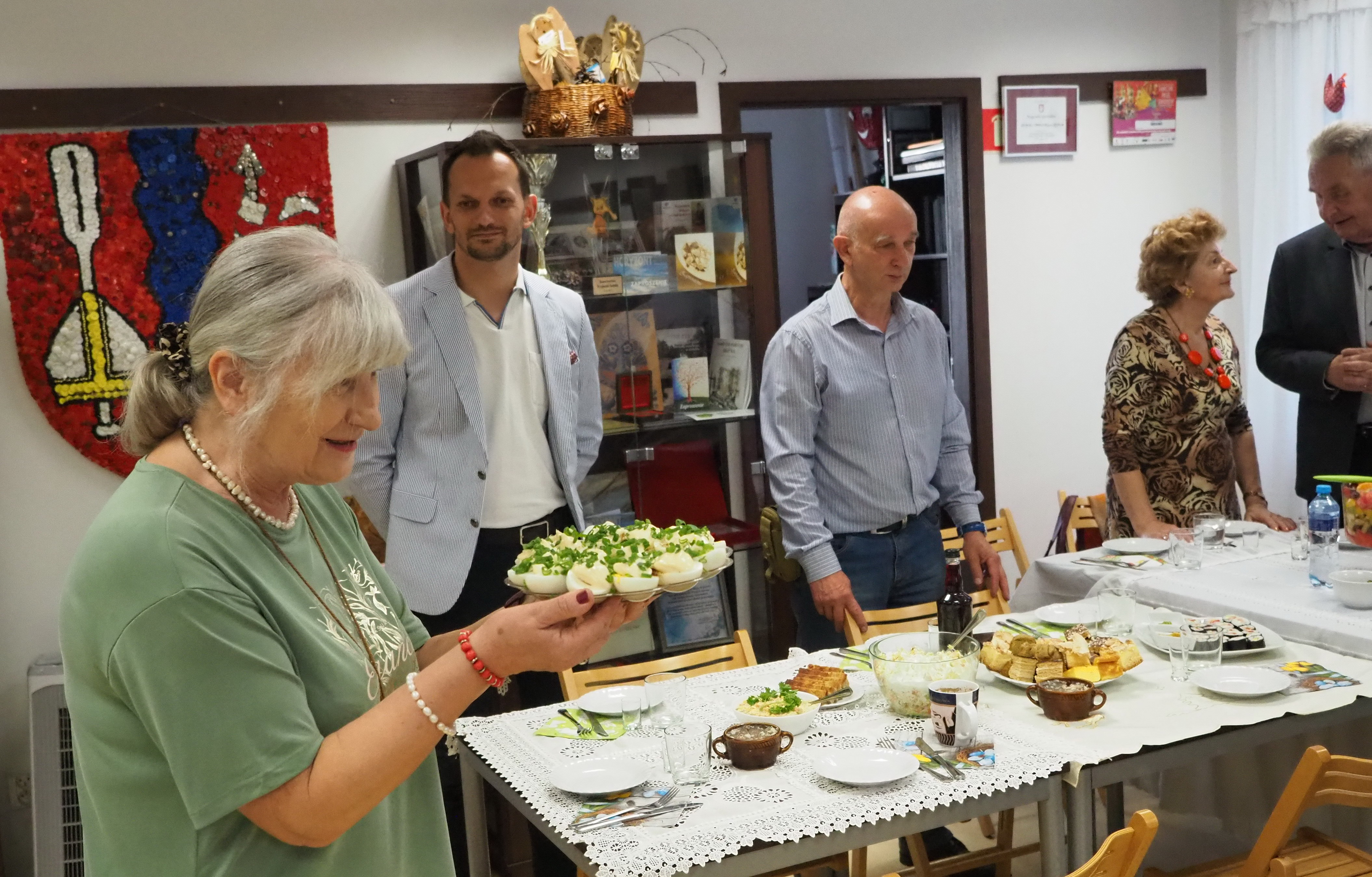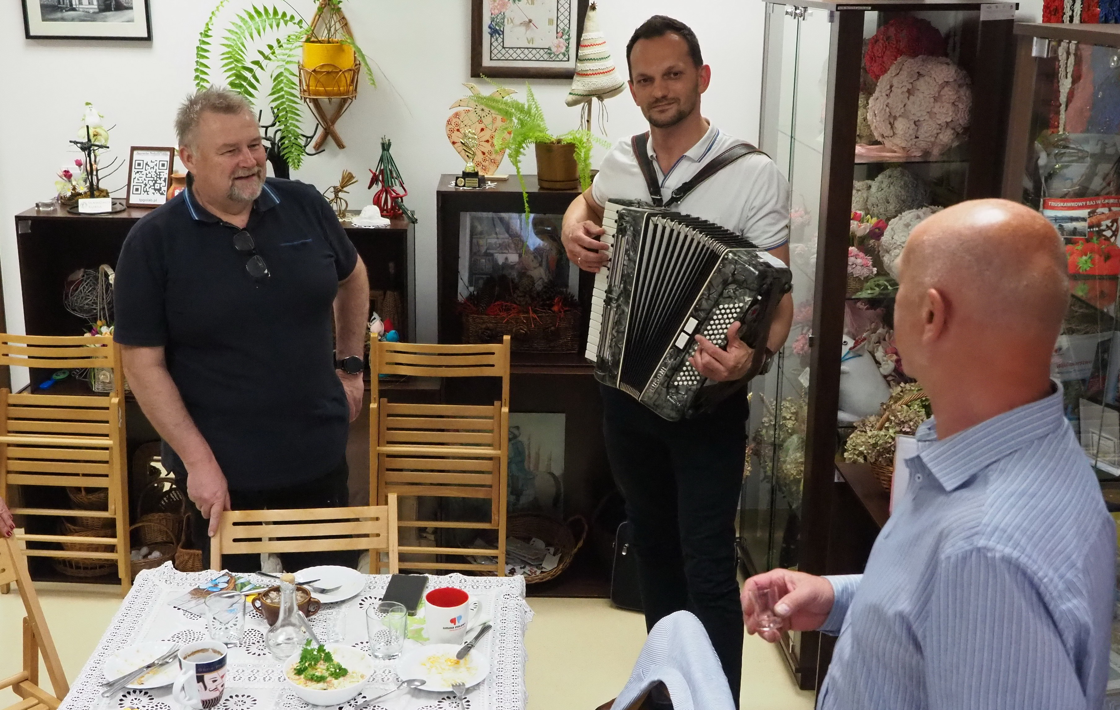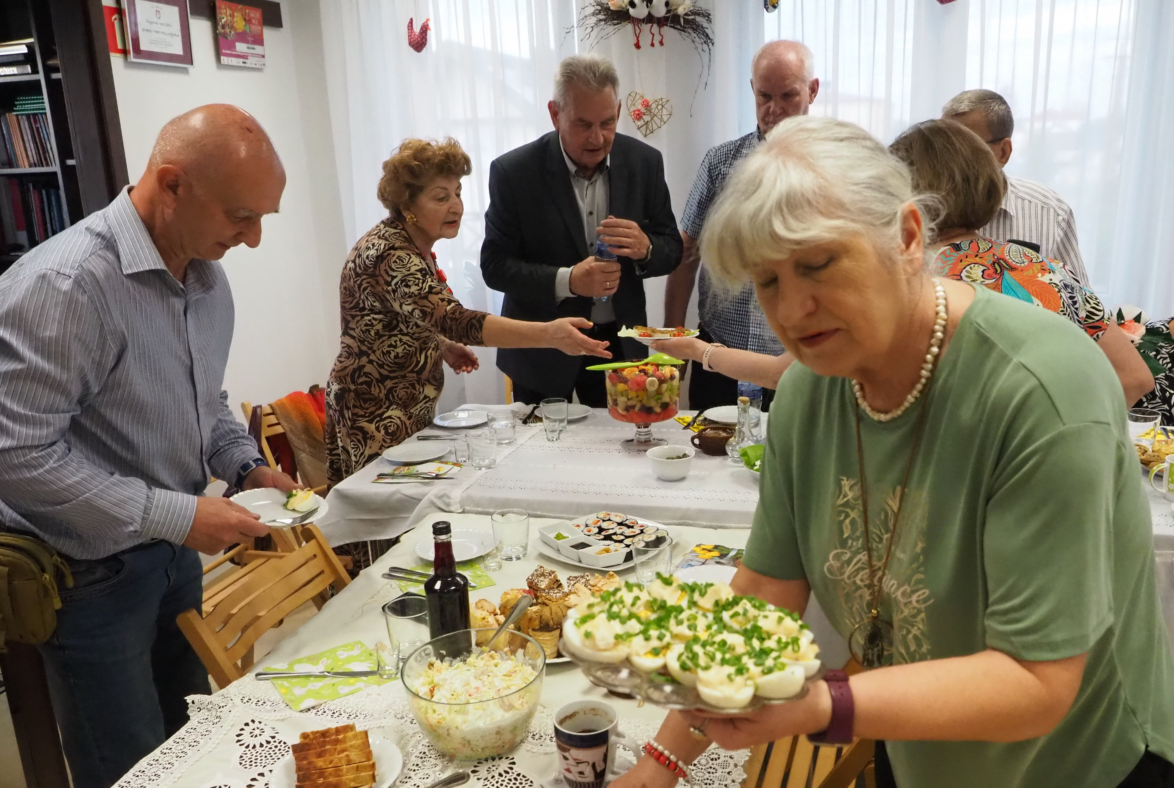 Tradycyjnie, jak co roku przedłużamy sobie święta i spotykamy się we wtorek „wielkanocny”. W tym roku przypadło to na dzień 22 kwietnia 2025 r. Każdy z naszych członków przyniósł przygotowane własnoręcznie potrawy i różne frykasy. Sala wcześniej uroczyście przygotowana. Na spotkaniu wielkanocnym gościliśmy Wójta Gminy Puławy Pana Kamila Lewandowskiego i Przewodniczącego Rady Powiatu Pana Pawła Nakoniecznego. Spotkanie było pełne życzeń, serdeczności i świątecznego ciepła. To piękny gest, który co roku przypomina nam o sile wspólnoty, życzliwości i nadziei. Rozmowom nie było końca. Rozmawialiśmy także o naszych sprawach związanych z problemem „Gruszki” szukając różnych rozwiązań. Były także życzenia dla kolegi Jurka Jabłonki (naszego muzyka) z okazji imienin. Sto lat dla jubilata grał Pan Wójt, a my śpiewaliśmy. Czas tak szybko upłynął. Do kolejnego spotkania.
