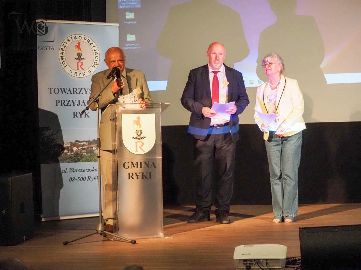 W dniach 5 - 6 lipca 2025 r. w Rykach odbyła się Konferencja Regionalistów Lubelszczyzny pod tytułem „Rody magnackie i ziemiańskie z Ryk i okolic oraz ich wpływ na rozwój społeczności lokalnej, kultury i samorządności”. Wydarzenie zgromadziło 80 regionalistów i pasjonatów historii z województwa lubelskiego i przedstawicieli lokalnych władz samorządowych. Organizatorem wydarzenia była WRTR w Lublinie, partnerem Województwo Lubelskie – Urząd Marszałkowski W L-Smakuj Życie. Współorganizatorami konferencji byli: Gmina Ryki, Starostwo Powiatowe w Rykach, Centrum Kultury i Sportu w Rykach oraz Towarzystwo Przyjaciół Ryk. Konferencję otworzył Prezes WRTR w Lublinie prof. dr hab. Marian Surdacki. Powitania dokonali członkowie Zarządu WRTR Teresa Woszczek i Hubert Trukan, którzy poprowadzili konferencję. Podczas uroczystości wręczono odznaczenia i dyplomy uznania zasłużonym regionalistom. Marszałek Województwa Lubelskiego odznaczył prezes TPR Panią Hannę Witek Medalem 550-lecia Województwa Lubelskiego. Burmistrz Ryk nagrodził Dyplomami Uznania członków Towarzystwa Przyjaciół Ryk. Następnie wygłoszono referaty poświęcone Leonowi Wyczółkowskiemu, Stanisławowi Poniatowskiemu, starostom ryckim, księciu S. Poniatowskiemu synowi Kazimierza oraz aktywnym ziemianom z okolic Ryk. Wystąpieniom towarzyszyły bogato ilustrowane pokazy multimedialne. Po zakończeniu części wykładowej mieliśmy możliwość podziwiać znakomity występ Orkiestry Dętej OSP w Rykach. Następnie udaliśmy się na zwiedzanie Ryk. Odwiedziliśmy m.in. miejsce spoczynku Stanisława Poniatowskiego, obejrzeliśmy wystawę plenerową na rynku, a także stary cmentarz, gdzie znajdują się groby rodziny Falińskich i sióstr Wyczółkowskiego oraz innych znanych rodów. TPR od kilku lat organizuję kwestę na rzecz ratowania tego cmentarza, dzięki czemu odrestaurowano już kilkanaście nagrobków, a teren jest uporządkowany. Wieczorem uczestnicy konferencji mogli cieszyć się występami Zespołu Śpiewaczego „Karczmiska” oraz Zespołu Tańca Ludowego „Ryki”.