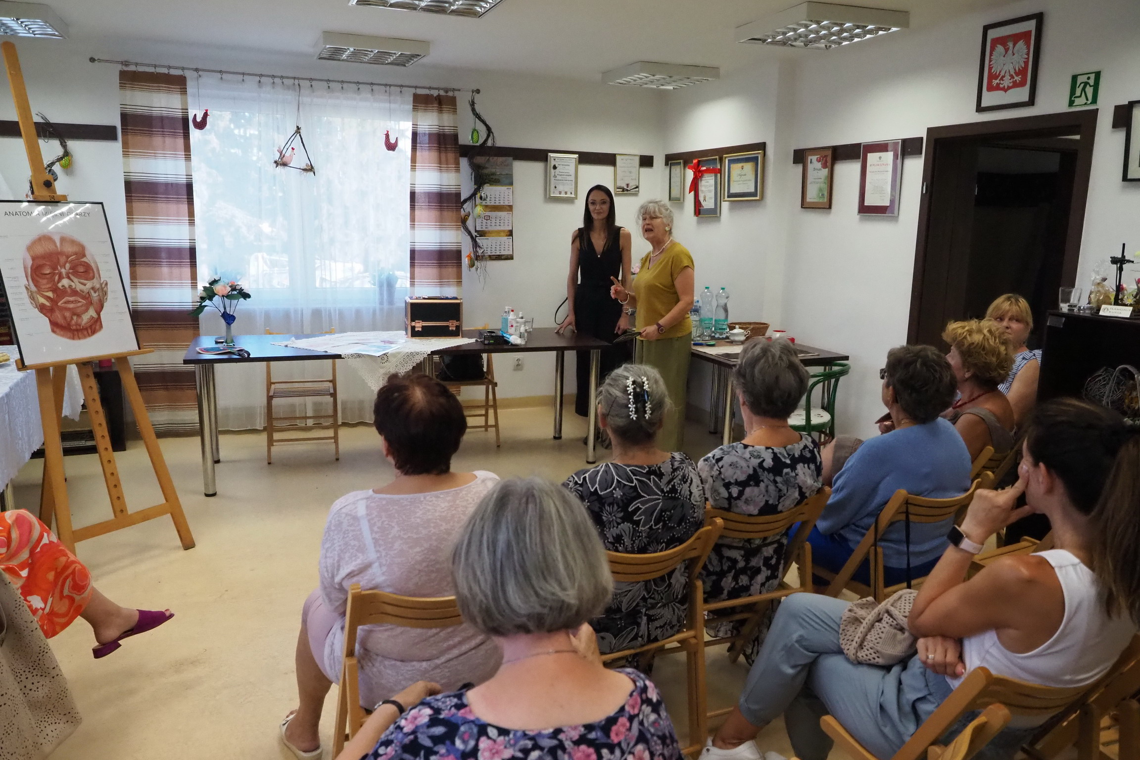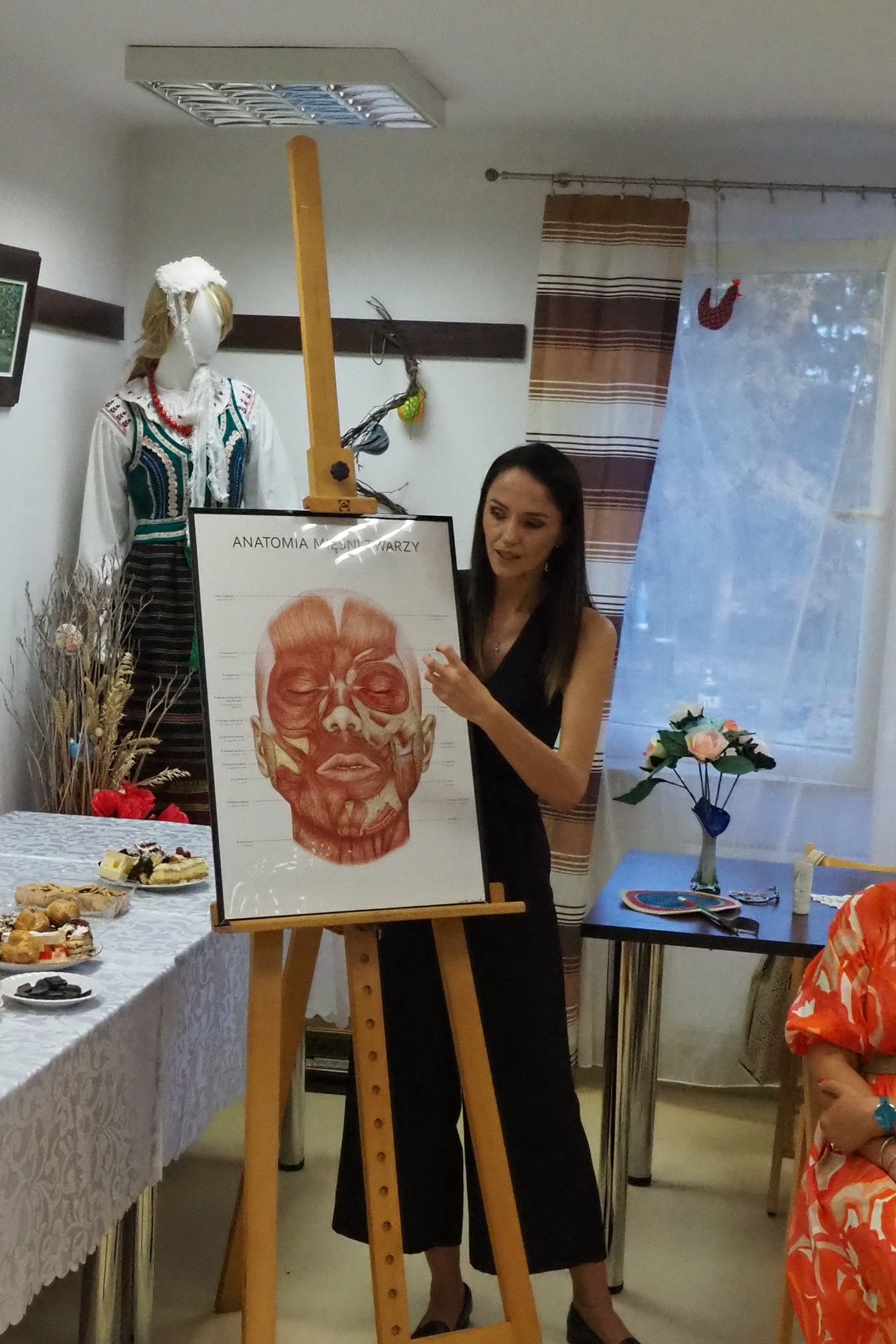 Podczas naszego spotkania i wykładu Pani Kamila mówiła licznie zgromadzonym, jak w kompleksowy sposób dbać o zdrowie i młody wygląd skóry. Skupiła się też na roli składników aktywnych w pielęgnacji skóry dojrzałej oraz na codziennych rytuałach, które wspierają jej kondycję i opóźniają procesy starzenia. Omówiła techniki masażu odmładzającego i medycznego, podkreślając ich wpływ na mikrokrążenie, jędrność oraz regenerację. Wyjaśniła również, jakie procesy zachodzą w skórze wraz z wiekiem i jakie bariery utrudniają przenikanie składników aktywnych, a także w jaki sposób można zwiększyć ich skuteczność. Spotkanie pokazało, że piękna skóra to efekt świadomej pielęgnacji, odpowiednio dobranych preparatów oraz wspierających technik manualnych. Mieliśmy możliwość posłuchania rad, jak dbać o skórę na co dzień i stosować proste i skuteczne rytuały pielęgnacyjne oraz łagodzić napięcia i bóle głowy za pomocą technik masażu. Był także pokaz masażu twarzy. Wszyscy słuchacze byli bardzo zadowoleni i każdy z nich wyniósł dużo praktycznych porad. Serdecznie dziękujemy Pani Kamili za fachowy wykład i perfekcyjne podejście do tematu naturalnego piękna. Gratulacje i słowa dużego uznania.