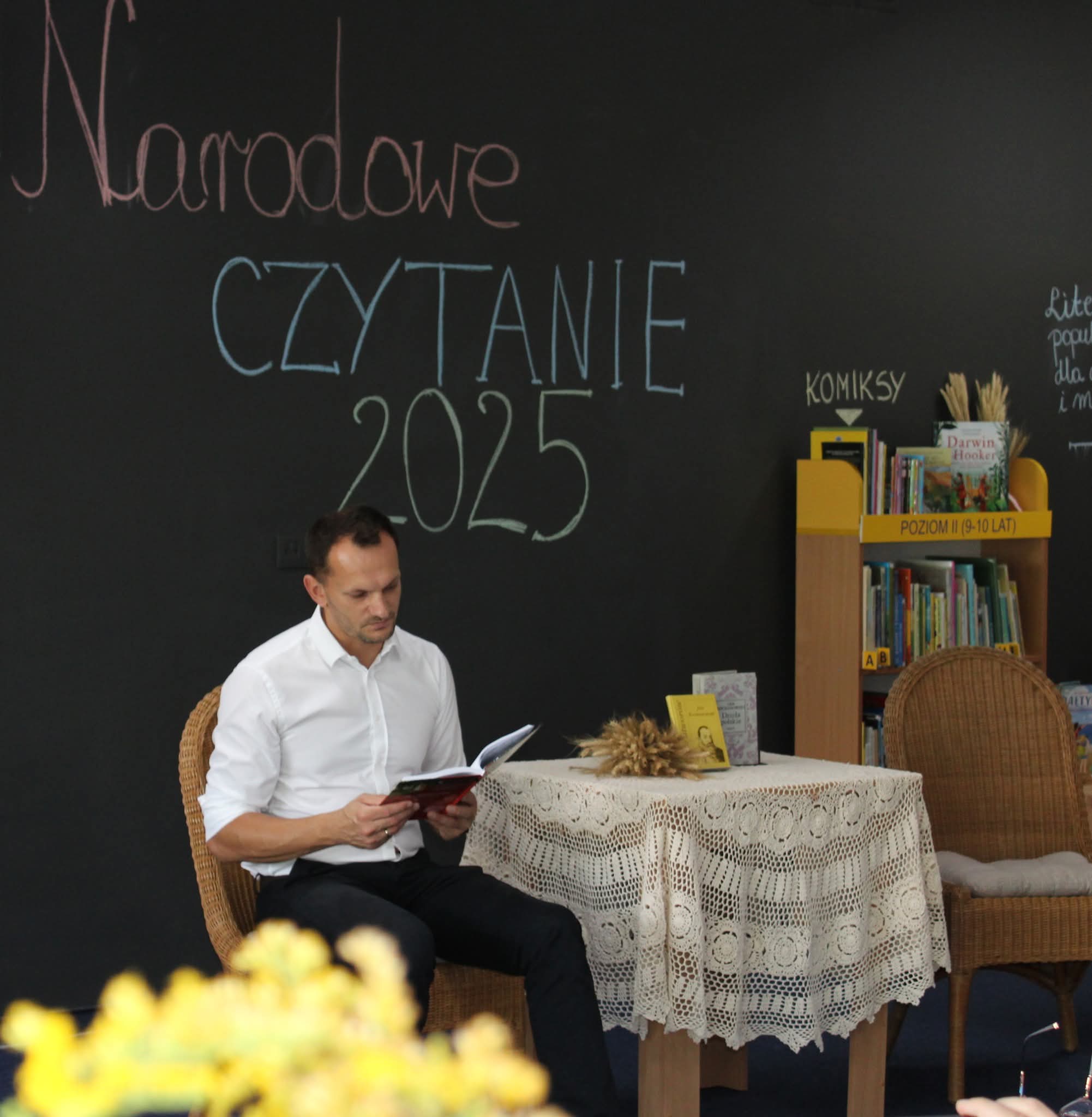 Dnia 3 września br. Prezes Towarzystwa Przyjaciół Gołębia (Pani Teresa Woszczek) brała udział w Ogólnopolskiej Akcji Narodowego Czytania w Gminnej Bibliotece w Górze Puławskiej. W tym roku słowną lekturą objęto utwory Jana Kochanowskiego – jednego z najwybitniejszych poetów polskiego renesansu, autora ponadczasowych Fraszek, Pieśni, Psalmów i poruszających Trenów. Jego poezja, pełna mądrości, refleksji nad ludzkim losem i umiłowania ojczyzny, nieustannie zachwyca kolejne pokolenia czytelników.