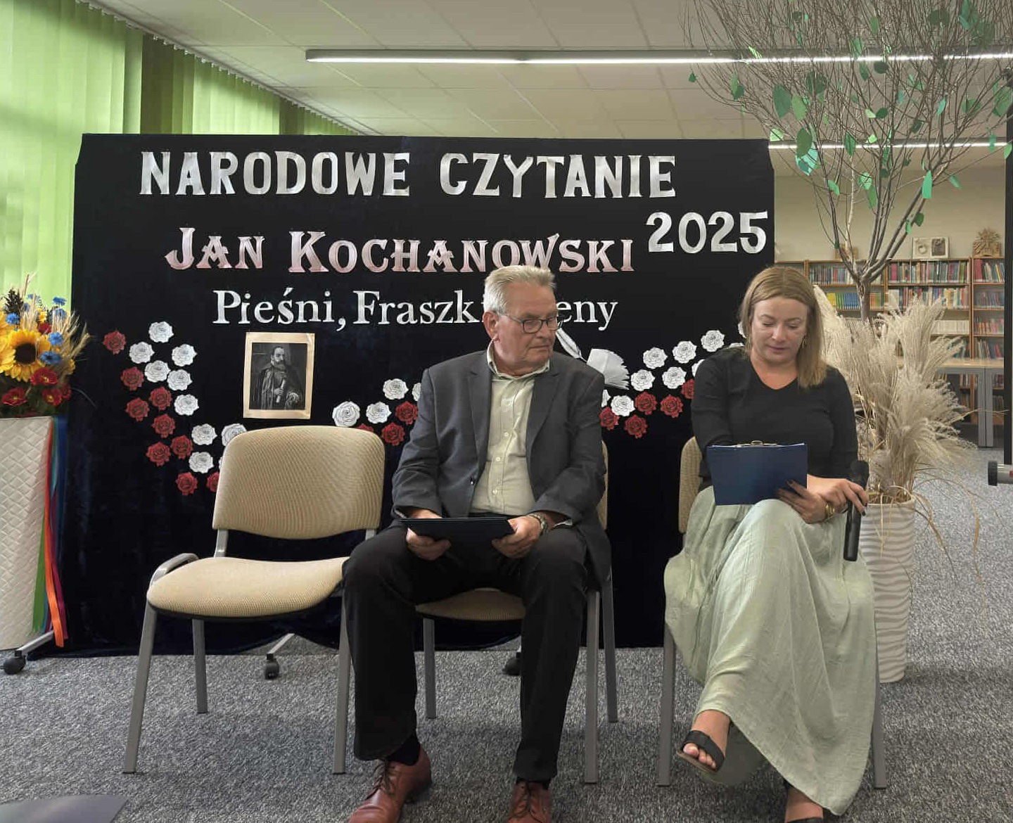 Natomiast 19 września Pani Halina Osiak i Pan Sławomir Jedliczko czytali Pieśni Kochanowskiego w Szkole Podstawowej w Gołębiu. Było to kolejne i sympatyczne spotkanie z literaturą.