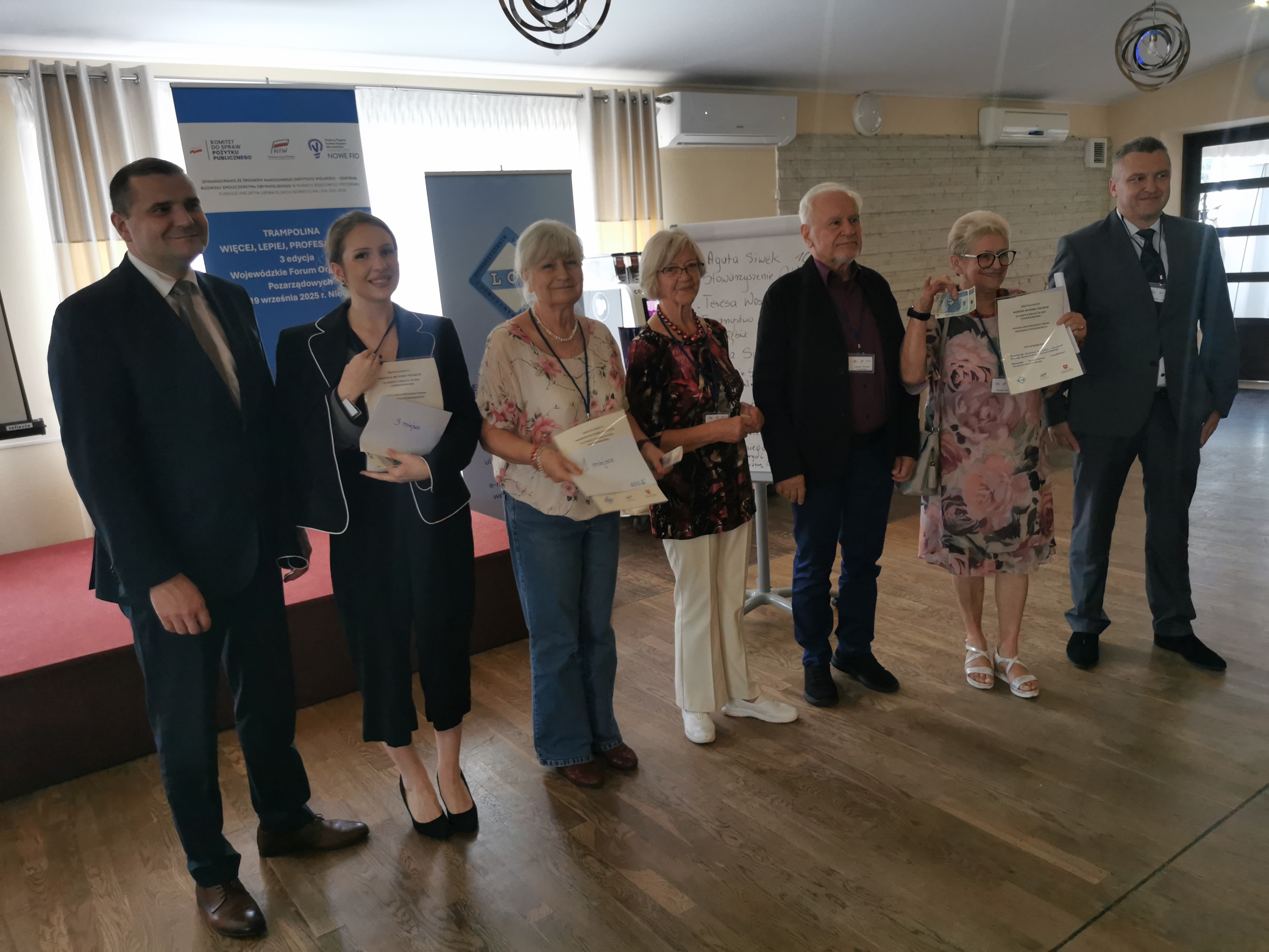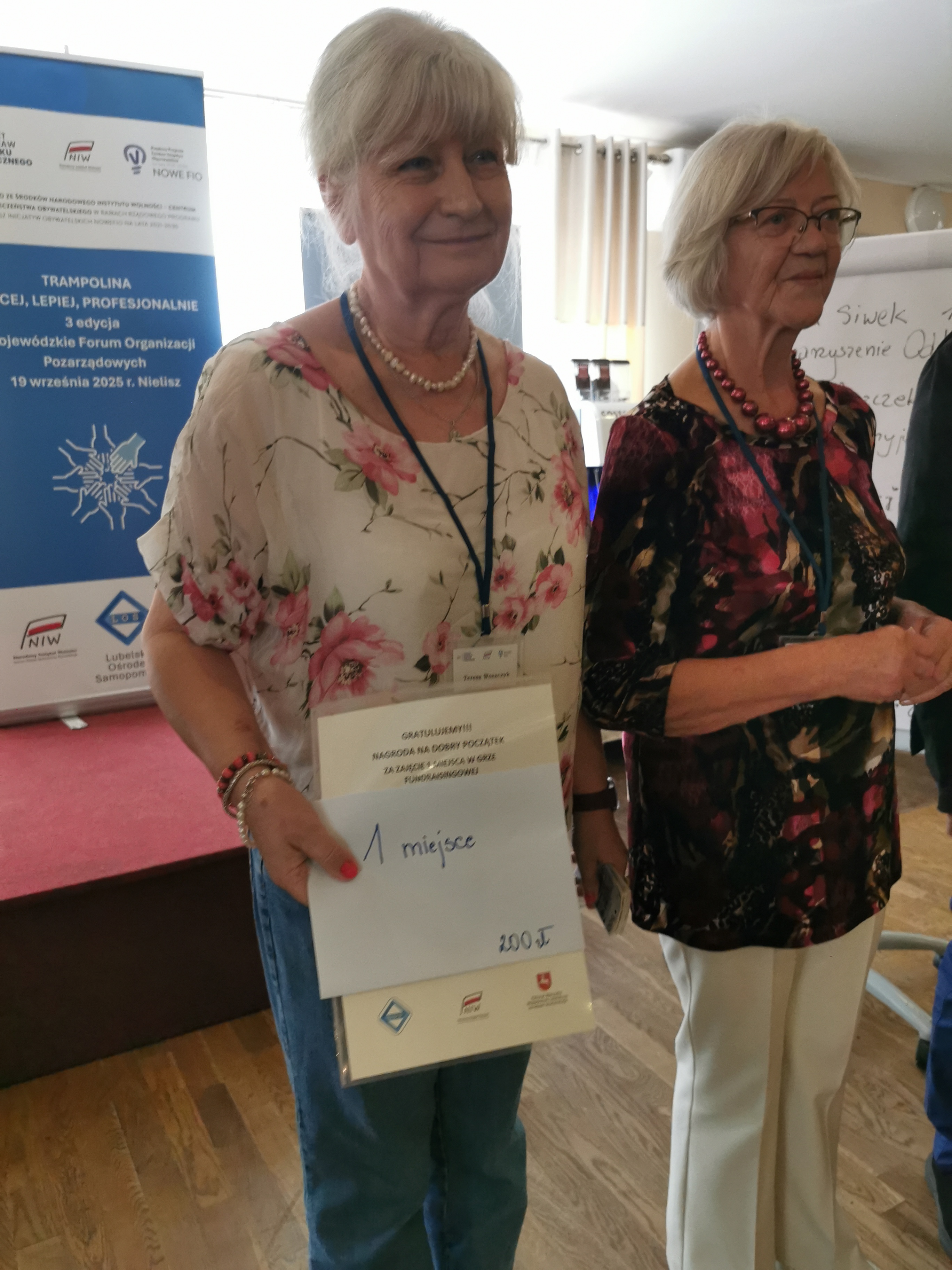 Dnia 19 września siedmioro członków Towarzystwa uczestniczyło w Wojewódzkim Forum Organizacji Pozarządowych w Nieliszu w ramach projektu „Trampolina – Więcej, Lepiej, Profesjonalnie – 3. Edycja”. Sympozjum organizowane było pod patronatem Marszałka Województwa Lubelskiego. Oprócz wystąpień różnych przedstawicieli, rozmów i prezentacji odbyła się gra „Fundraisingowa”, w której wzięło udział sześcioro przedstawicieli różnych organizacji pozarządowych z województwa lubelskiego. Teresa Woszczek - przedstawicielka gołębskiego stowarzyszenia wzięła udział w konkursie i zajęła I miejsce. Zadaniem gry było zreferowanie w ciągu jednej minuty działania realizowanego lub planowego przez stowarzyszenia. Prezentacja TPG dotyczyła promocji nowej publikacji pt. „Okruchy historii Gołębia. Zabytki sakralne.” i perkalowych godów zespołu tanecznego „Gesawa”. Za ciekawą prezentację była nagroda pieniężna w kwocie dwustu złotych. Nagrodę tę otrzymano i została ona przekazana na konto Towarzystwa z przeznaczeniem na publikacje w/w książki.