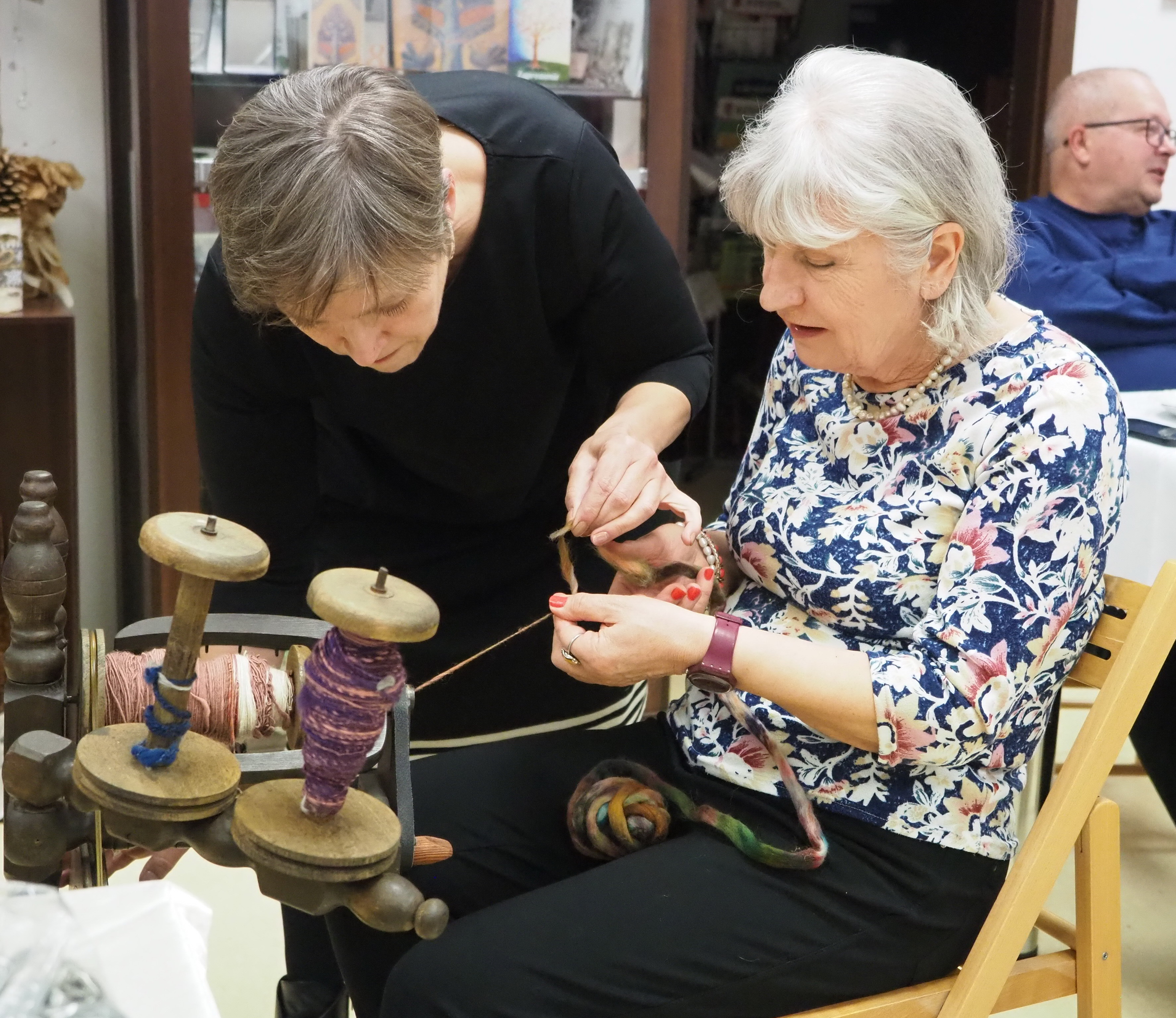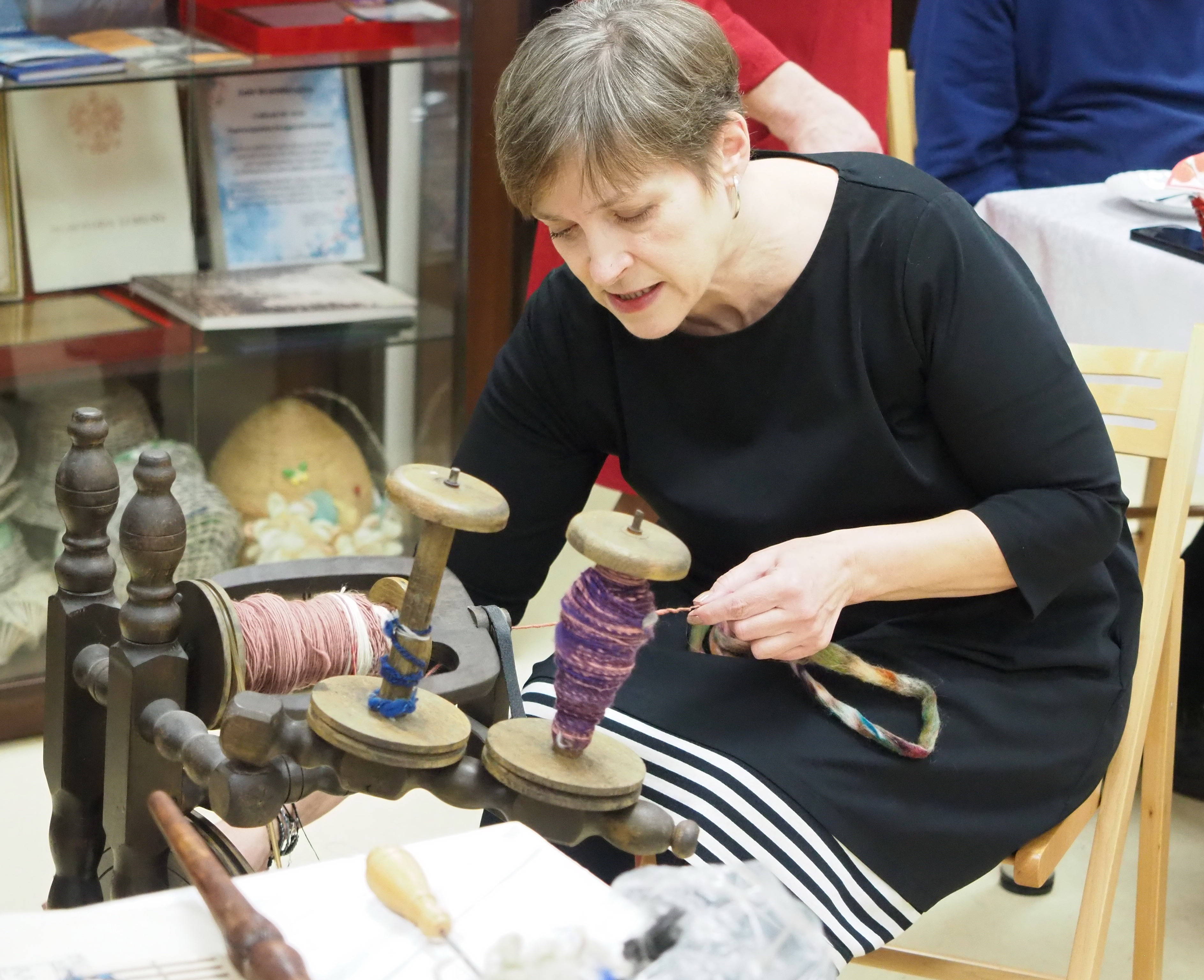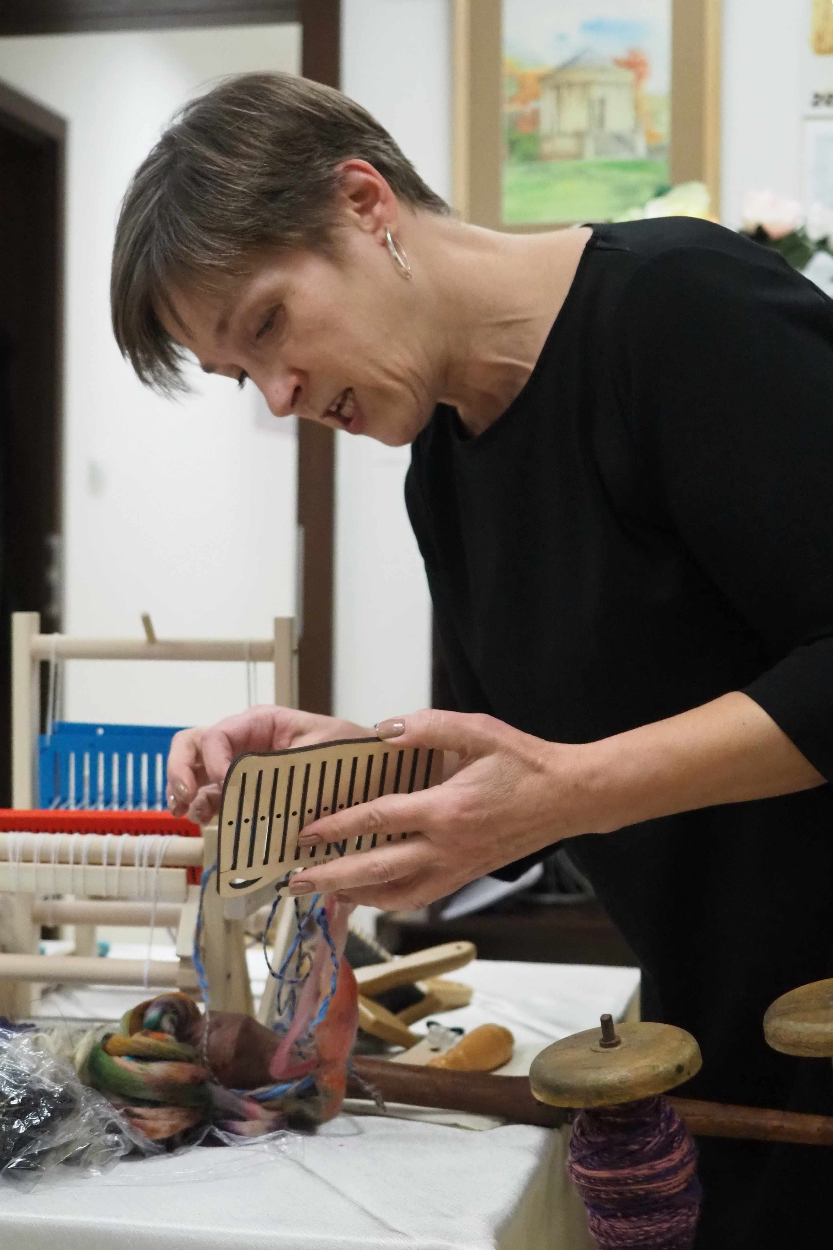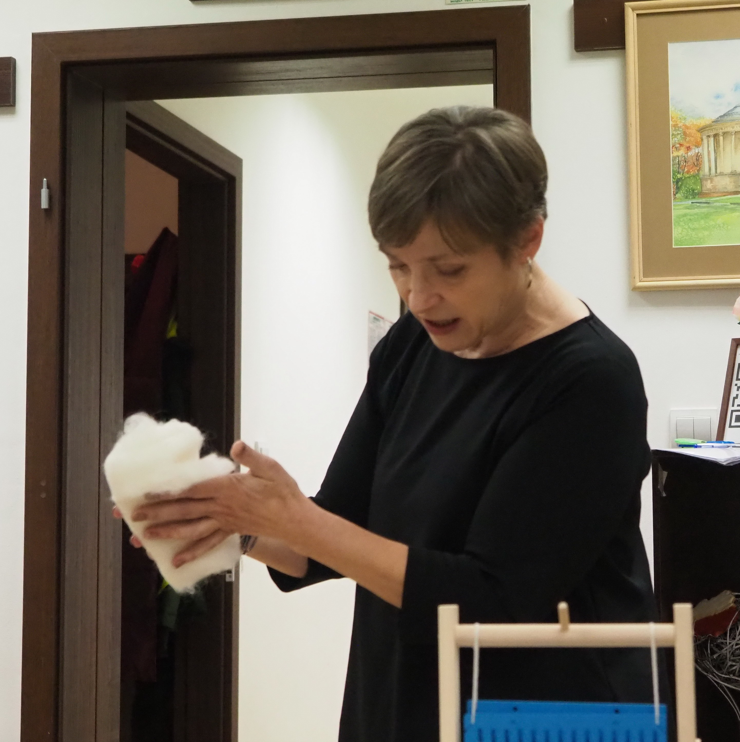 Dnia 12 lutego 2026 r. w Izbie Produktu Lokalnego zorganizowaliśmy tłusty czwartek. Stoły pełne smakołyków. Pączki, faworki, oponki i inne przysmaki. Atrakcją spotkania była prezentacja o tytule „Od owieczki do czapeczki” przygotowana przez nasza koleżankę Dorotę Skibińską. Czy zastanawialiście się kiedyś, czemu nasze babcie tak dbały o odzież ? O każdy ręcznik, ścierkę, koc? Dlaczego tak pieczołowicie, cerowały skarpety, łatały portki, pruły stare swetry ? Szanowały każdy ścinek i przerabiały aż do całkowitego zniszczenia ? Koleżanka Dorota przybliżyła nam proces powstawania tkanin w czasach, kiedy kobiety robiły większość samodzielnie. Przerabiały naturalne włókna roślinne - len, konopie, pokrzywę, igły sosny, a także włókna pochodzenia zwierzęcego – wełnę i włosie. Proces przygotowania kądzieli począwszy od wstępnego przebrania, żmudnego czyszczenia, prania, czesania, gręplowania, barwienia, a potem przędzenia na wrzecionie lub kołowrotku, aż do uzyskania równej nici, był bardzo pracochłonny i wymagał wiele pracy. A to jeszcze nie koniec – taką nić trzeba było przerobić poprzez utkanie na warsztacie tkackim lub dzianie na drutach czy szydełku. Koleżanka pokazała nam zasadę tkania – na miniaturowym warsztacie i na bardku. Pokazała również swoją wielką pasję dziewiarską, prezentując zestaw swoich drutów i szydełek wraz z akcesoriami, a także gotowe wyroby, wspominając przy tym Tych, którzy ją wprowadzali na tę drogę dziewiarskiego rękodzieła. Odważni mieli okazję spróbować przędzenia na starym kołowrotku, stanowiącym rodzinną pamiątkę.