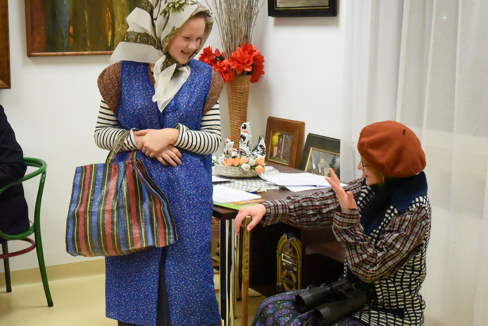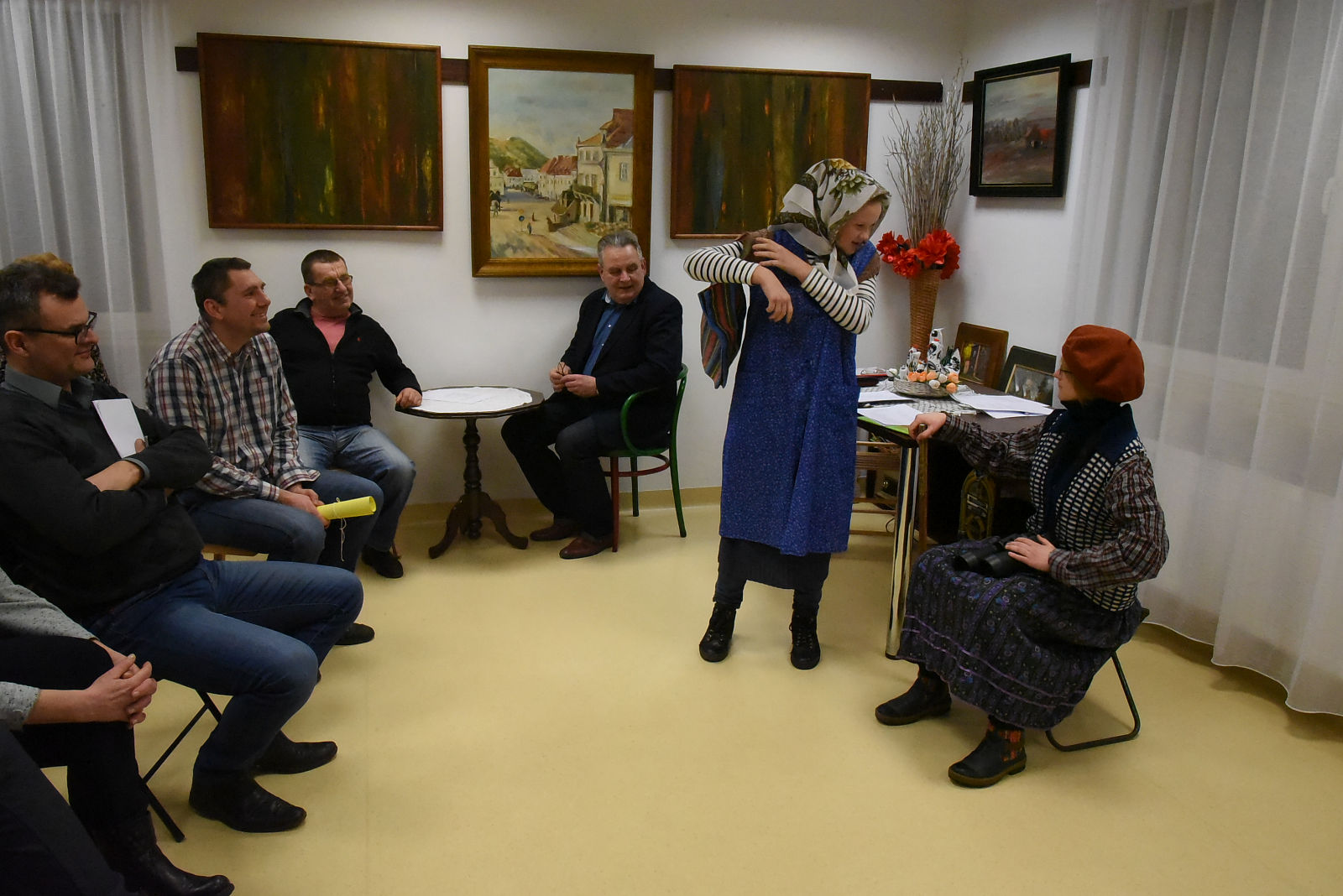 Po sprawozdaniach nastąpiła półgodzinna przerwa, w czasie której wszyscy uczestnicy Walnego Zebrania mieli dodatkową atrakcję i możliwość obejrzenia przedstawienia noszącego tytuł: „Stara paka z powszechniaka”, według scenariusza Agnieszki Maj. Spektakl przygotowali uczniowie klasy VII ze szkoły podstawowej w Gołębiu pod kierunkiem pani Doroty Jabłońskiej. Treść przedstawienia poświęcona była rozbudowanej obecnie szkole oraz nawiązywała do wspomnień o dawnej przedwojennej szkole powszechnej. Młodzież bardzo kreatywnie wcieliła się w swoje role; zagrała swobodnie, dowcipnie i spontanicznie, czym bardzo rozbawiła publiczność. Młodzi artyści zostali nagrodzeni gromkimi brawami i obdarowani słodką niespodzianką. Następnie Komisja skrutacyjna przeprowadziła tajne wybory do Zarządu i Komisji Rewizyjnej. W kolejnej przerwie Teresa Woszczek przedstawiła opracowany przez Zarząd plan pracy i zamierzenia do realizacji na bieżący rok. Ten rok, to działania dotyczące lasu i drzew. Zaplanowano sadzenie i sprzątanie lasu. Zbiórkę makulatury, wycieczki i rajdy ścieżkami dydaktycznymi naszego lasu. Konkurs plastyczny "magiczne drzewa". Wydanie albumu o tematyce leśnej oraz dużo innych stałych przedsięwzięć. Plan pracy zaakceptowano, a także uzupełniono o nowe propozycje.