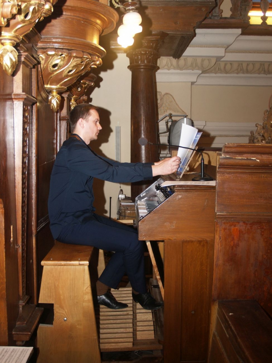 W piątkowy wieczór – 7 września - w naszym zabytkowym, przepięknym kościele mieliśmy okazję wysłuchać kolejnego koncertu organowego. Mistrzowski popis i wirtuozerię gry organowej zaprezentował Pan Paweł Wróbel z Kielc. Zanurzeni w medytację i kontemplację słuchaliśmy dźwięków płynących pośród ścian, witraży, posagów… Utwory Jana Sebastiana Bacha, Johannesa Brahmsa, Roberta Schumanna i J.C.F Fischera niosły cudowne wrażenia słuchowe i niezwykłe przeżycia duchowe. Dźwięki o różnej sile i natężeniu ukazywały piękno kompozycji i kunszt wykonania.
