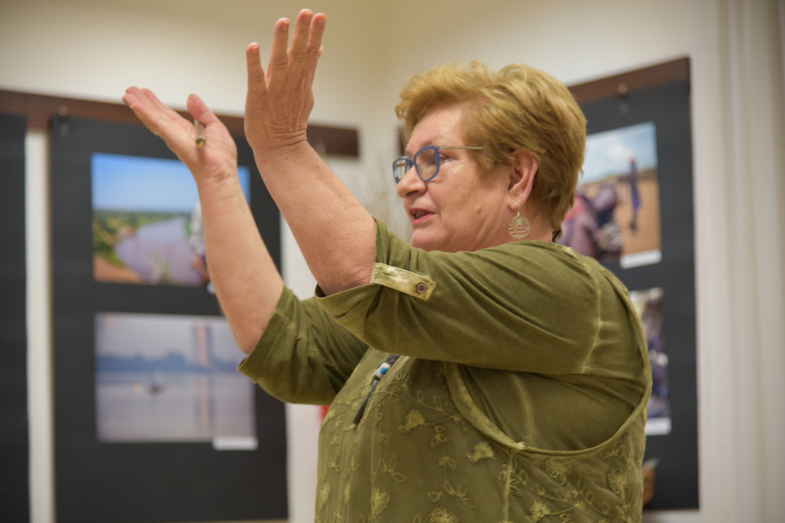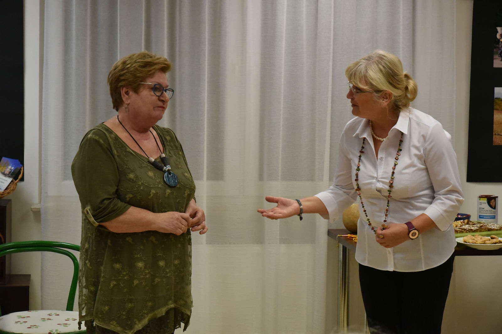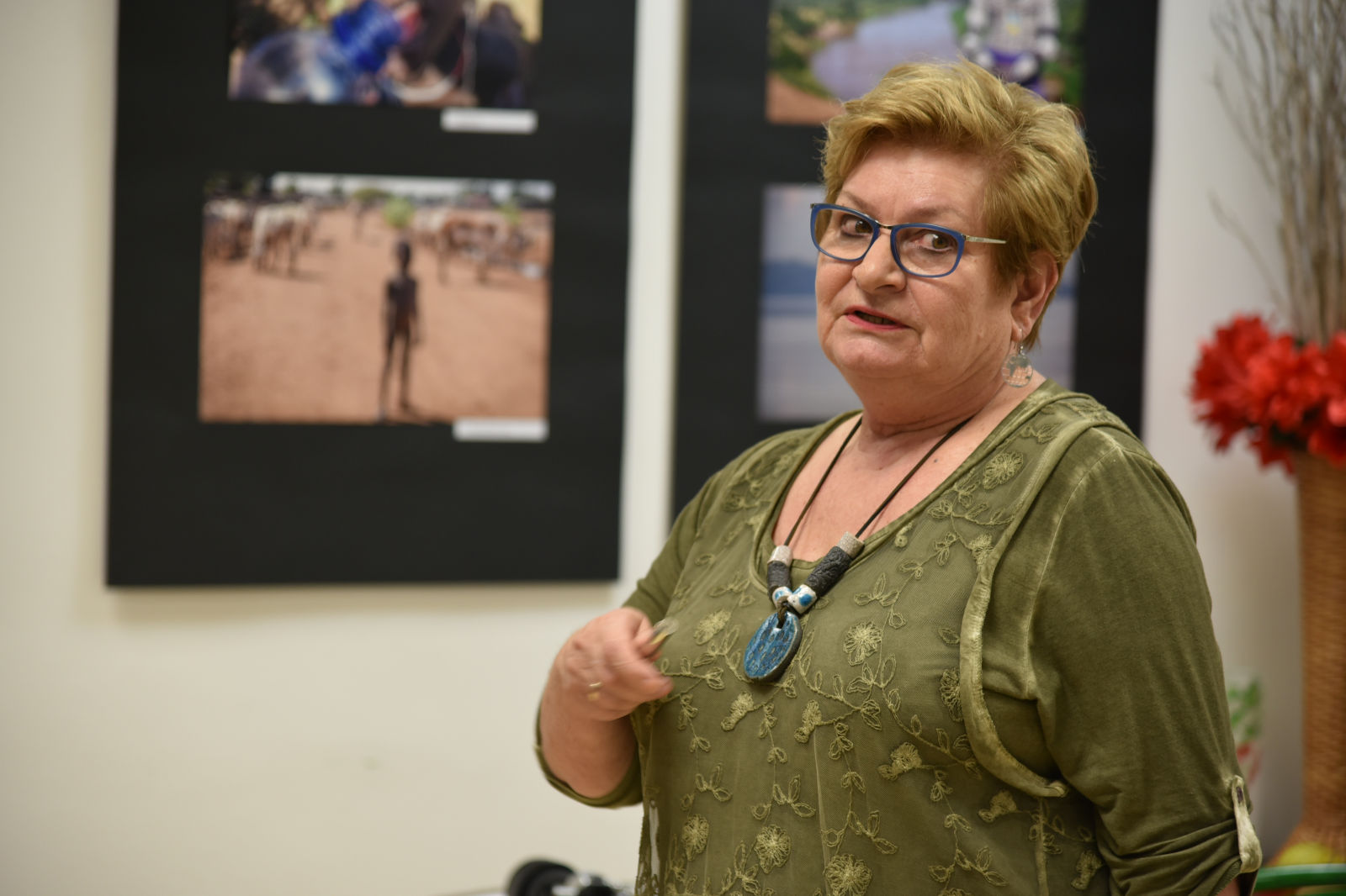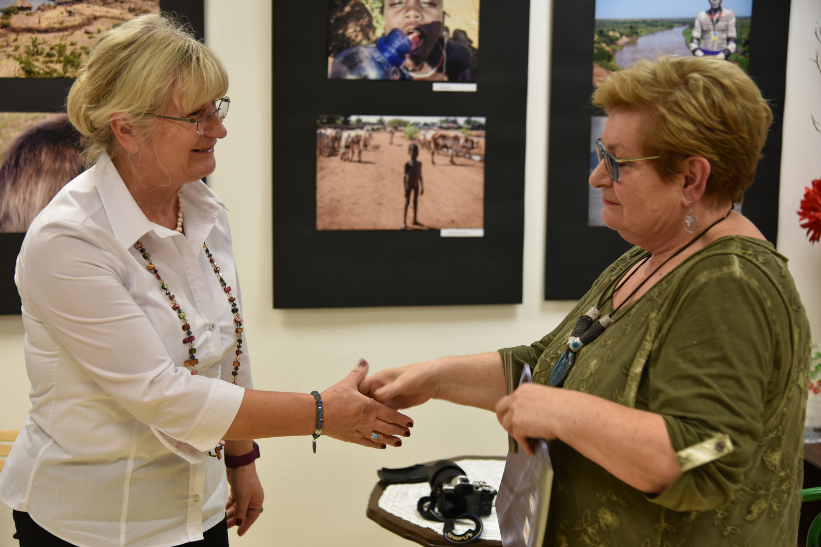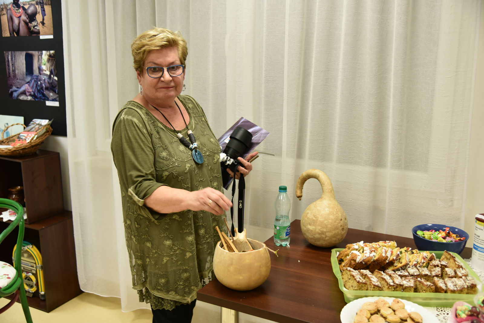 Życie pani Krystyny jest pasjonującą podróżą po świecie. Podąża w różne kierunki świata, aby przeżywać przygody, doświadczać wrażeń z przypadkowych spotkań z ludźmi, poznawać przyrodę i życie jej mieszkańców. Te wszystkie odkrycia pilnie fotografuje, aby podzielić się nimi w czasie swoich wernisaży. Artystyczne zdjęcia pani Krystyny rozbudzają naszą wyobraźnię, a te dokumentalne wciągają w świat innych ludzi i zdaje się, że sami jesteśmy uczestnikami życia uchwyconego przez obiektyw aparatu. Oprócz doznań wzrokowych dostaliśmy od bohaterki wieczoru cudowną opowieść o Etiopii. Pani Krystyna odkryła przed nami wiele ciekawostek o życiu i pracy ludzi w tym gorącym kraju. Prawdą więc jest, że „podróże kształcą”, bo chociaż my odbywaliśmy na niby podróż do Etiopii, ale ile zobaczyliśmy, i ile się nauczyliśmy! Uroczy wernisaż stał się przyczynkiem do rozmów między nami o świecie, podróżach, krajobrazach i wyzwaniach. A to wszystko odbywało się w miłej atmosferze przy herbatce i ciasteczkach.
