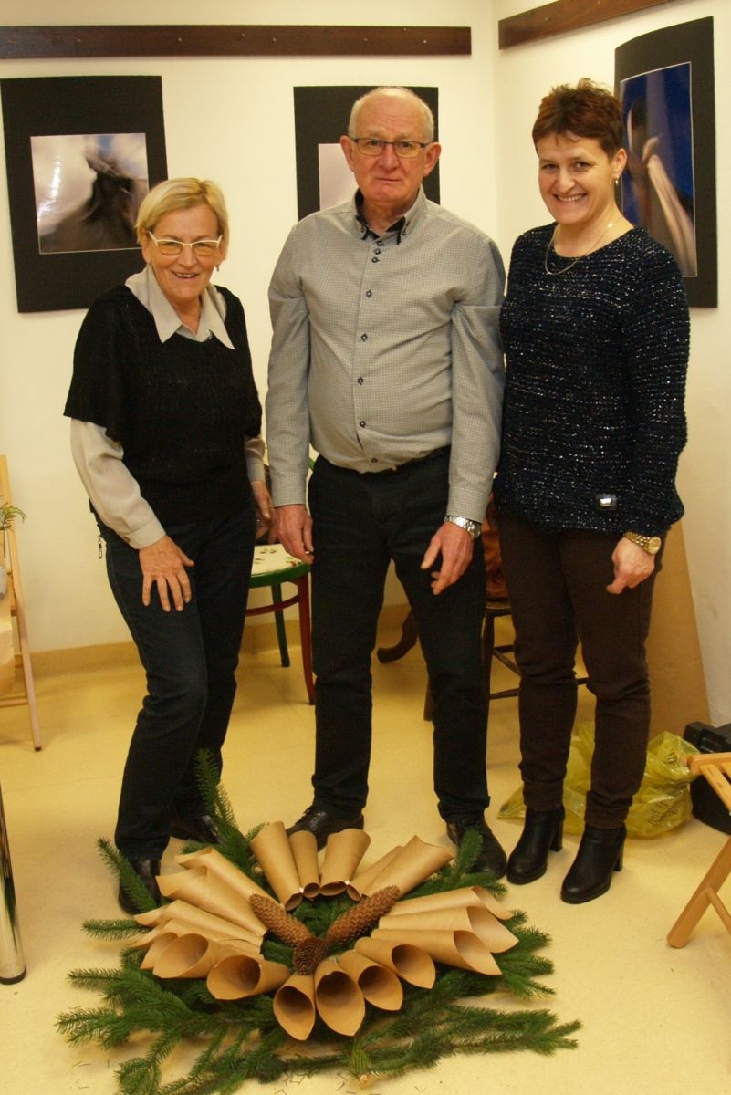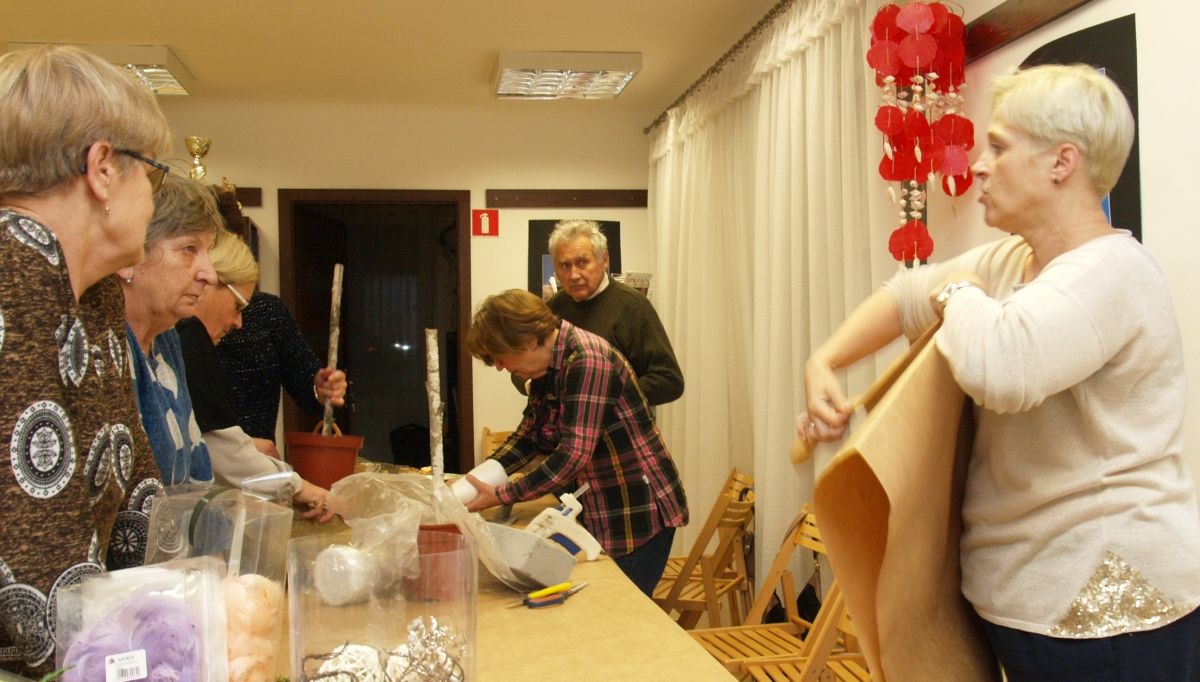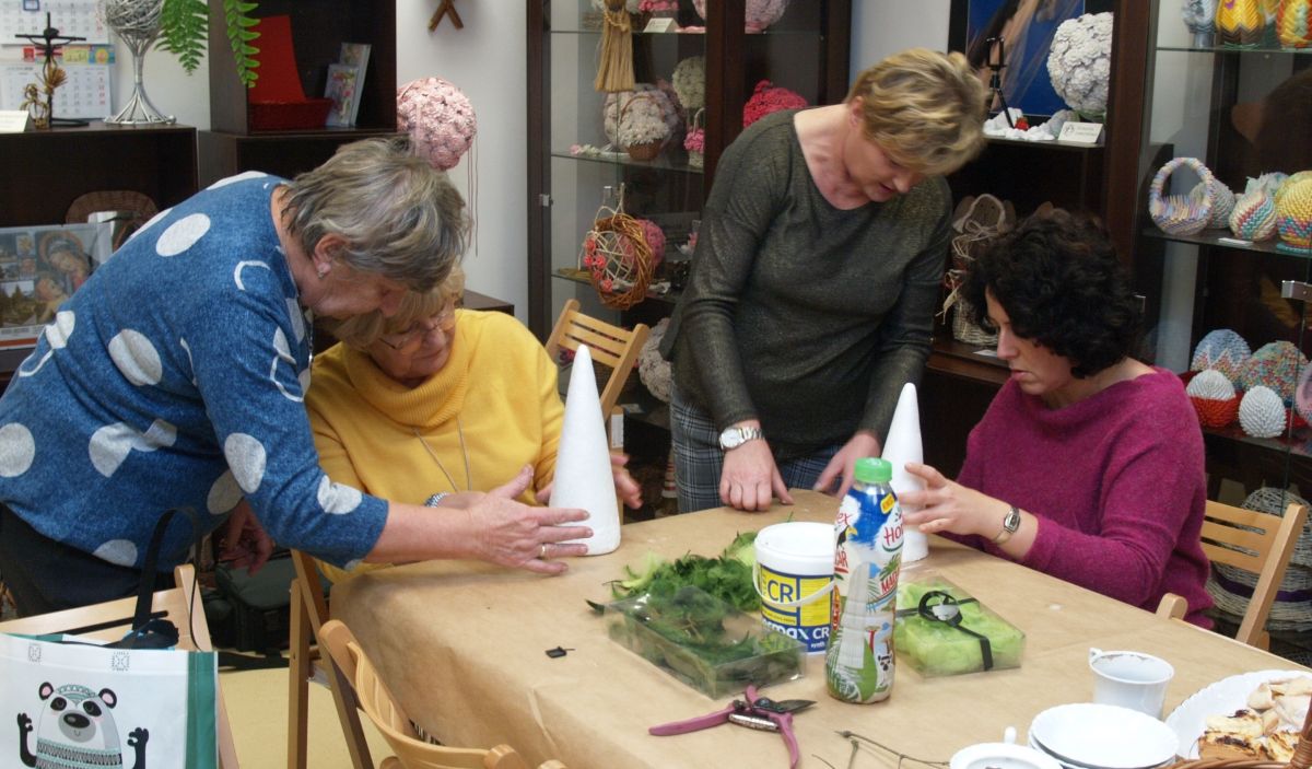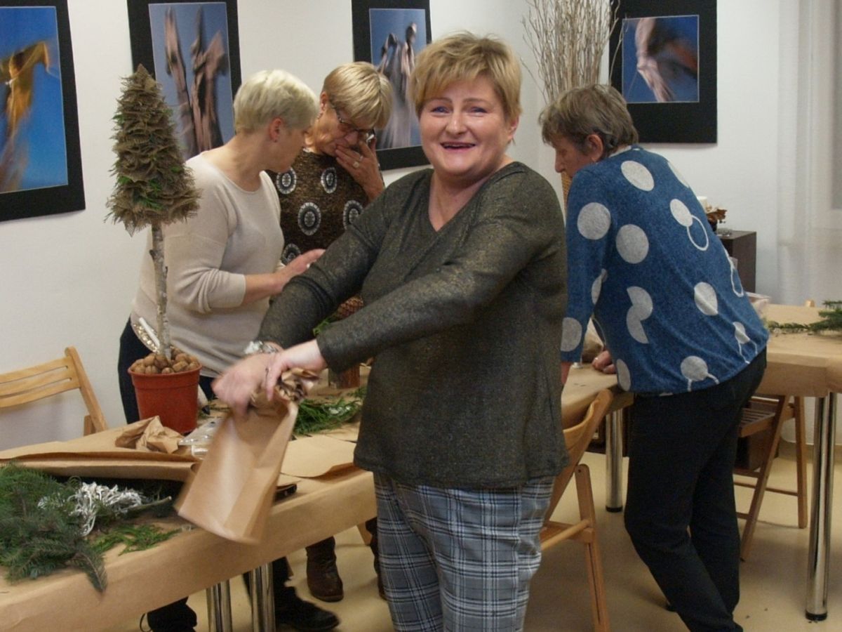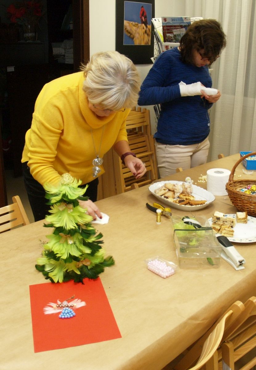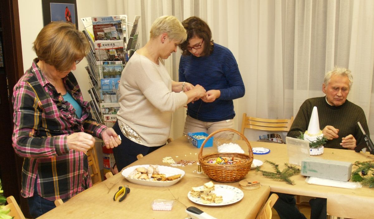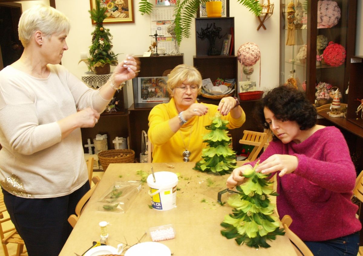 Od pięciu lat, co roku w każdy pierwszy wtorek grudnia, Towarzystwo Przyjaciół Gołębia jest organizatorem warsztatów dekoracji świątecznych w Izbie Produktu Lokalnego. Tak było i tym razem. Dnia 3 grudnia członkowie Towarzystwa wykonywali ozdoby choinkowe, stroiki na stół, wianki adwentowe i inne „cudeńka”. Zajęcia poprowadziły utalentowane plastycznie: Agnieszka Capała i Dorota Skibińska. One też przygotowały dla wszystkich niezbędne materiały potrzebne do pracy twórczej. Ochota, podekscytowanie i zaangażowanie w tworzeniu tych „dzieł” skromnych, acz cieszących oko, przeplatały się z żywicznym zapachem gałązek i wesołym śmiechem uczestników warsztatów.