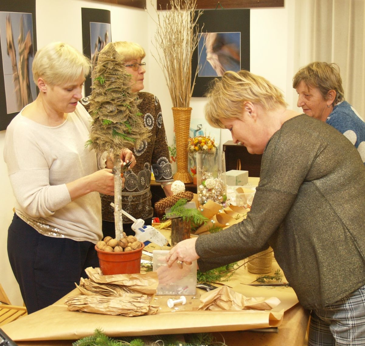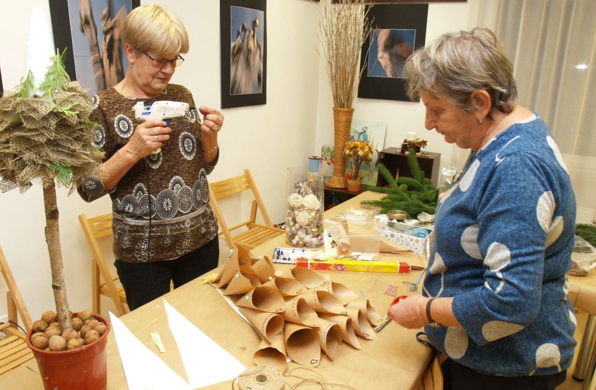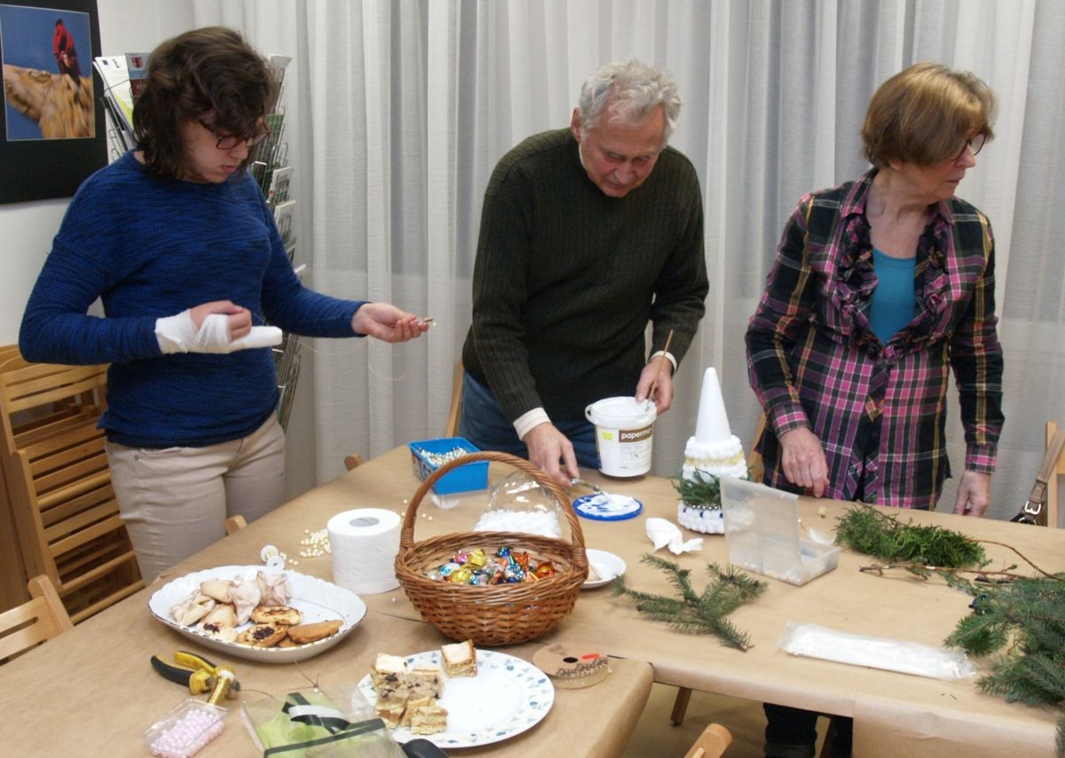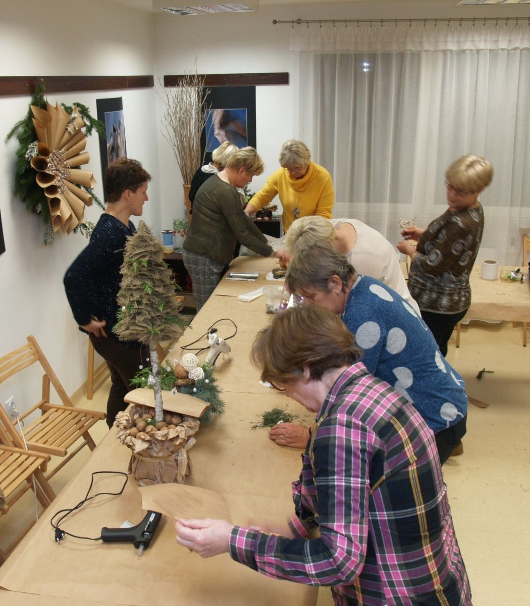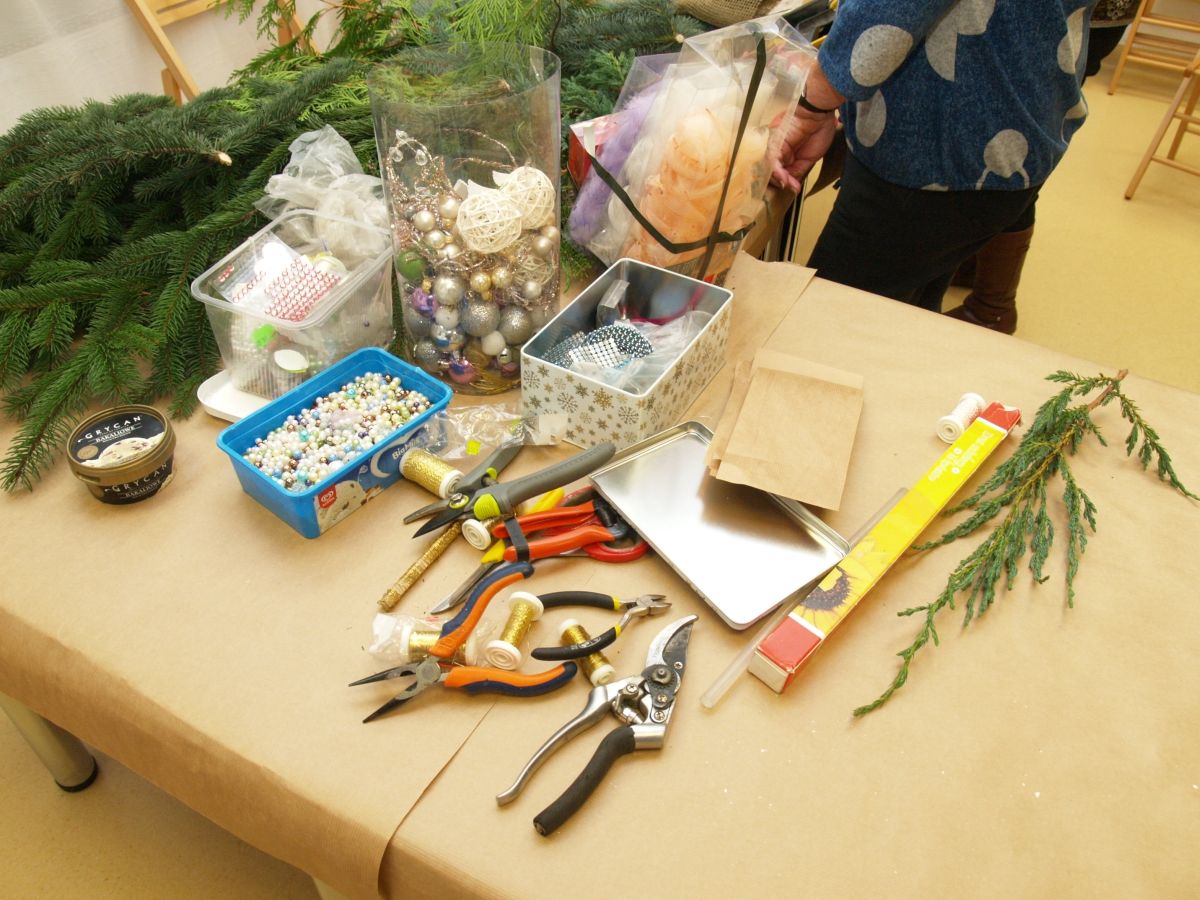 Od pięciu lat, co roku w każdy pierwszy wtorek grudnia, Towarzystwo Przyjaciół Gołębia jest organizatorem warsztatów dekoracji świątecznych w Izbie Produktu Lokalnego. Tak było i tym razem. Dnia 3 grudnia członkowie Towarzystwa wykonywali ozdoby choinkowe, stroiki na stół, wianki adwentowe i inne „cudeńka”. Zajęcia poprowadziły utalentowane plastycznie: Agnieszka Capała i Dorota Skibińska. One też przygotowały dla wszystkich niezbędne materiały potrzebne do pracy twórczej. Ochota, podekscytowanie i zaangażowanie w tworzeniu tych „dzieł” skromnych, acz cieszących oko, przeplatały się z żywicznym zapachem gałązek i wesołym śmiechem uczestników warsztatów.