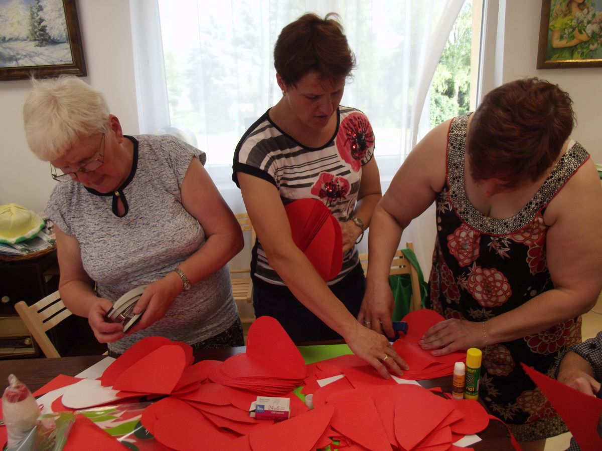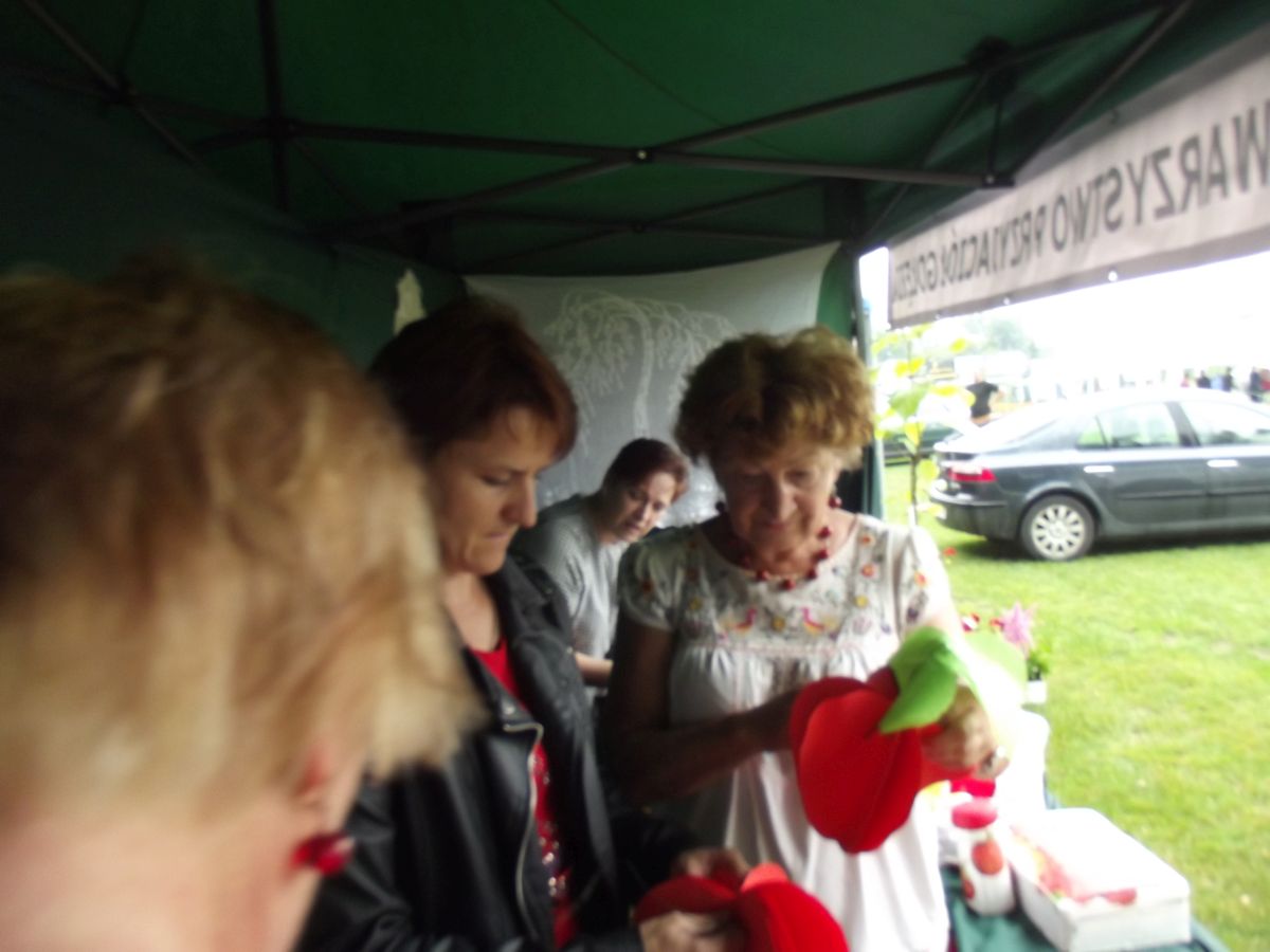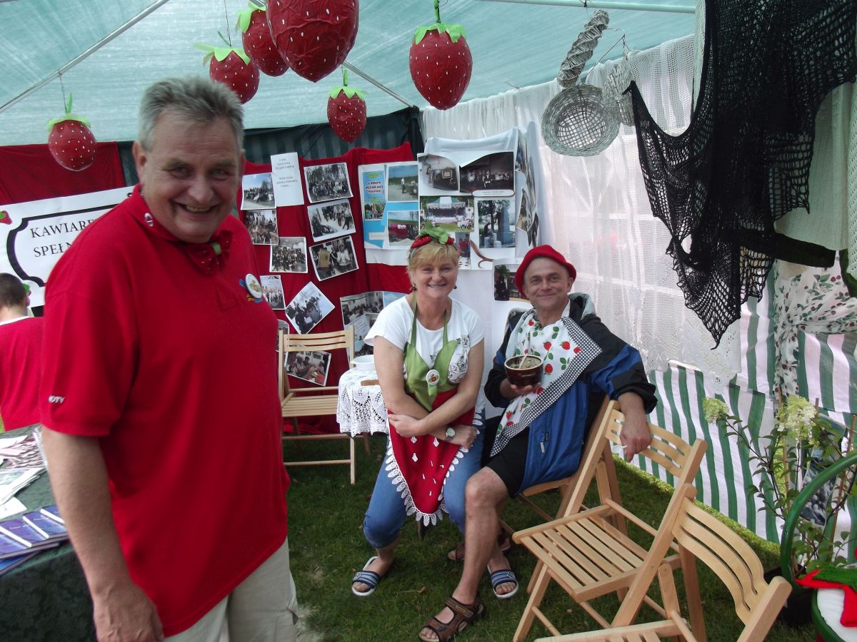 Robiliśmy truskawki z papieru, gromadziliśmy materiały na stoisko. Osoby zgłaszały się do robienia wypieków z truskawkami. Jak zwykle był swojski chleb oraz wypieki z piekarni "Nad Gruszką" państwa Haliny i Roberta Rułków. Były pyszne rogaliki, ciasto francuskie i babeczki, oczywiście wszystkie z truskawkami. Były pyszne racuchy z musem truskawkowym i dżemem truskawkowym, były galaretki, sernik i mus truskawkowy, oczywiście nie mogło zabraknąć nalewki truskawkowej. Był chleb ze smalcem, a tak naprawdę z mięsem i ogórkami kiszonymi. Amatorów na chlebek nie brakowało, przychodzili po kilka razy. Tak im smakował.