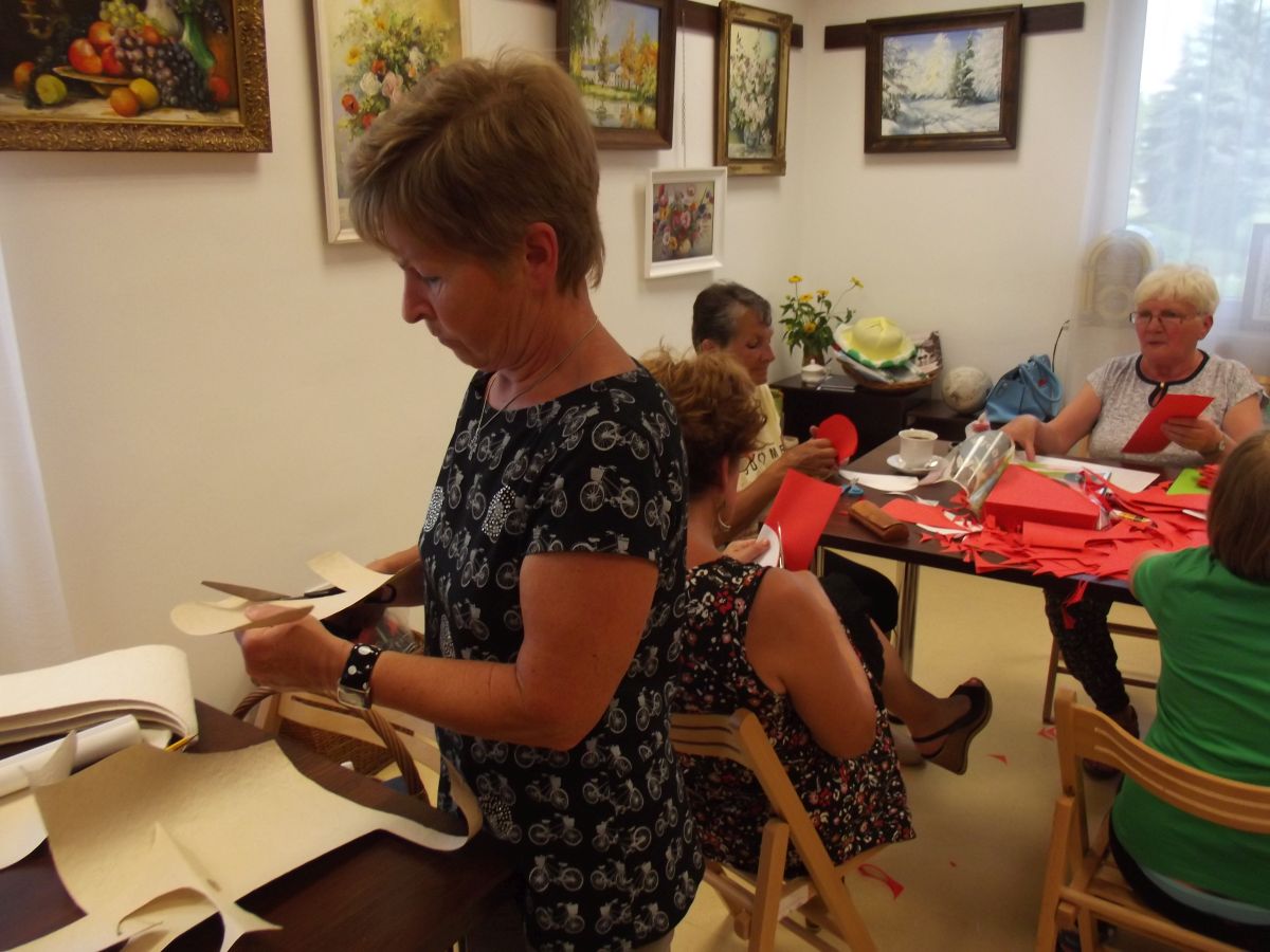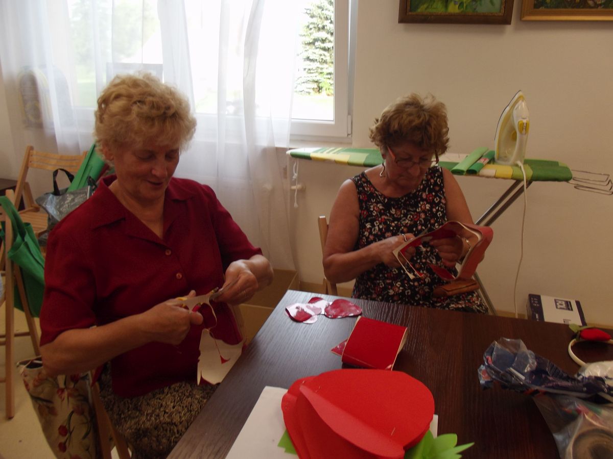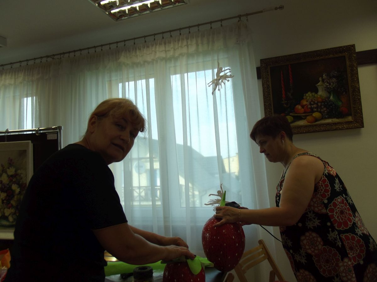 Robiliśmy truskawki z papieru, gromadziliśmy materiały na stoisko. Osoby zgłaszały się do robienia wypieków z truskawkami. Jak zwykle był swojski chleb oraz wypieki z piekarni "Nad Gruszką" państwa Haliny i Roberta Rułków. Były pyszne rogaliki, ciasto francuskie i babeczki, oczywiście wszystkie z truskawkami. Były pyszne racuchy z musem truskawkowym i dżemem truskawkowym, były galaretki, sernik i mus truskawkowy, oczywiście nie mogło zabraknąć nalewki truskawkowej. Był chleb ze smalcem, a tak naprawdę z mięsem i ogórkami kiszonymi. Amatorów na chlebek nie brakowało, przychodzili po kilka razy. Tak im smakował.
