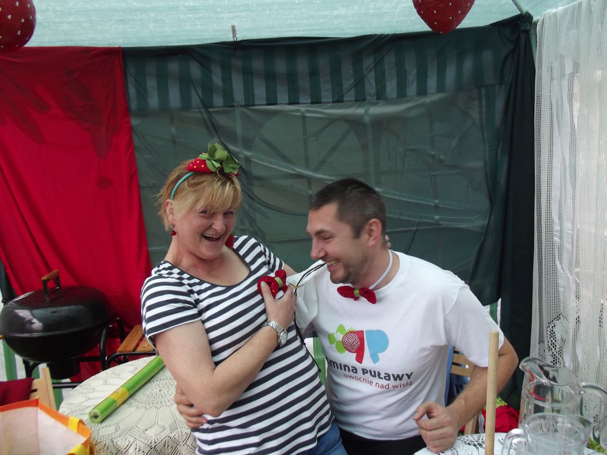 Należy także koniecznie wymienić, wyróżnić Agnieszkę Capałę za wspaniałe muchy truskawkowe dla panów, natomiast dla pań opaski z truskawkami i fartuszki szyte na tę okazję. Mamy nadzieje, że widać stroje na zdjęciach.