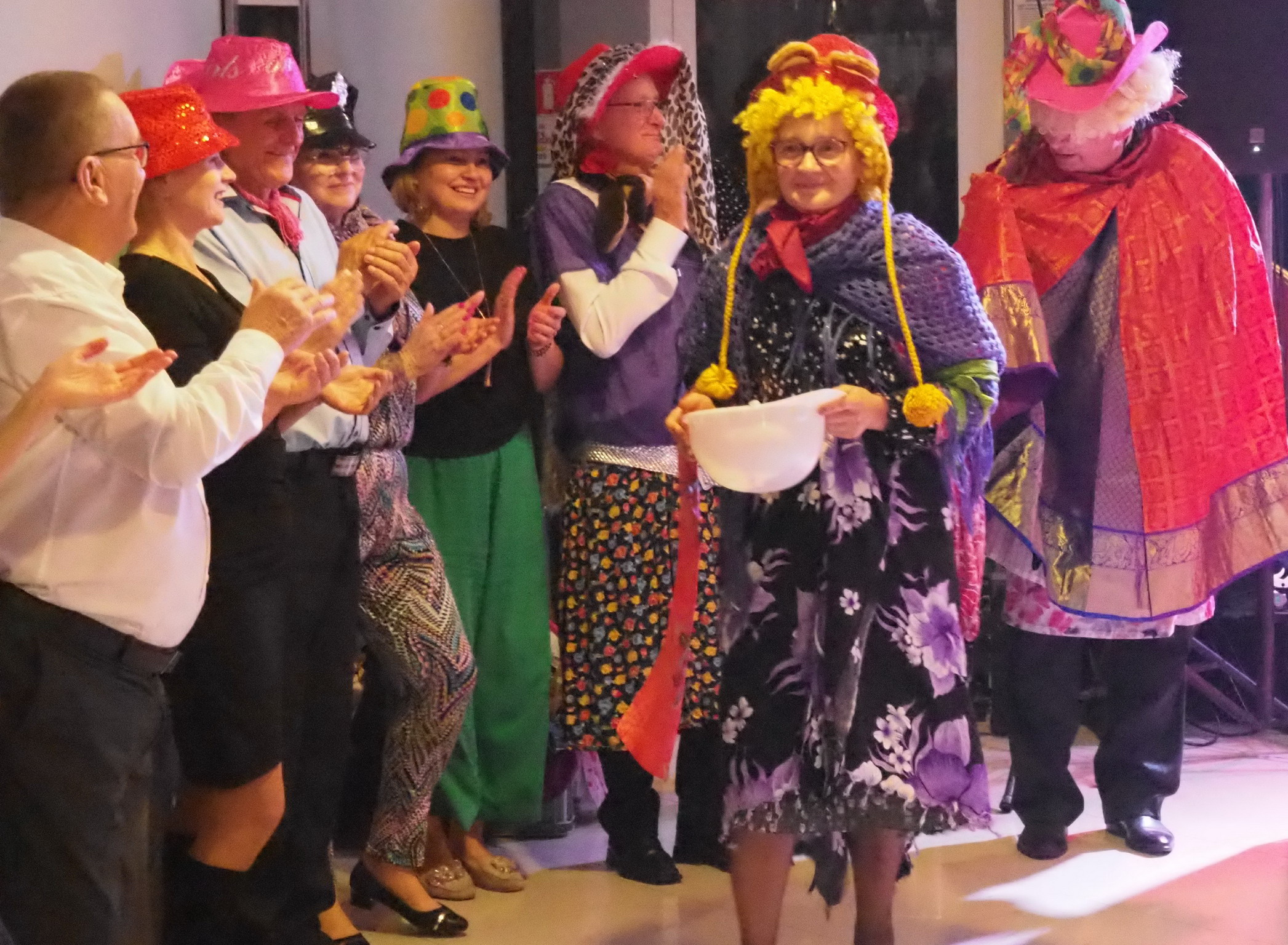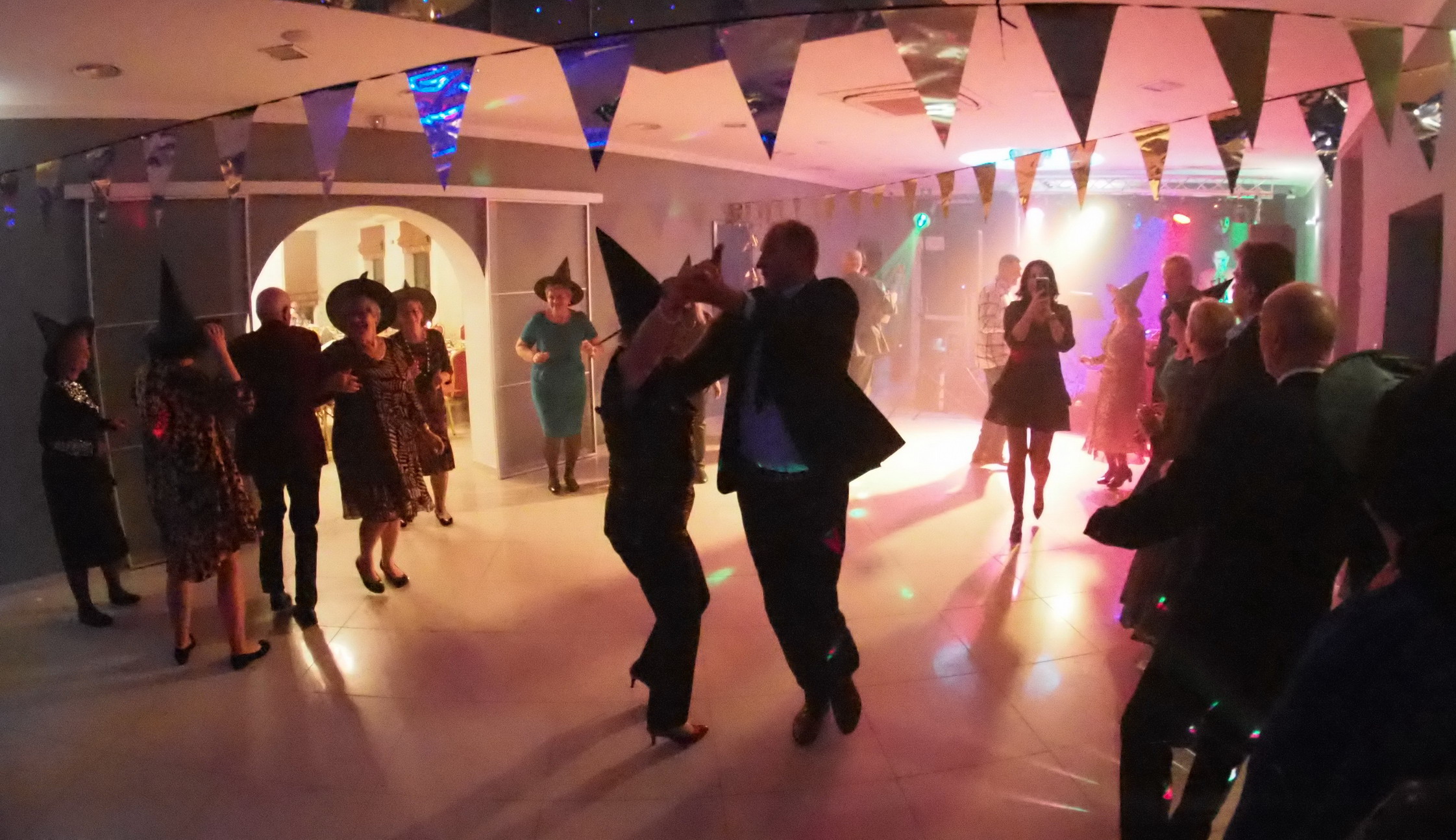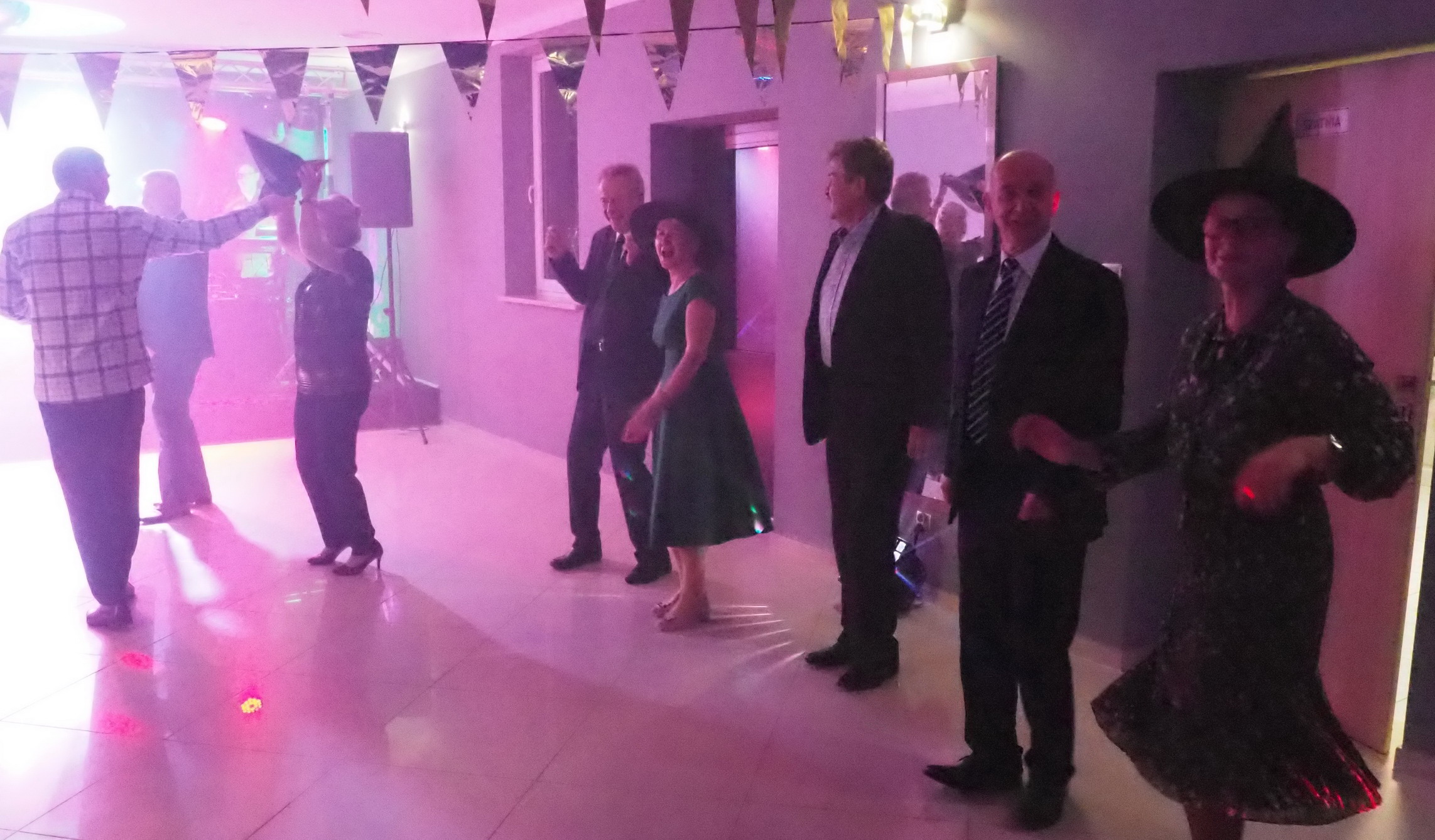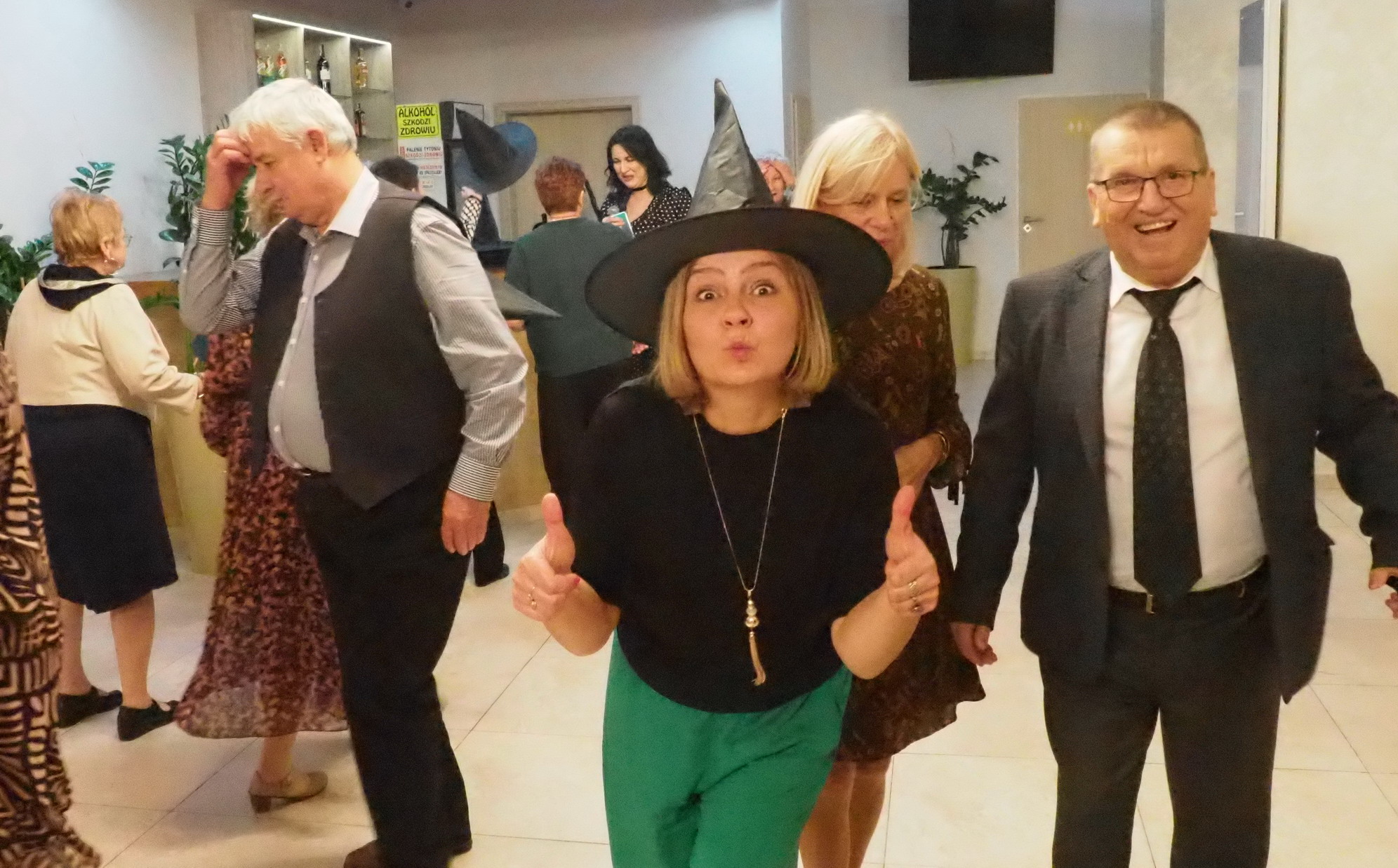 Humory dopisywały więc wszyscy wkrótce ochoczo ruszyli do tańca przy dźwiękach utworów granych przez zespół „Czekolada”. Dzielnie pląsaliśmy w szybkich i wolnych tańcach ale największą furorę zrobiła „Belgijka” w którą zaangażowali się prawie wszyscy obecni. Były też konkursy. W jednym z nich 5 trzyosobowych zespołów musiało w ciągu 1 minuty wystylizować swoich przedstawicieli, korzystając z przypadkowych rekwizytów przygotowanych przez zespół „Czekolada”. Publiczność gorąco dopingowała swoich faworytów, by ostatecznie brawami zdecydować kto wyglądał najbardziej oryginalnie i komicznie zarazem. Zabawa była przednia!
