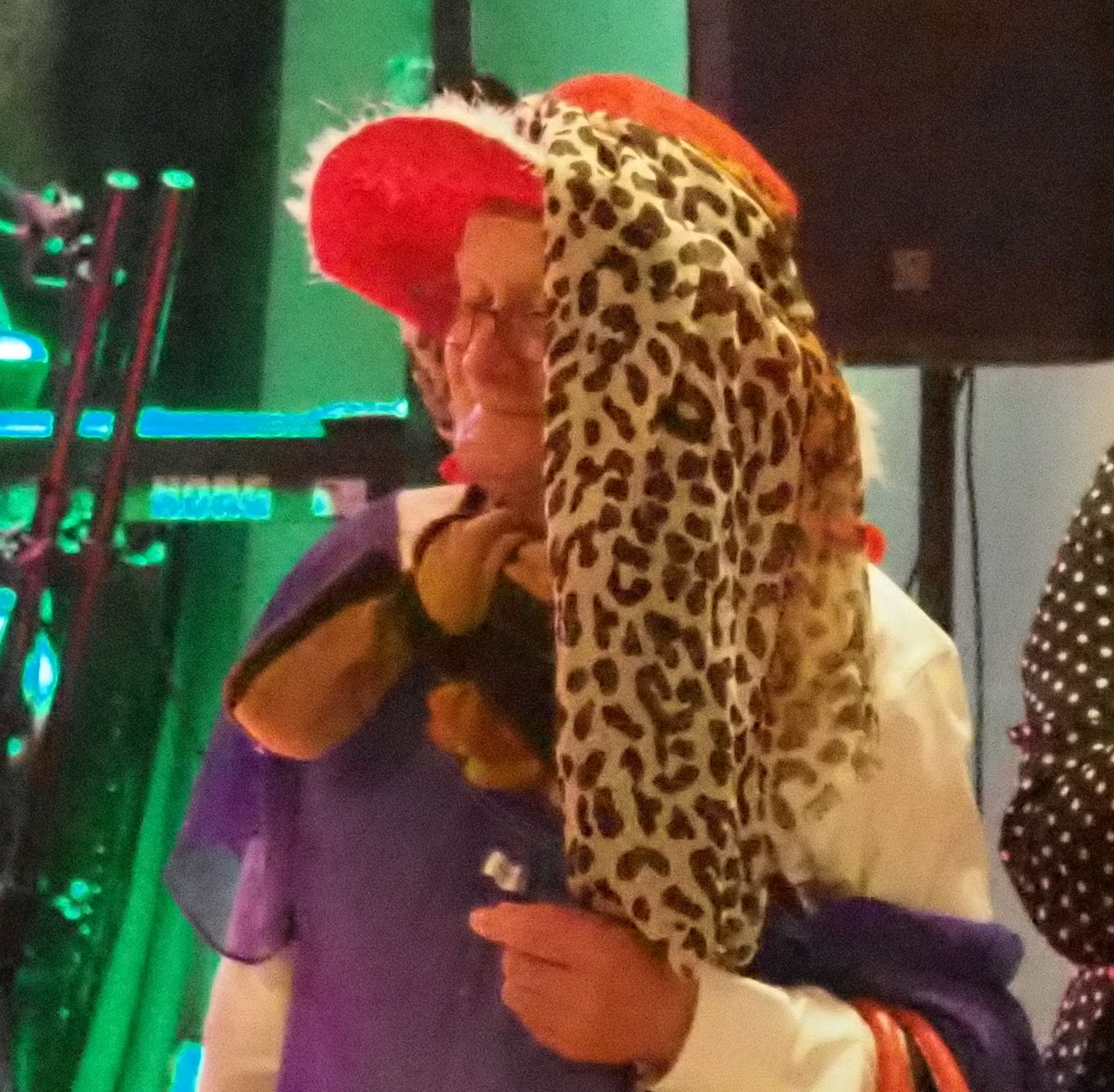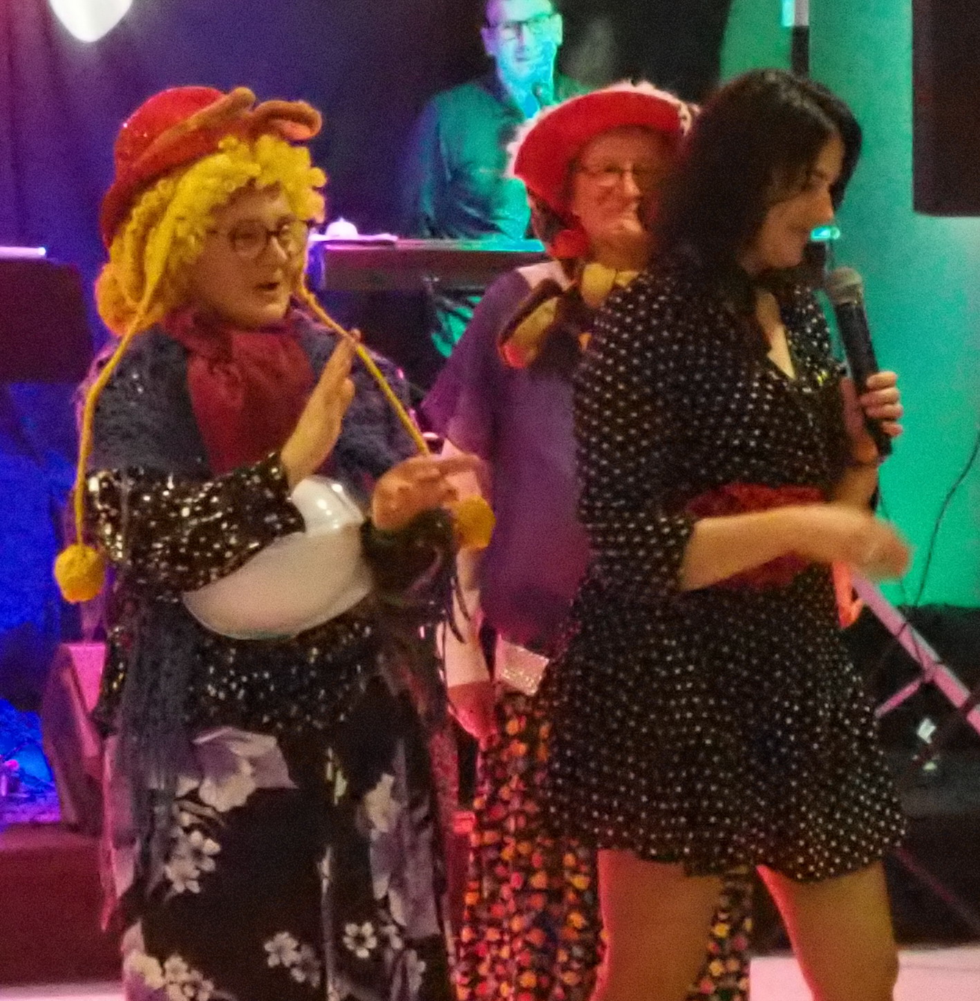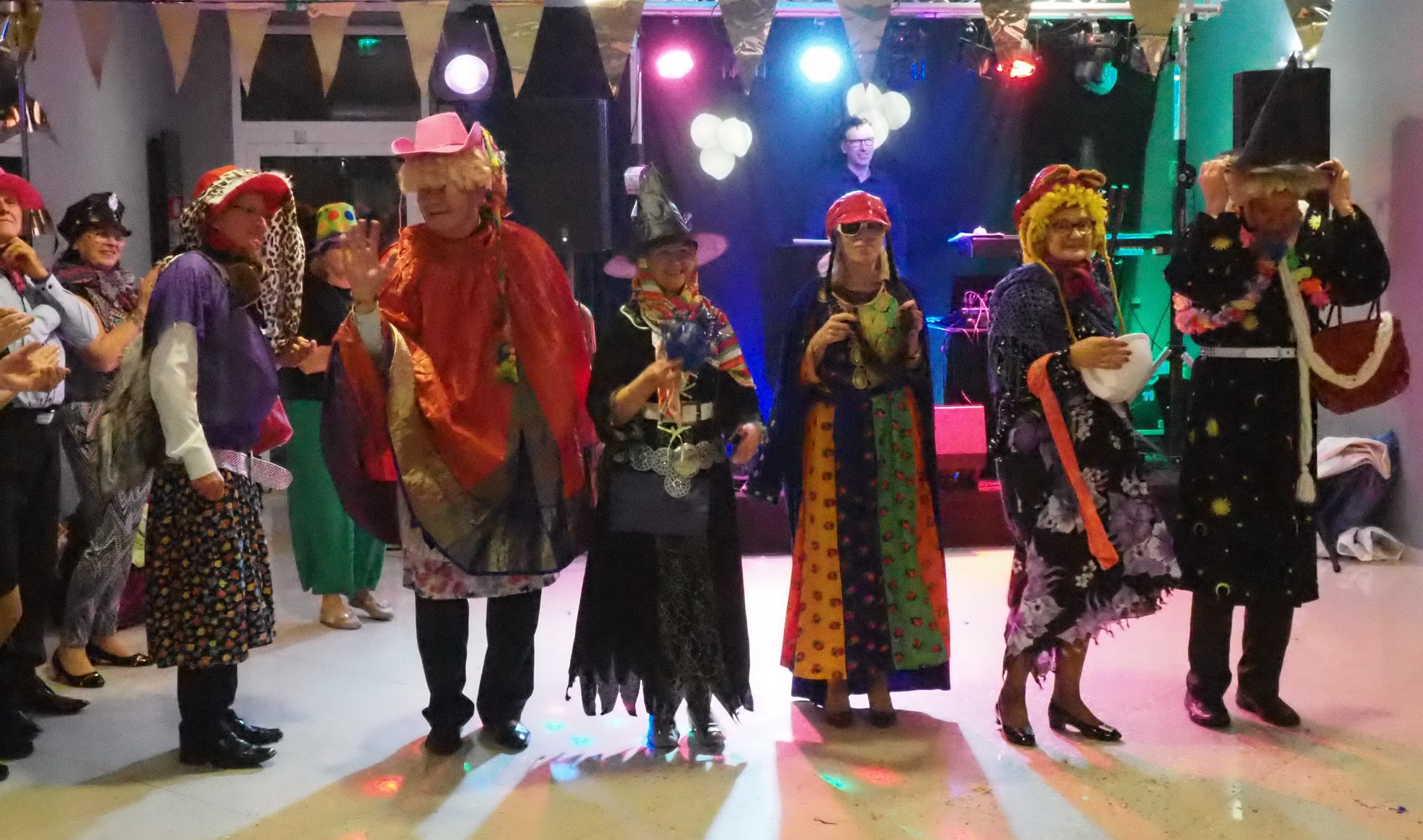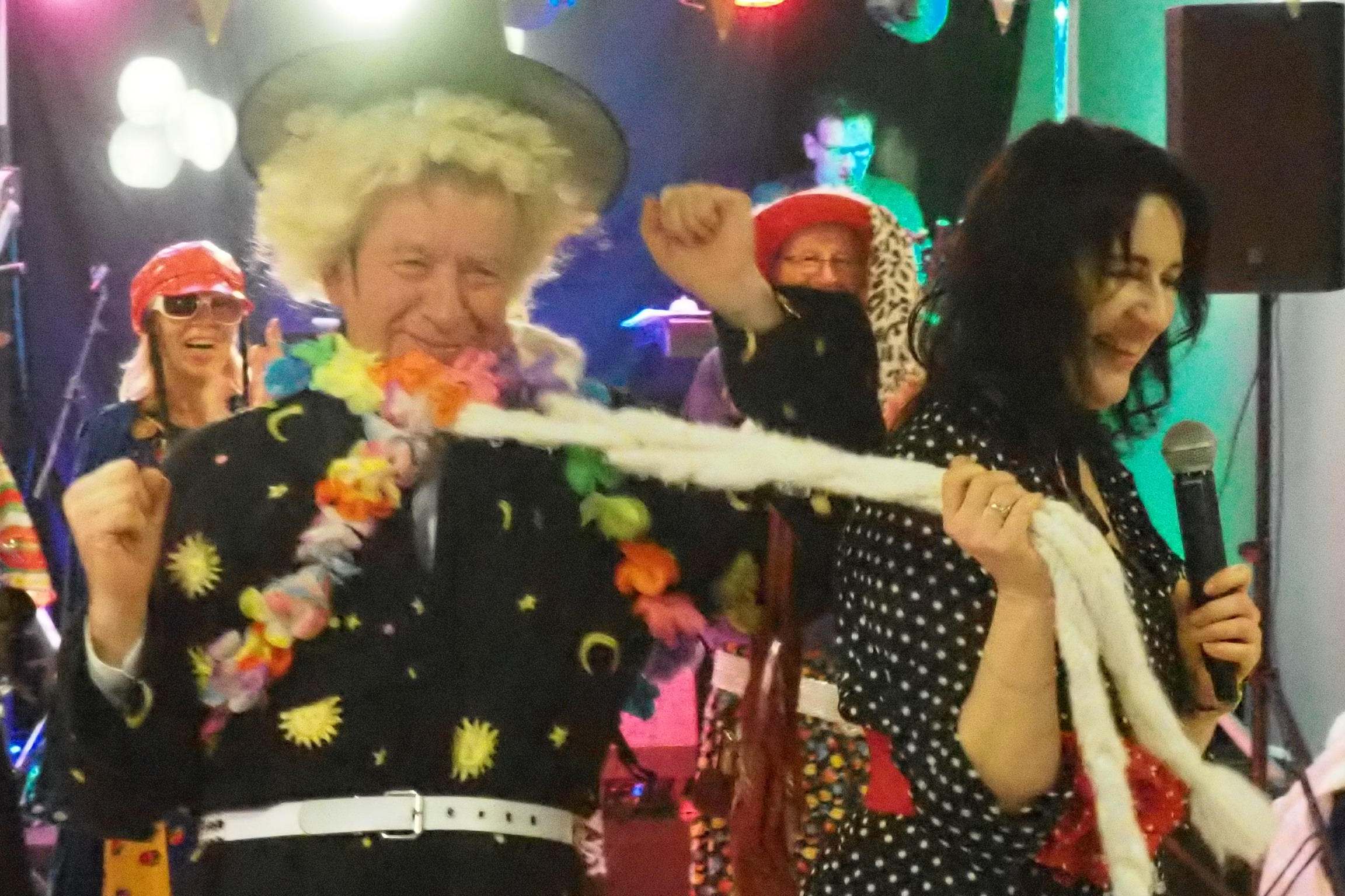 Humory dopisywały więc wszyscy wkrótce ochoczo ruszyli do tańca przy dźwiękach utworów granych przez zespół „Czekolada”. Dzielnie pląsaliśmy w szybkich i wolnych tańcach ale największą furorę zrobiła „Belgijka” w którą zaangażowali się prawie wszyscy obecni. Były też konkursy. W jednym z nich 5 trzyosobowych zespołów musiało w ciągu 1 minuty wystylizować swoich przedstawicieli, korzystając z przypadkowych rekwizytów przygotowanych przez zespół „Czekolada”. Publiczność gorąco dopingowała swoich faworytów, by ostatecznie brawami zdecydować kto wyglądał najbardziej oryginalnie i komicznie zarazem. Zabawa była przednia!