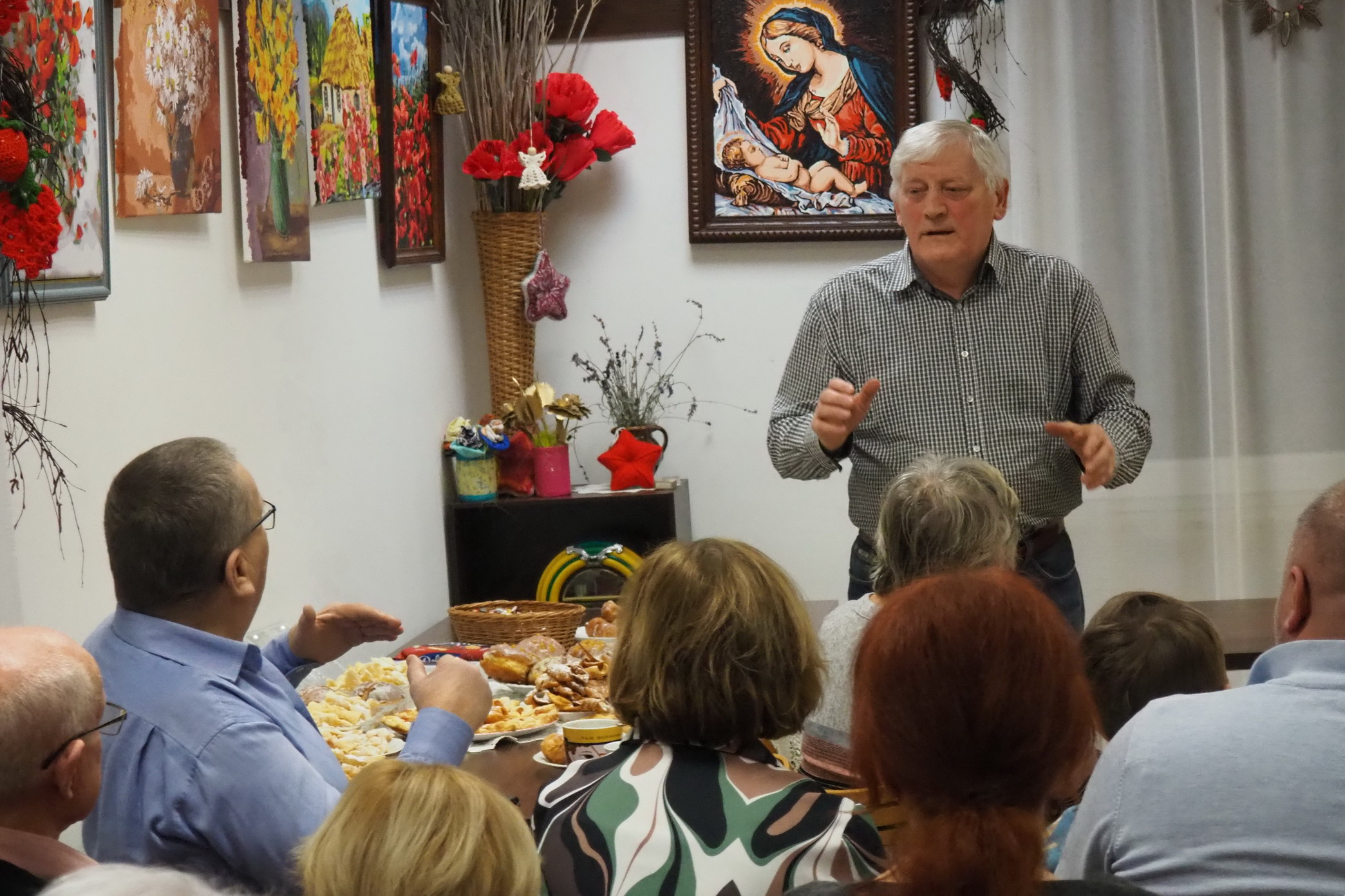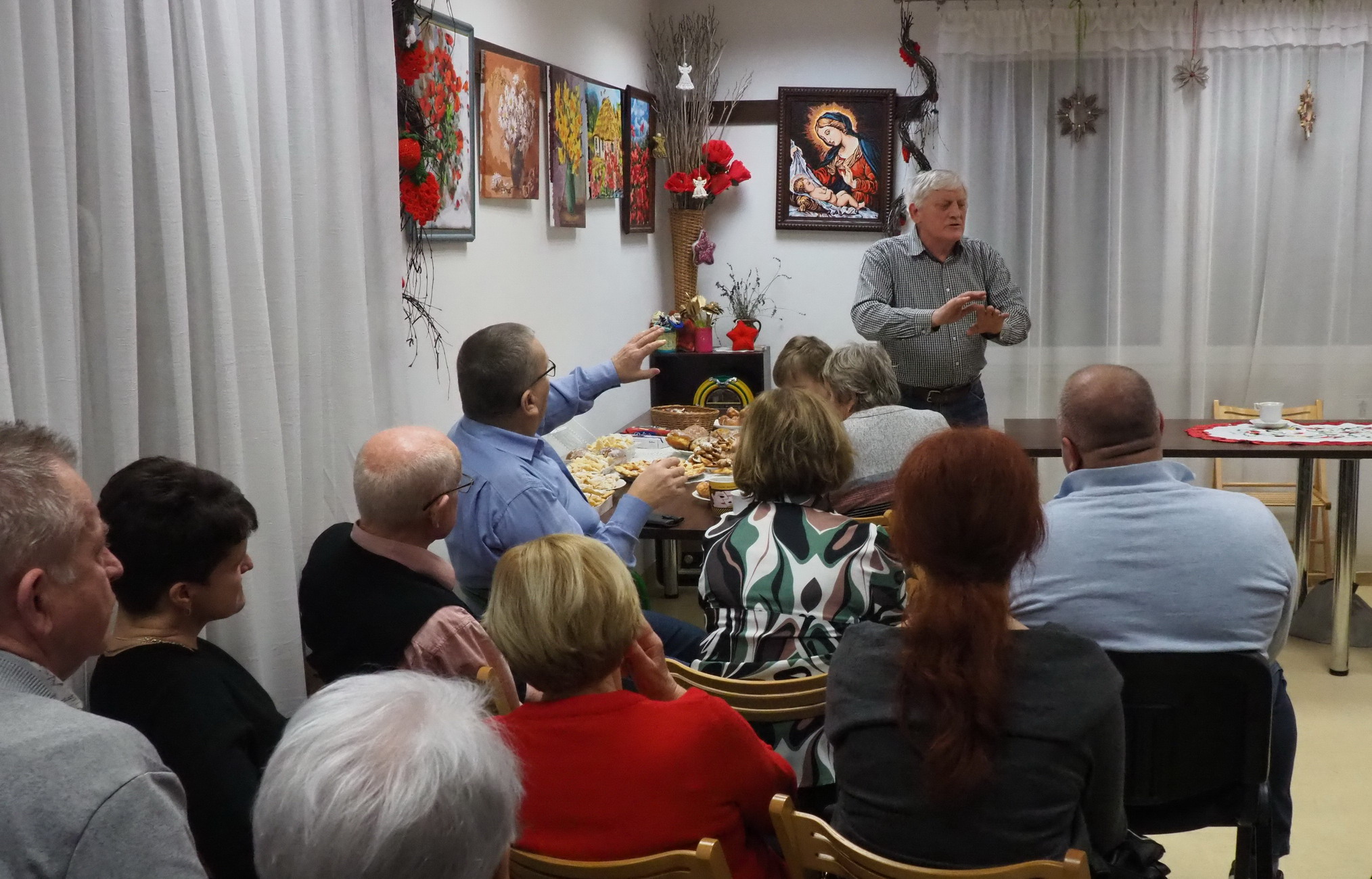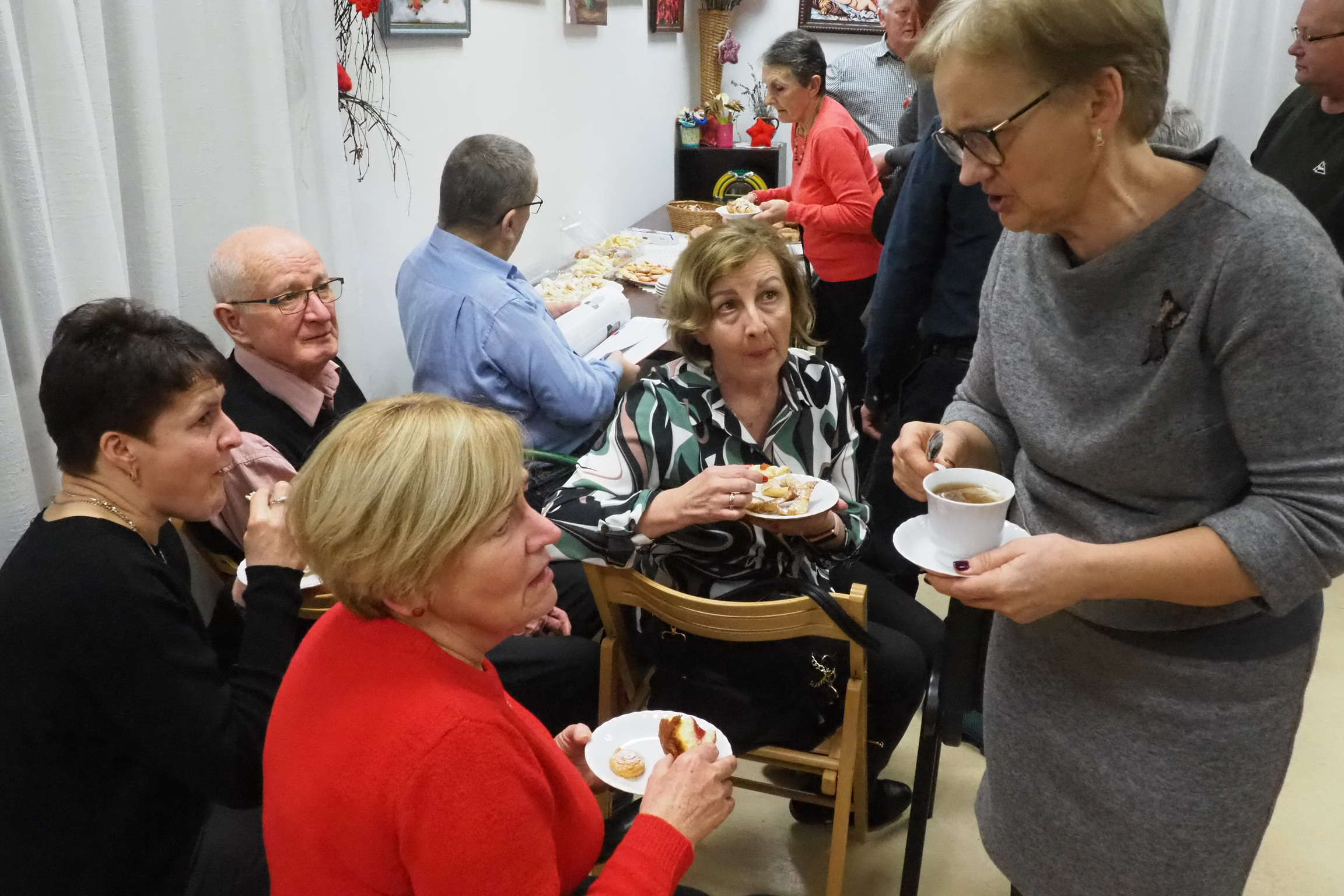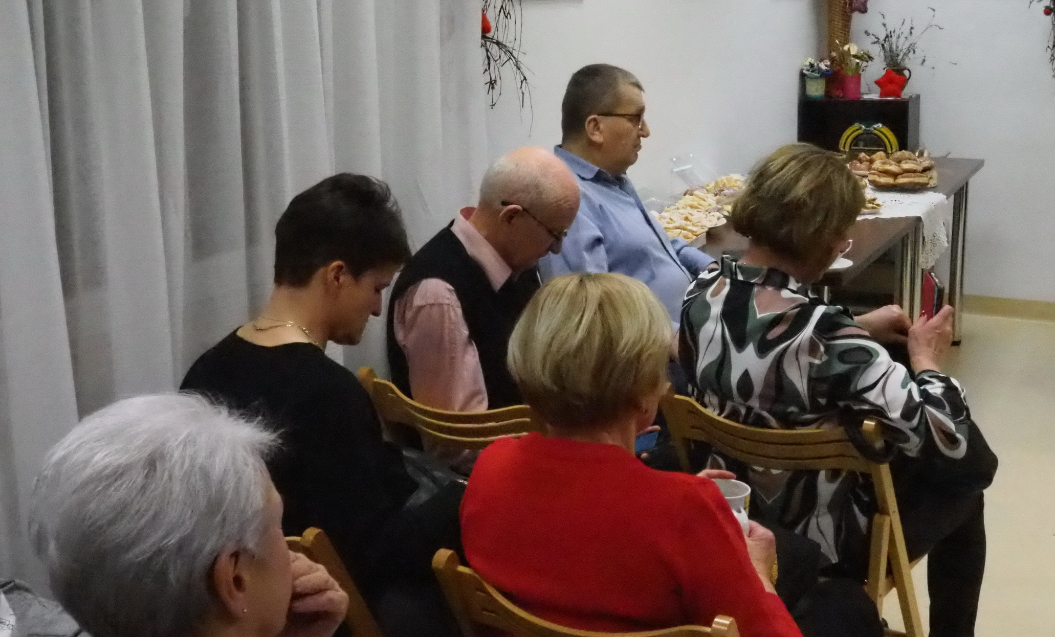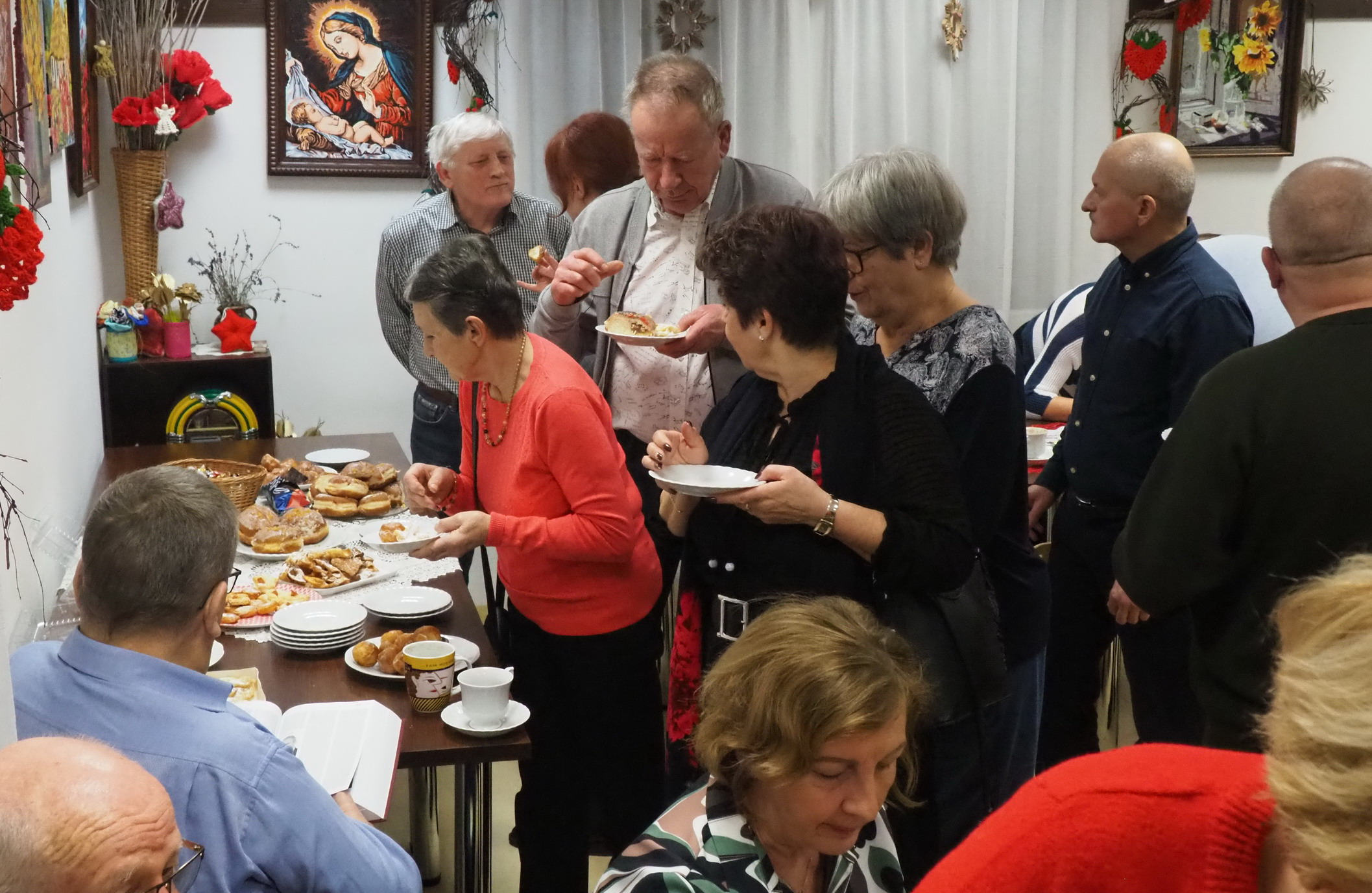 Aktualnie nie ma już tych zwyczajów. Teraz na stołach i u właśnie nas królowały pączki, faworki, inne ciasta i cukierki. Oczywiście był kawa, herbata. Rozmowom i śpiewom nie było końca. Jak zwykle grał Pan Jerzy Jabłonka. Było bardzo słodko, miło i przyjemnie.