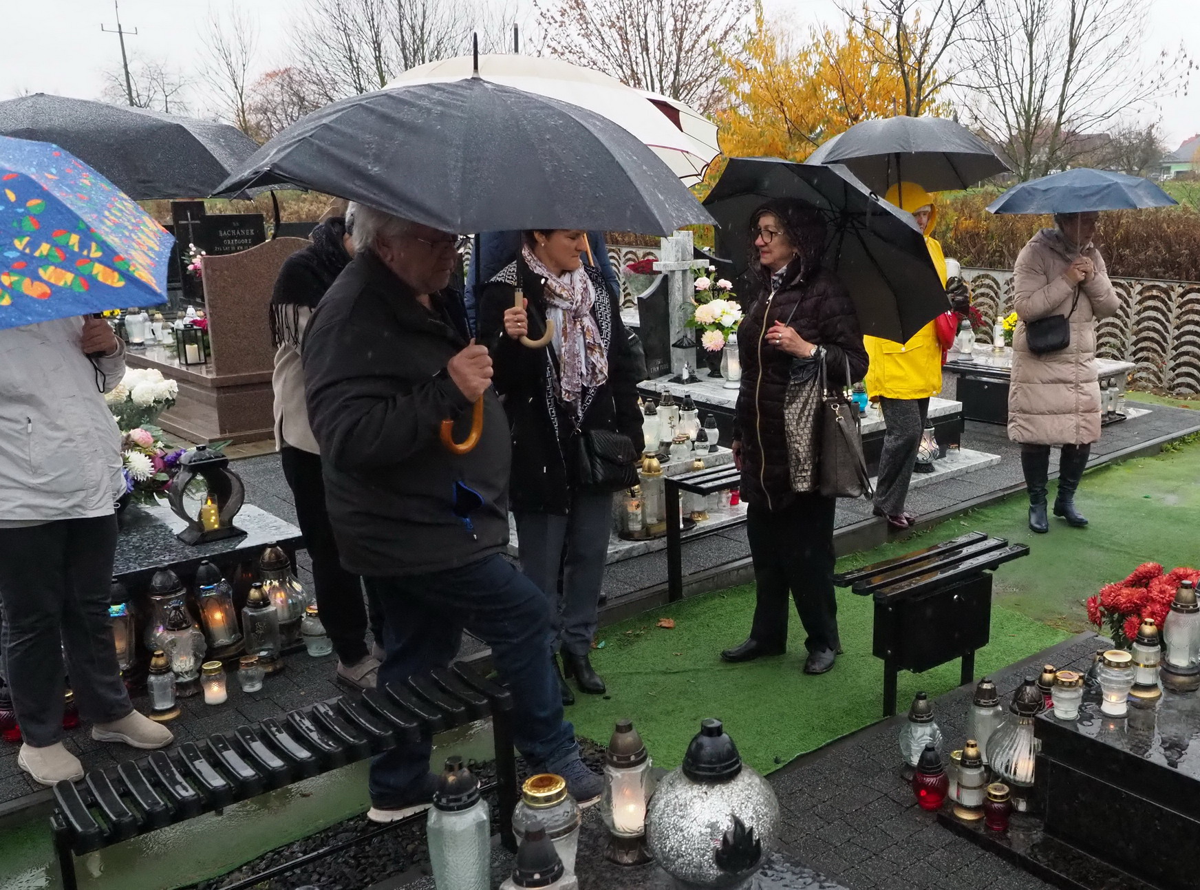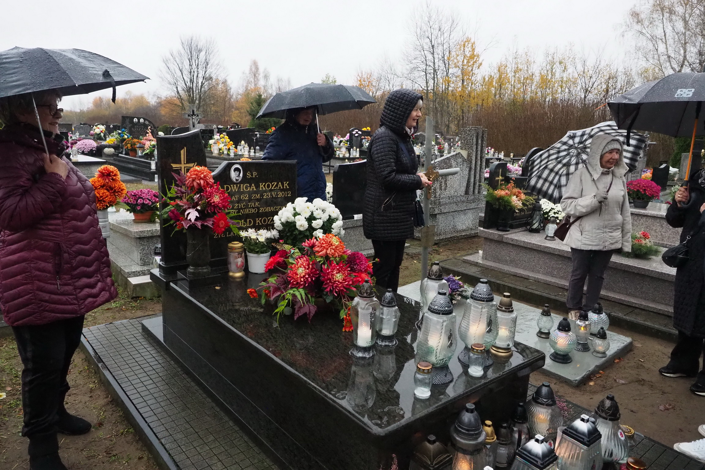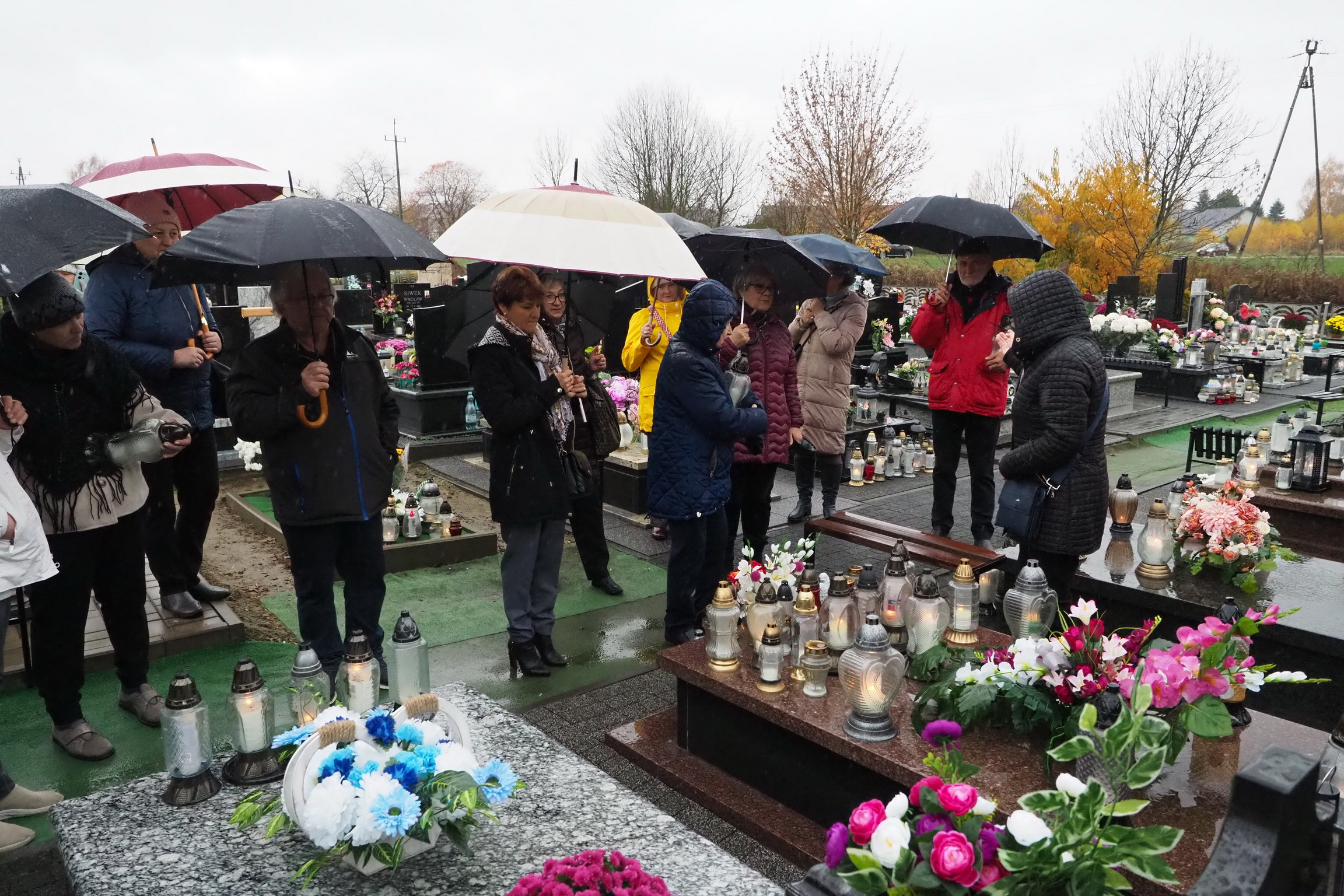 Tym razem 3 listopada 2024 r. (poniedziałek) w strugach deszczu, odwiedzaliśmy groby naszych przyjaciół z Towarzystwa Przyjaciół Gołębia, których już nie ma. To nasza tradycja, dzień wspomnień. Zapalamy znicze, które są wyrazem pamięci, zadumy i rozmyślaniami o przemijaniu i o tym, że kiedyś się spotkamy. Zatrzymujemy się przy każdym grobie i wspominamy, nasz wspólnie spędzony czas. Wciąż o Was pamiętamy.