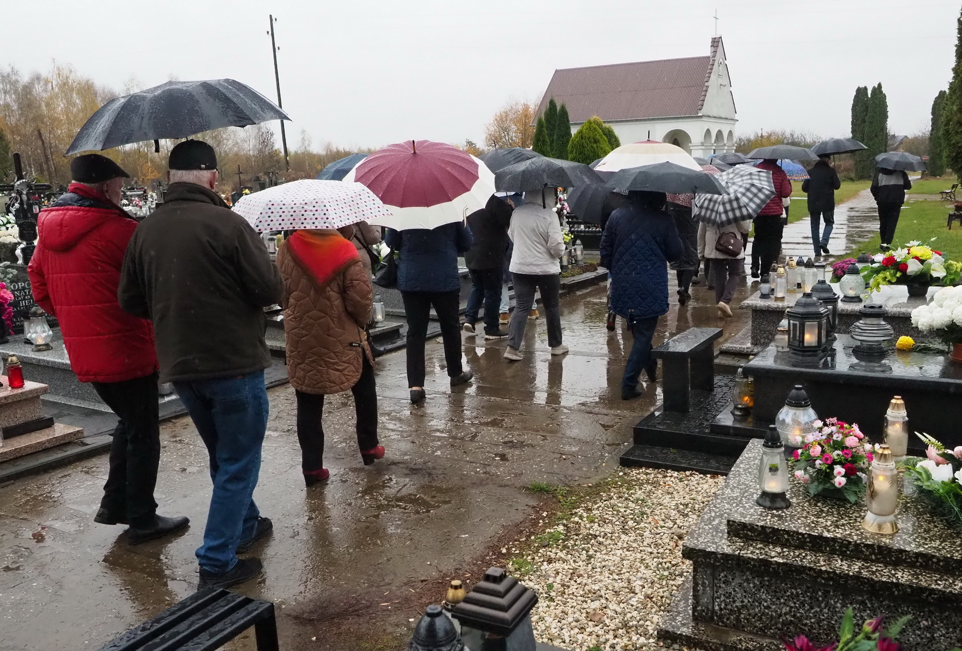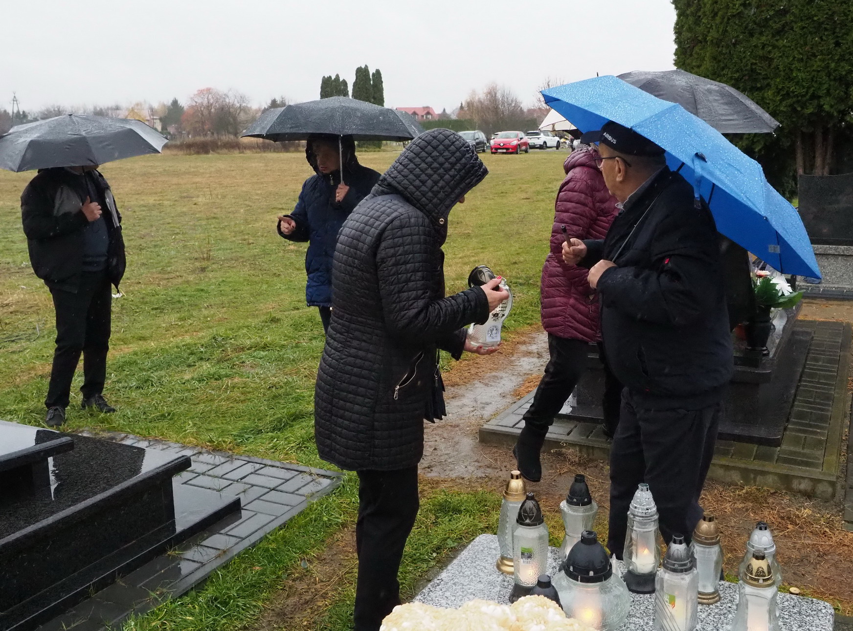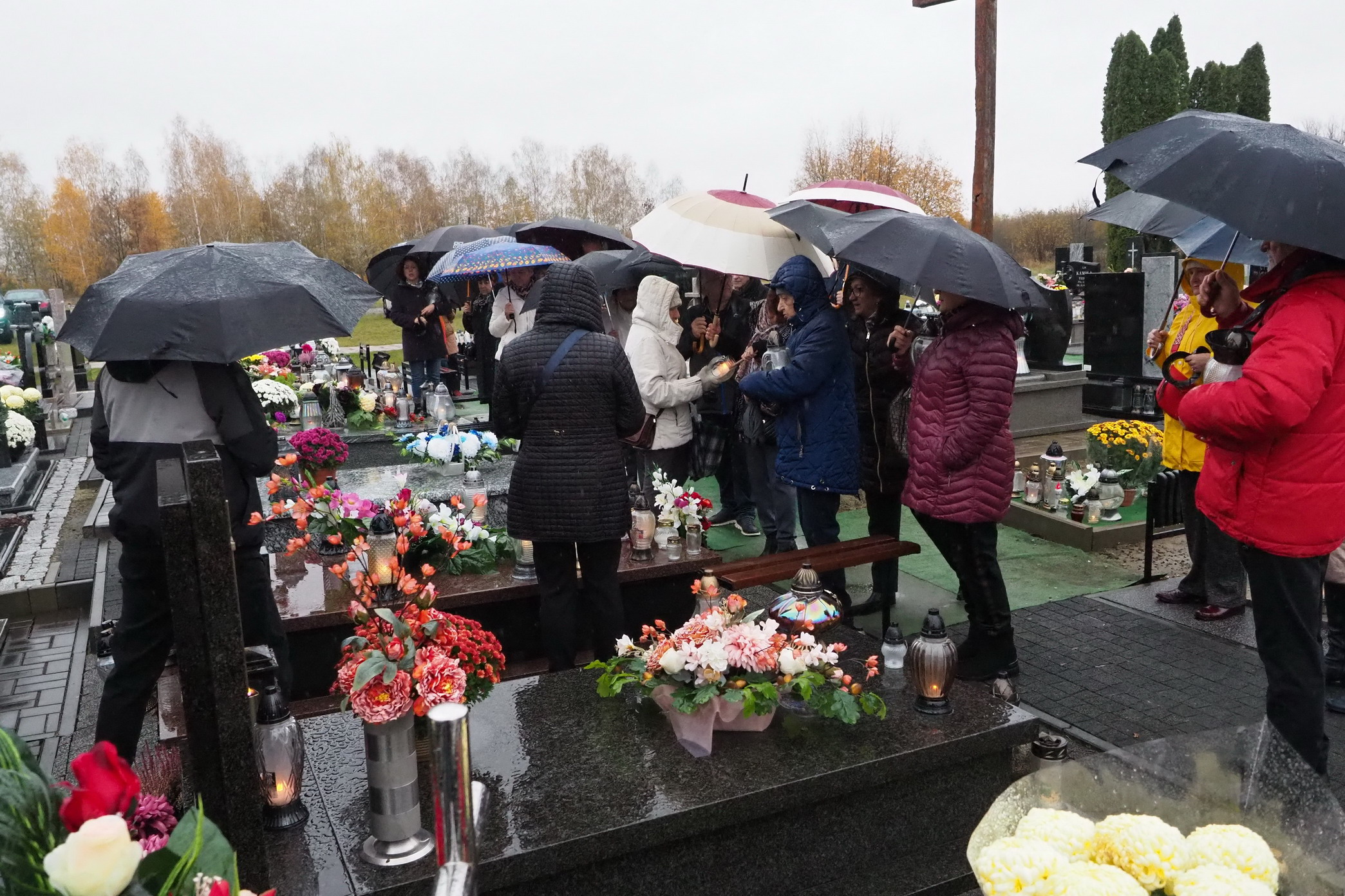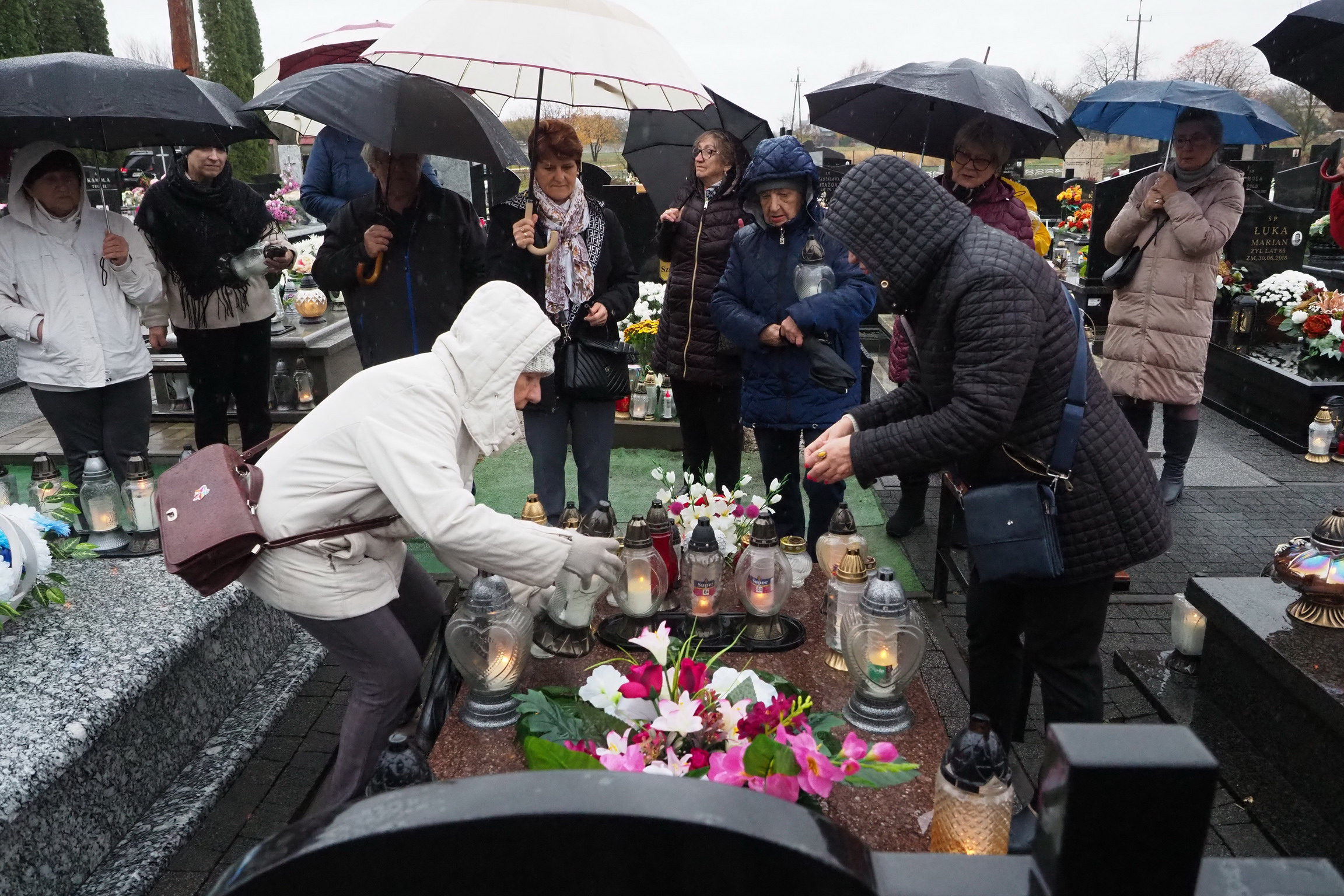 Tym razem 3 listopada 2024 r. (poniedziałek) w strugach deszczu, odwiedzaliśmy groby naszych przyjaciół z Towarzystwa Przyjaciół Gołębia, których już nie ma. To nasza tradycja, dzień wspomnień. Zapalamy znicze, które są wyrazem pamięci, zadumy i rozmyślaniami o przemijaniu i o tym, że kiedyś się spotkamy. Zatrzymujemy się przy każdym grobie i wspominamy, nasz wspólnie spędzony czas. Wciąż o Was pamiętamy.