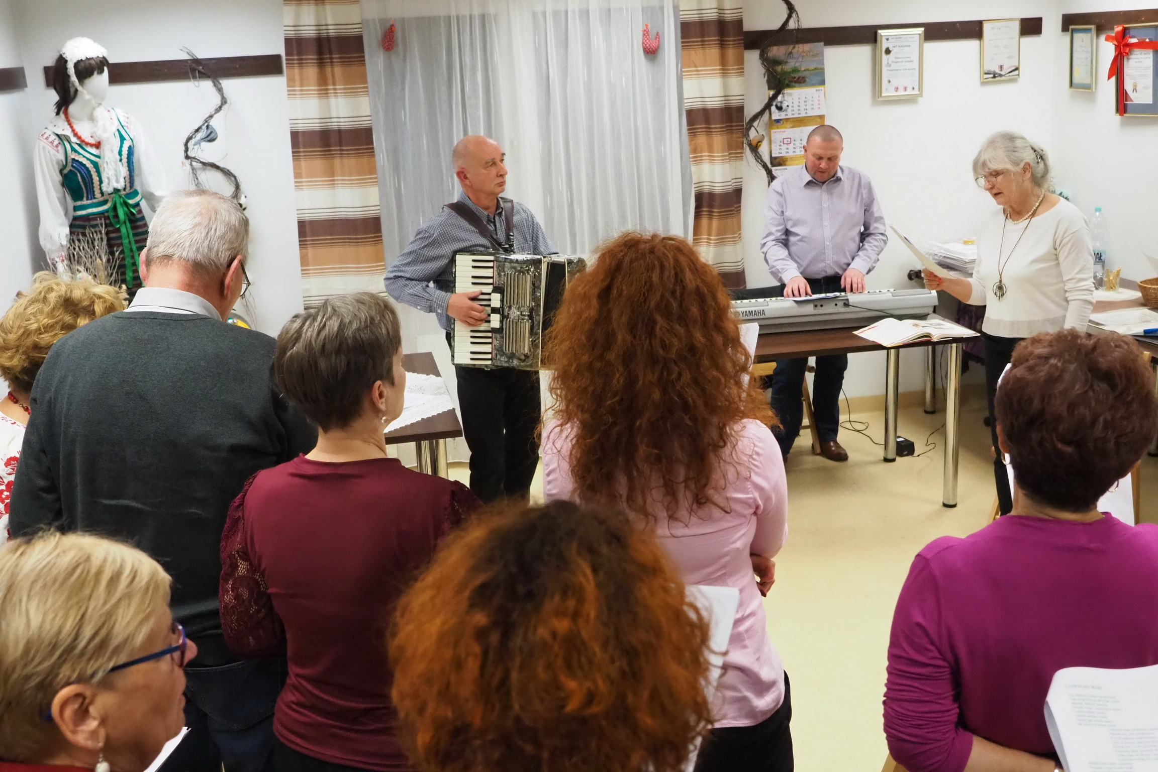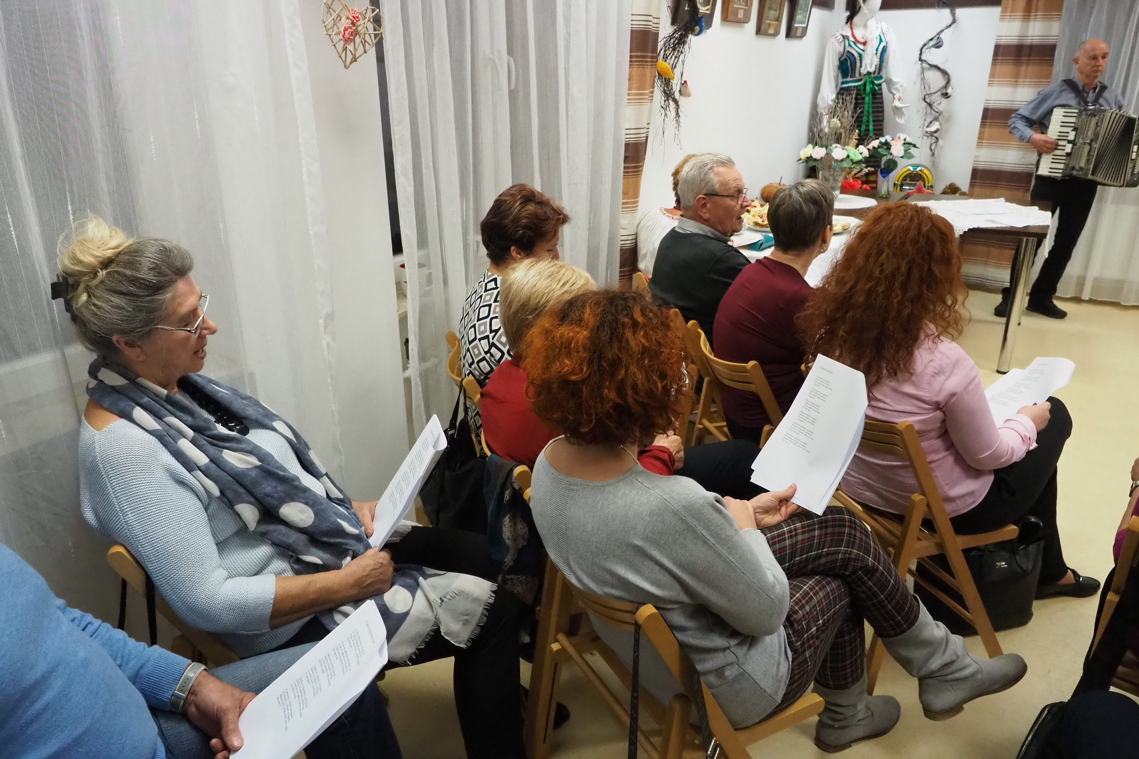 Dnia 4 listopada 2025 r. (wtorek) rozpoczęliśmy obchody Święta Niepodległości. Wieczór otworzył fragment wiersza Adama Mickiewicza wprowadzający nas w atmosferę tego święta. Członkowie Towarzystwa otrzymali teksty piosenek, akompaniament Pan Zbigniew Barankiewicz – klawisze, Pan Jerzy Jabłonka – akordeon. Śpiewaliśmy pieśni patriotyczne. Przed każdą z pieśni, przedstawiona była informacja o powstaniu melodii. Śpiewaliśmy między innymi „O mój rozmarynie”, „Wojenko, wojenko”, „Ułani, ułani”, „Piechota”, „Pierwsza brygada”, „Pałacyk Michla”, „Serce w plecaku” i inne. Wniosek ze spotkania był jeden, na kolejnych uroczystościach będziemy wspólnie śpiewać z mieszkańcami i gośćmi zgromadzonymi w centrum Gołębia 11 listopada.