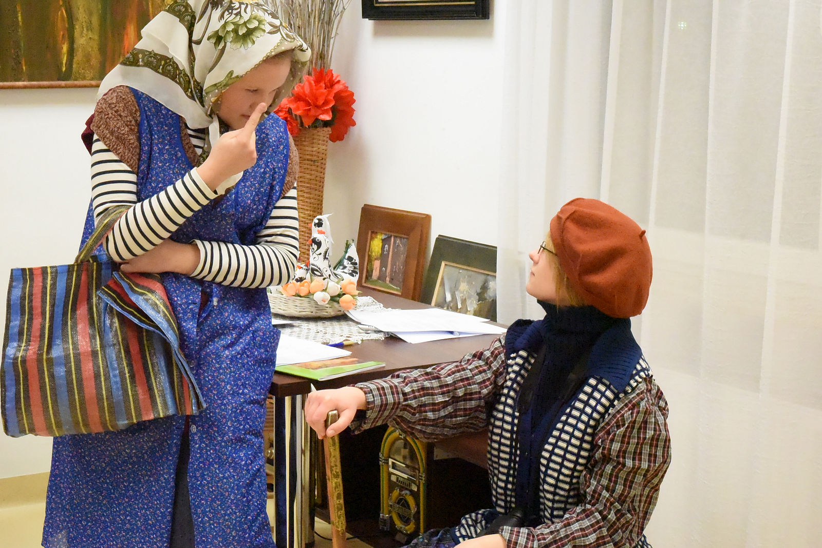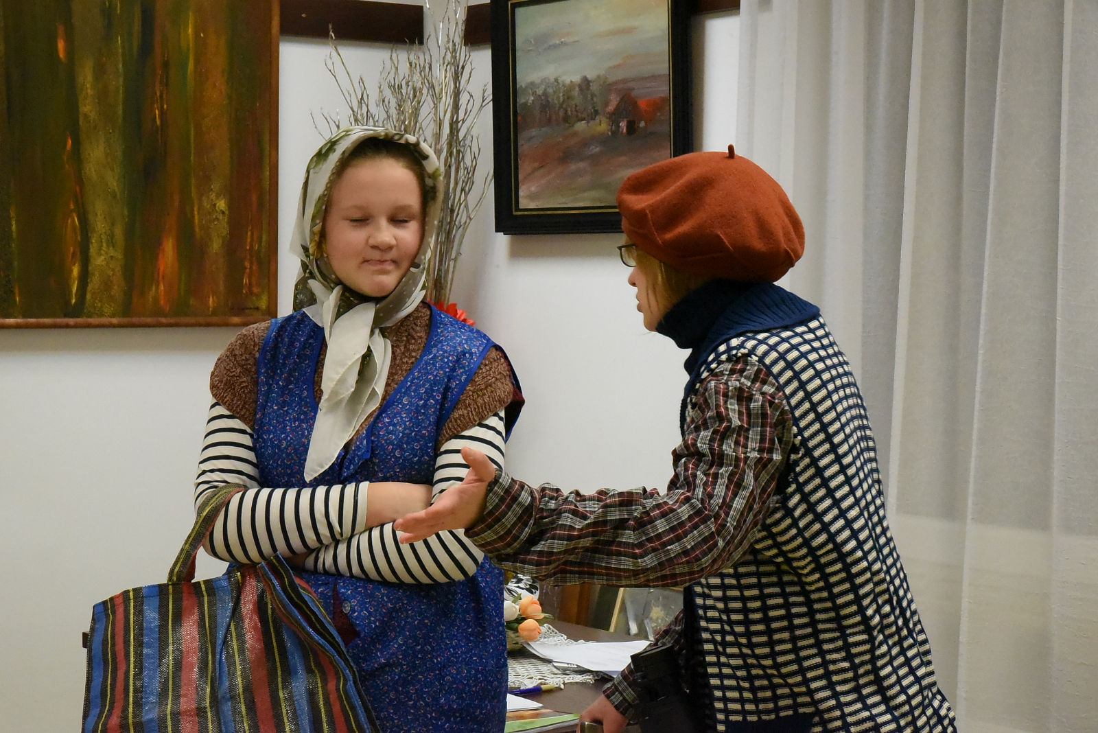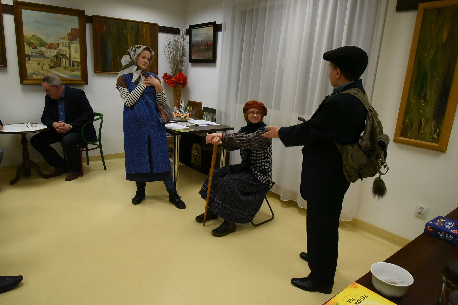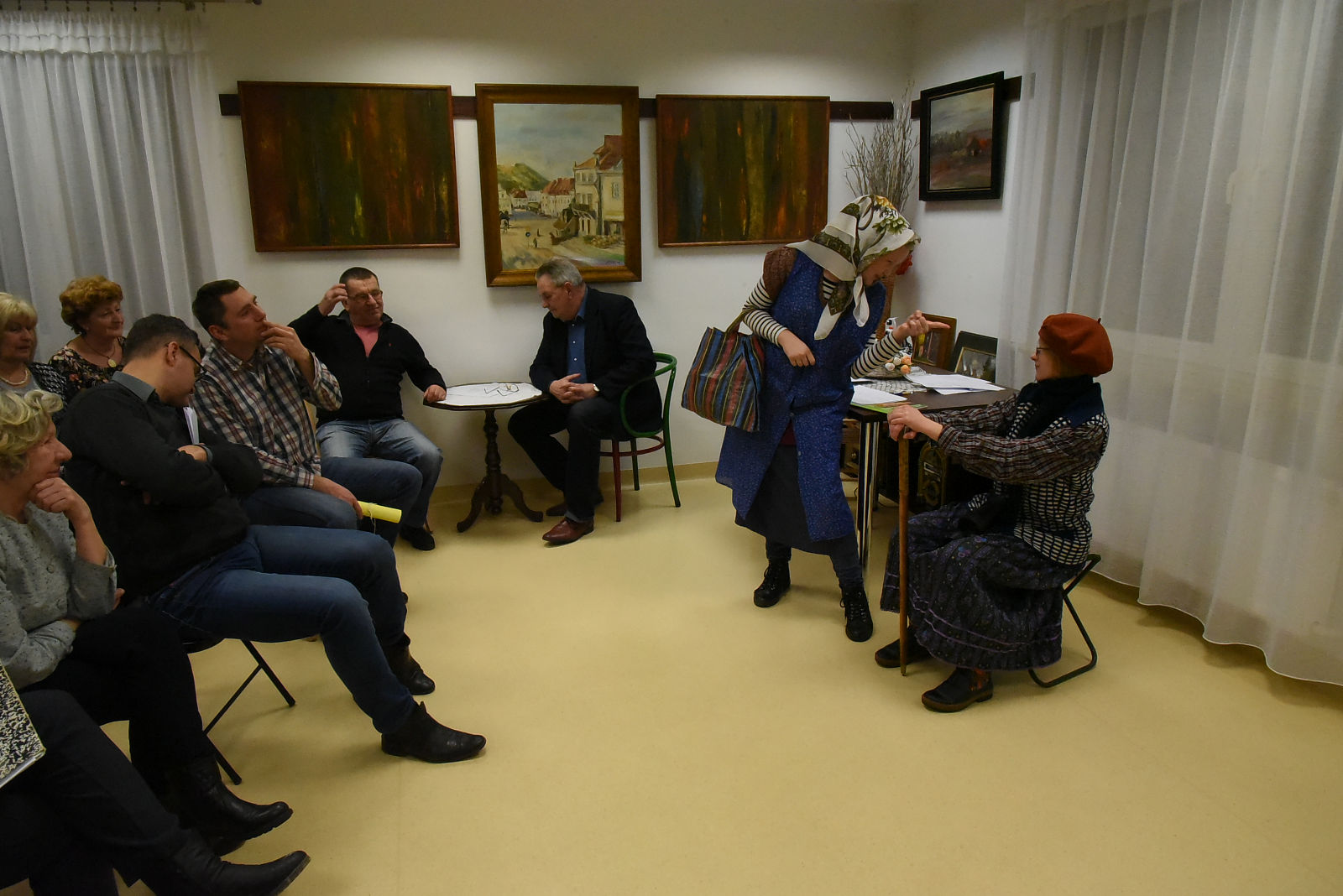 Po sprawozdaniach nastąpiła półgodzinna przerwa, w czasie której wszyscy uczestnicy Walnego Zebrania mieli dodatkową atrakcję i możliwość obejrzenia przedstawienia noszącego tytuł: „Stara paka z powszechniaka”, według scenariusza Agnieszki Maj. Spektakl przygotowali uczniowie klasy VII ze szkoły podstawowej w Gołębiu pod kierunkiem pani Doroty Jabłońskiej. Treść przedstawienia poświęcona była rozbudowanej obecnie szkole oraz nawiązywała do wspomnień o dawnej przedwojennej szkole powszechnej. Młodzież bardzo kreatywnie wcieliła się w swoje role; zagrała swobodnie, dowcipnie i spontanicznie, czym bardzo rozbawiła publiczność. Młodzi artyści zostali nagrodzeni gromkimi brawami i obdarowani słodką niespodzianką. Następnie Komisja skrutacyjna przeprowadziła tajne wybory do Zarządu i Komisji Rewizyjnej. W kolejnej przerwie Teresa Woszczek przedstawiła opracowany przez Zarząd plan pracy i zamierzenia do realizacji na bieżący rok. Ten rok, to działania dotyczące lasu i drzew. Zaplanowano sadzenie i sprzątanie lasu. Zbiórkę makulatury, wycieczki i rajdy ścieżkami dydaktycznymi naszego lasu. Konkurs plastyczny "magiczne drzewa". Wydanie albumu o tematyce leśnej oraz dużo innych stałych przedsięwzięć. Plan pracy zaakceptowano, a także uzupełniono o nowe propozycje.