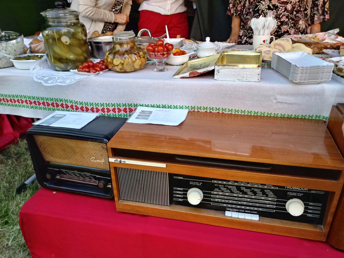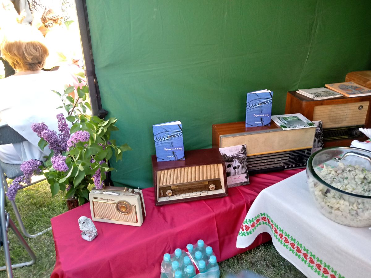 Na naszym stoisku Tomek Kozak zaprezentował swoją kolekcję starych radioodbiorników- pięknych, a okrzyk „u mojej babci takie było” rozlegał się bardzo często. Zaprezentowaliśmy również nasze najnowszy wydawnictwa. Na stoisku było oczywiście również „coś na ząb”. Przepyszny domowy chleb ze smalcem i kiszonymi ogórkami bądź innymi dodatkami (marynowane kanie!!!!), bułeczki, sałatki, racuszki… i mnóstwo ciast! Ciasta przygotowane zarówno przez nasze członkinie, jak i przez mamy gołębskich przedszkolaków. Wszystko, do ostatniego okruszka zostało zjedzone przez licznych gości, wszystko smakowało, było chwalone :)